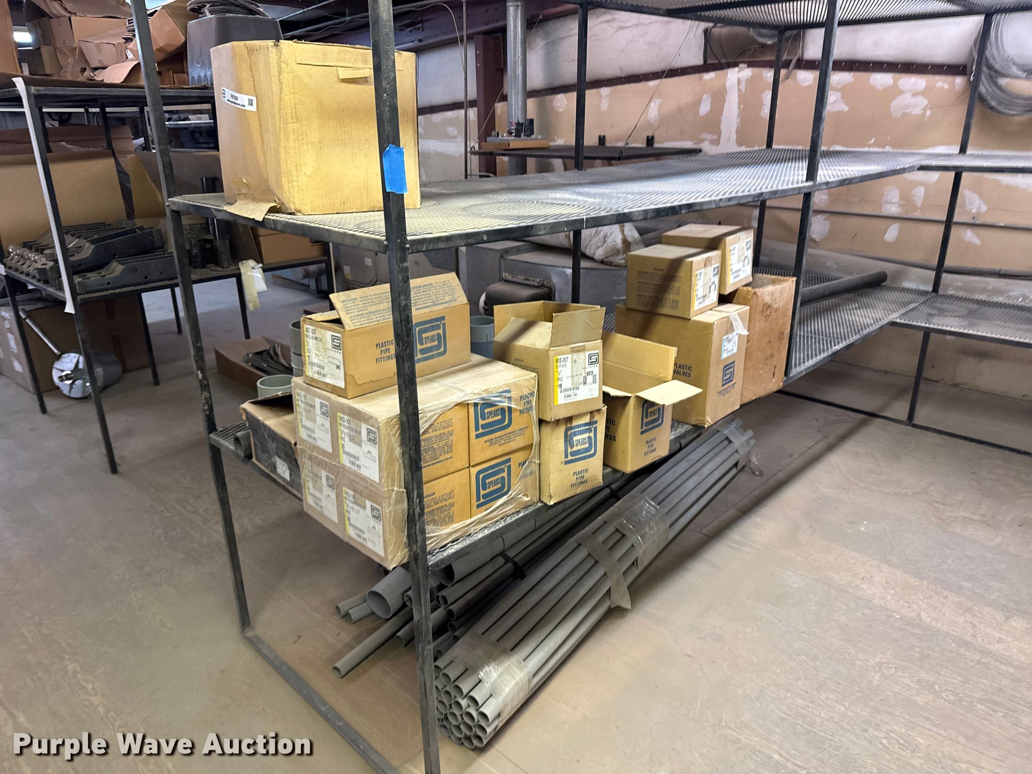 Purple Wave is selling a used Building Materials in Kansas. This item is a PVC pipe and fittings with the following: Shelving not included
