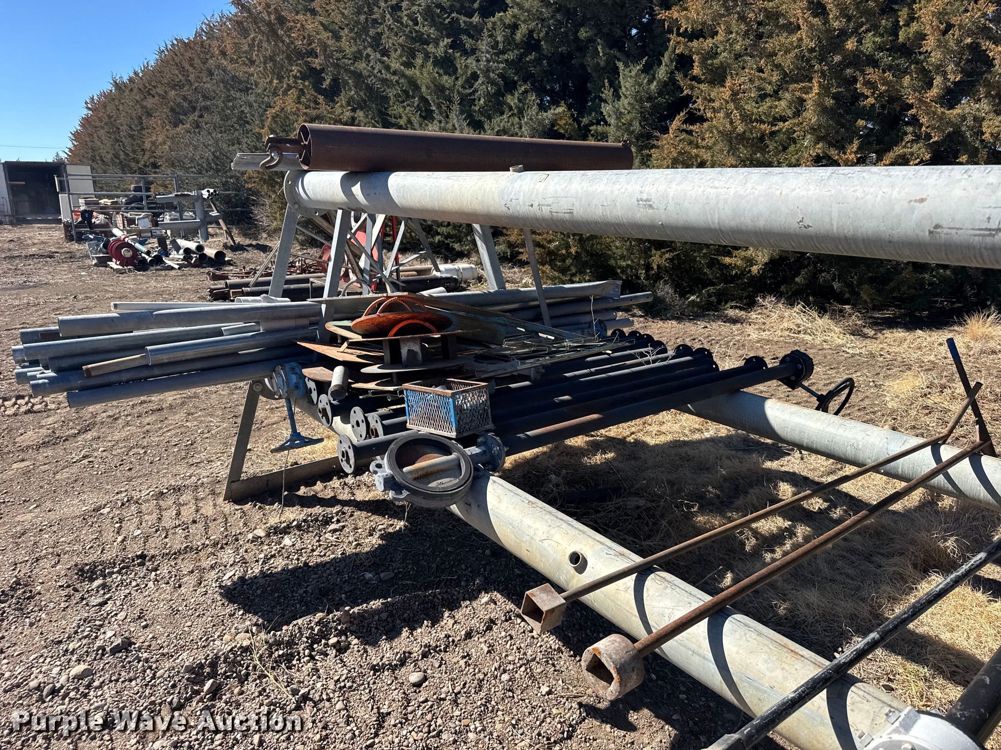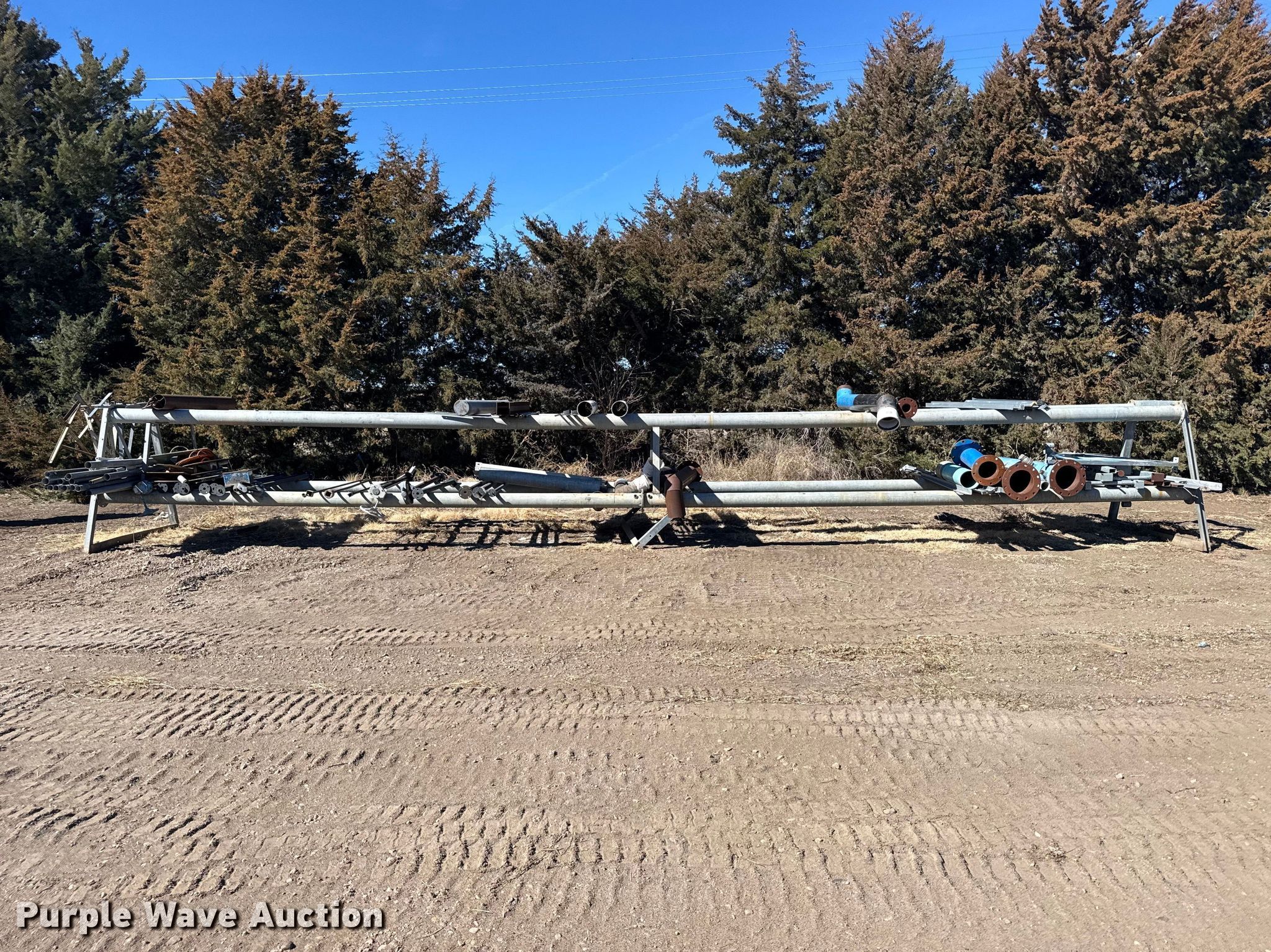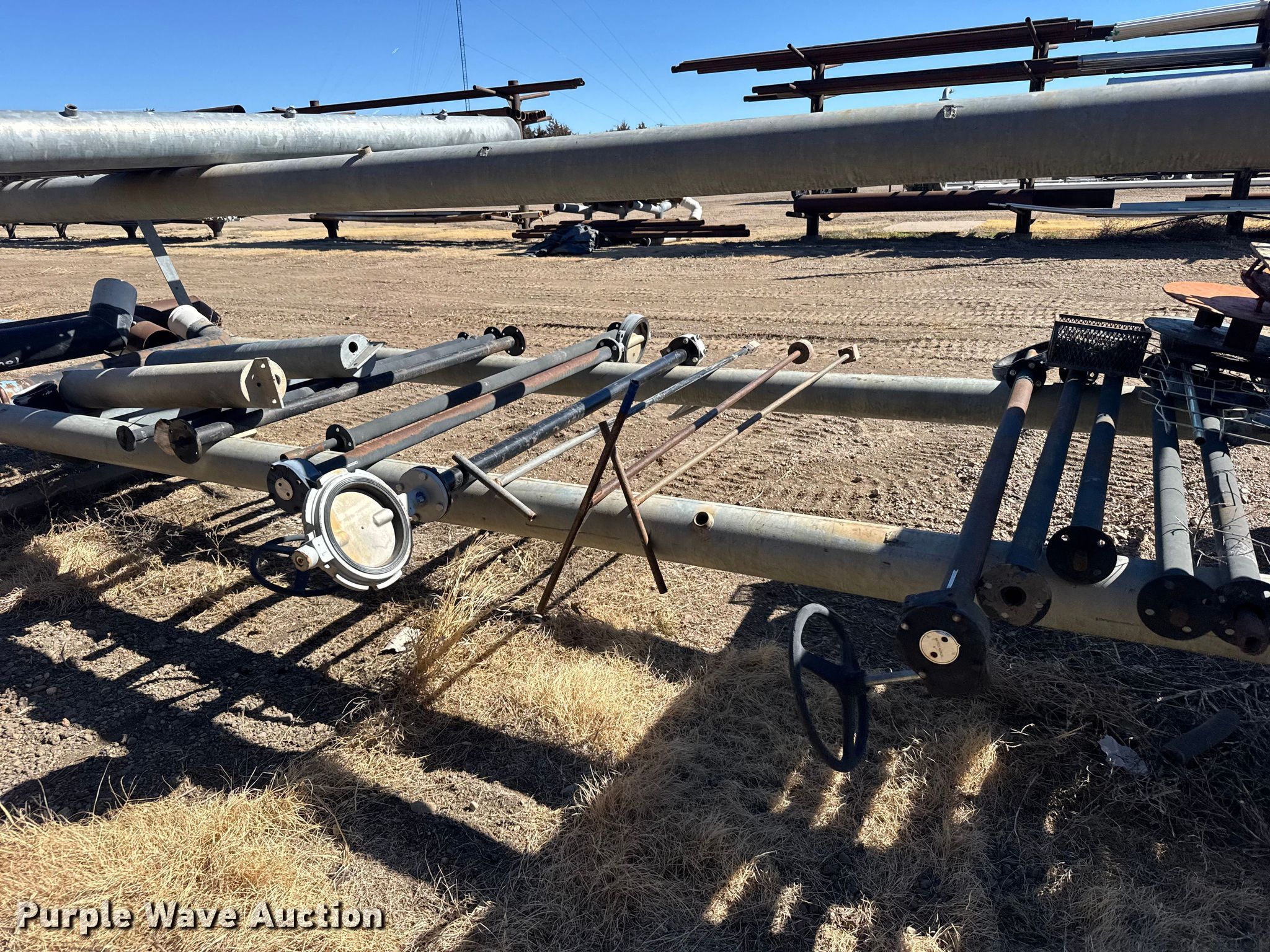 Purple Wave is selling a used Irrigation Equip. Attach. in Kansas. This item is a Pivot parts with the following: Valves, Pipe, Brackets, Angle iron, Pipe rack, 30' x 8'
