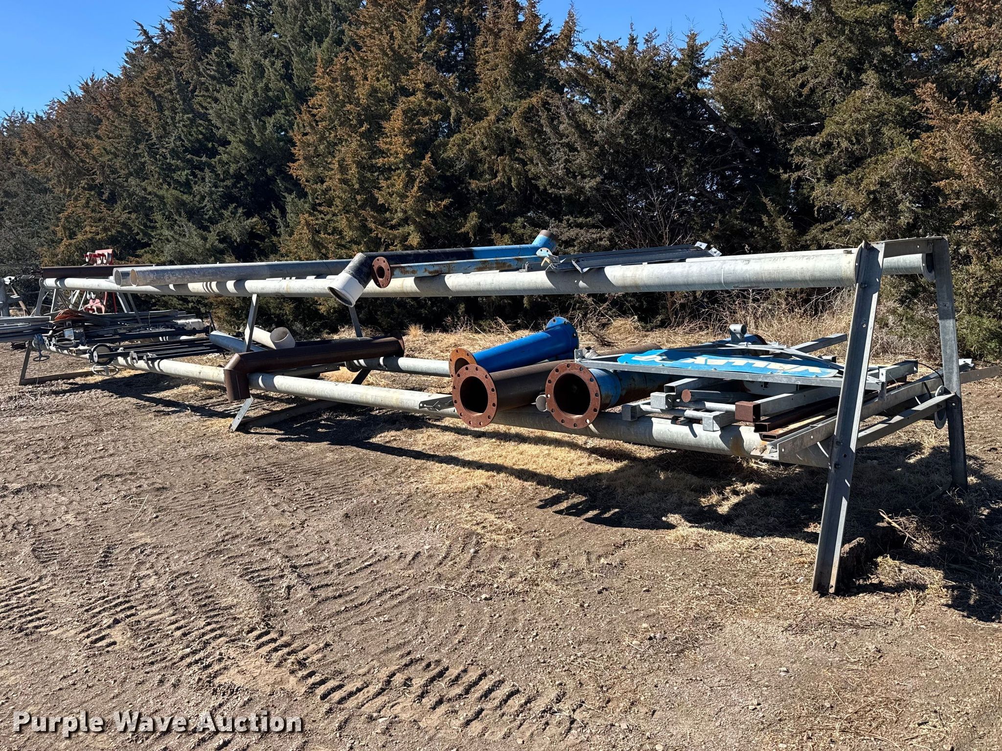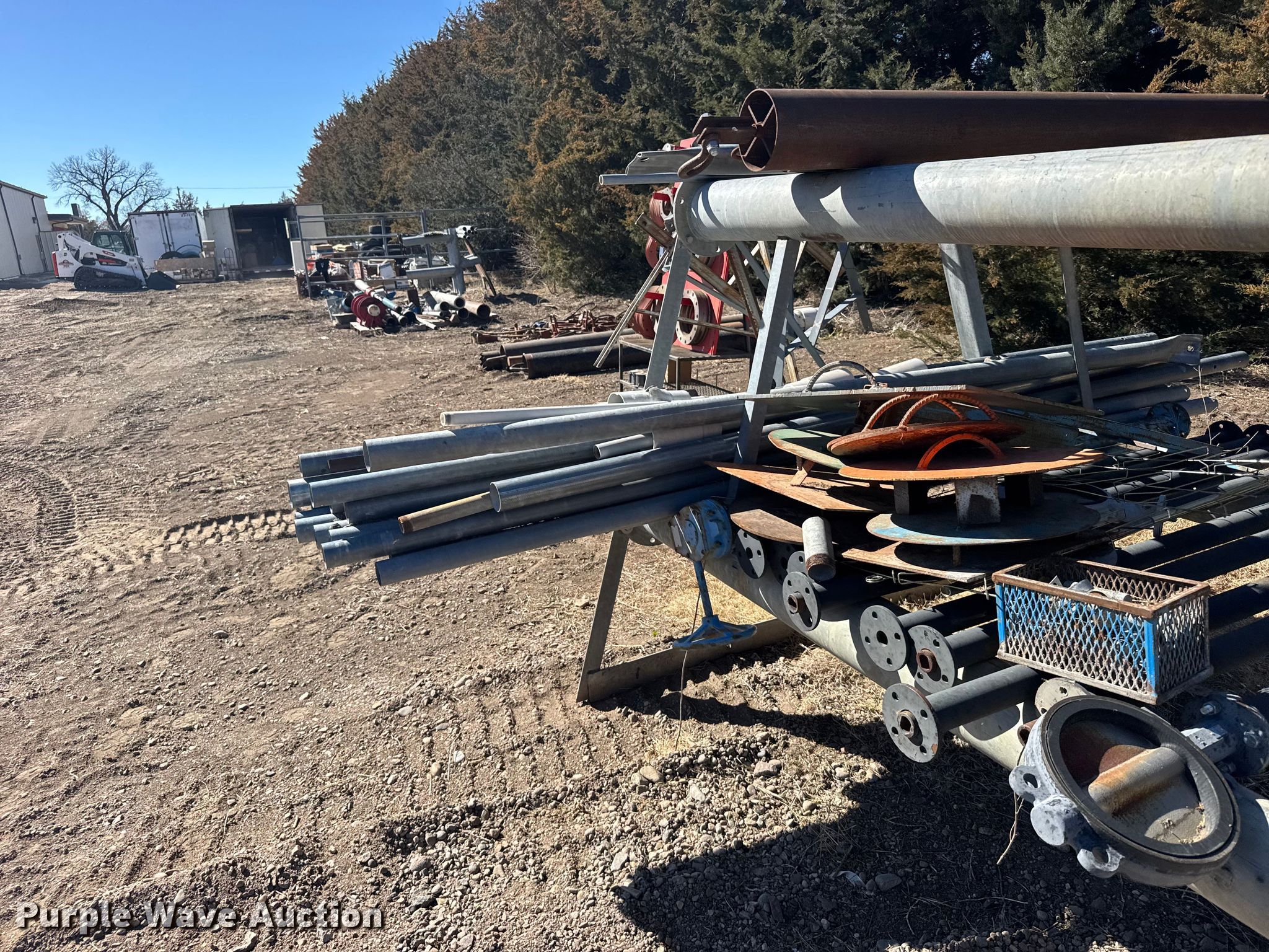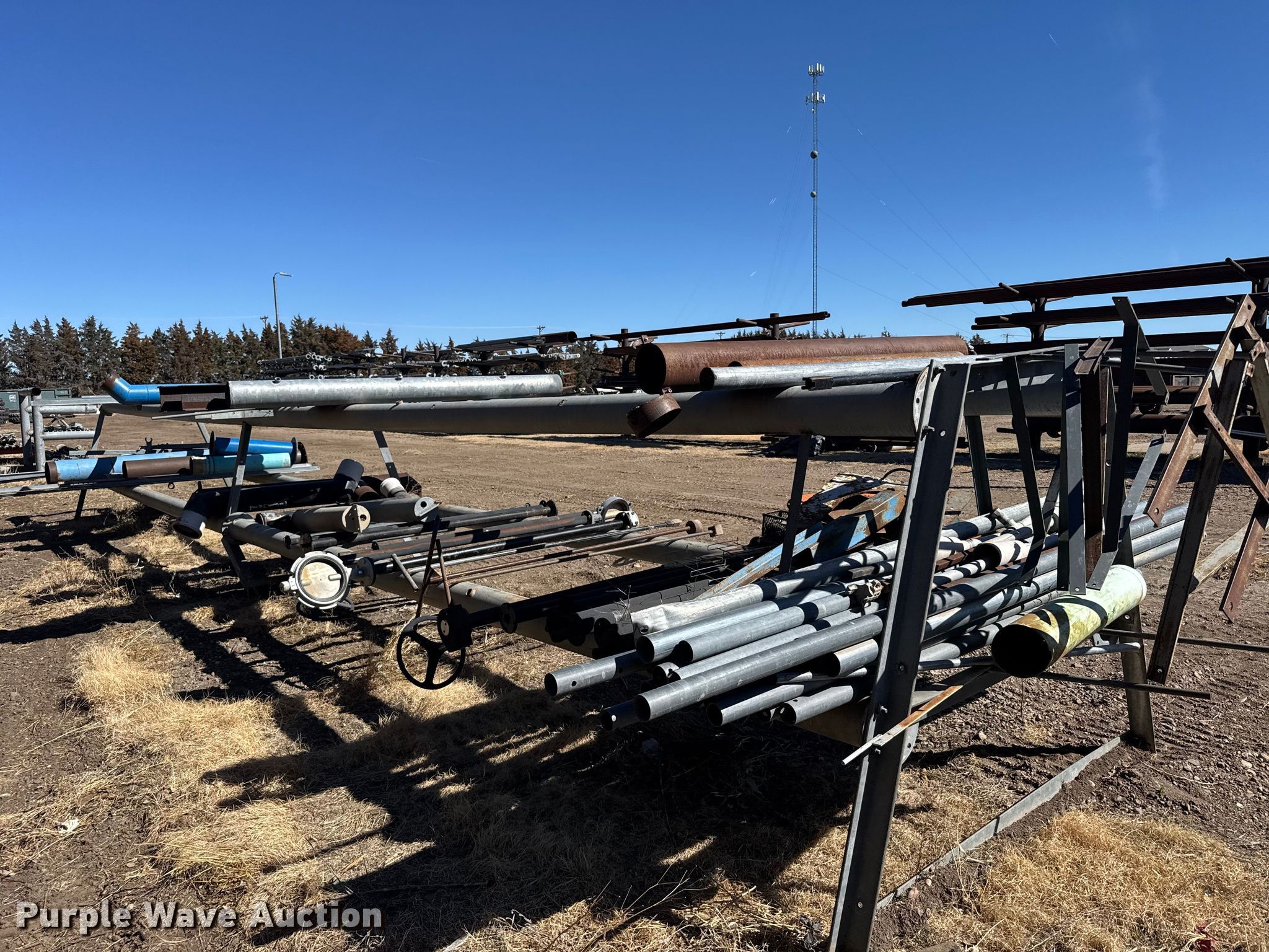 Purple Wave is selling a used Irrigation Equip. Attach. in Kansas. This item is a Pivot parts with the following: Valves, Pipe, Brackets, Angle iron, Pipe rack, 30' x 8'