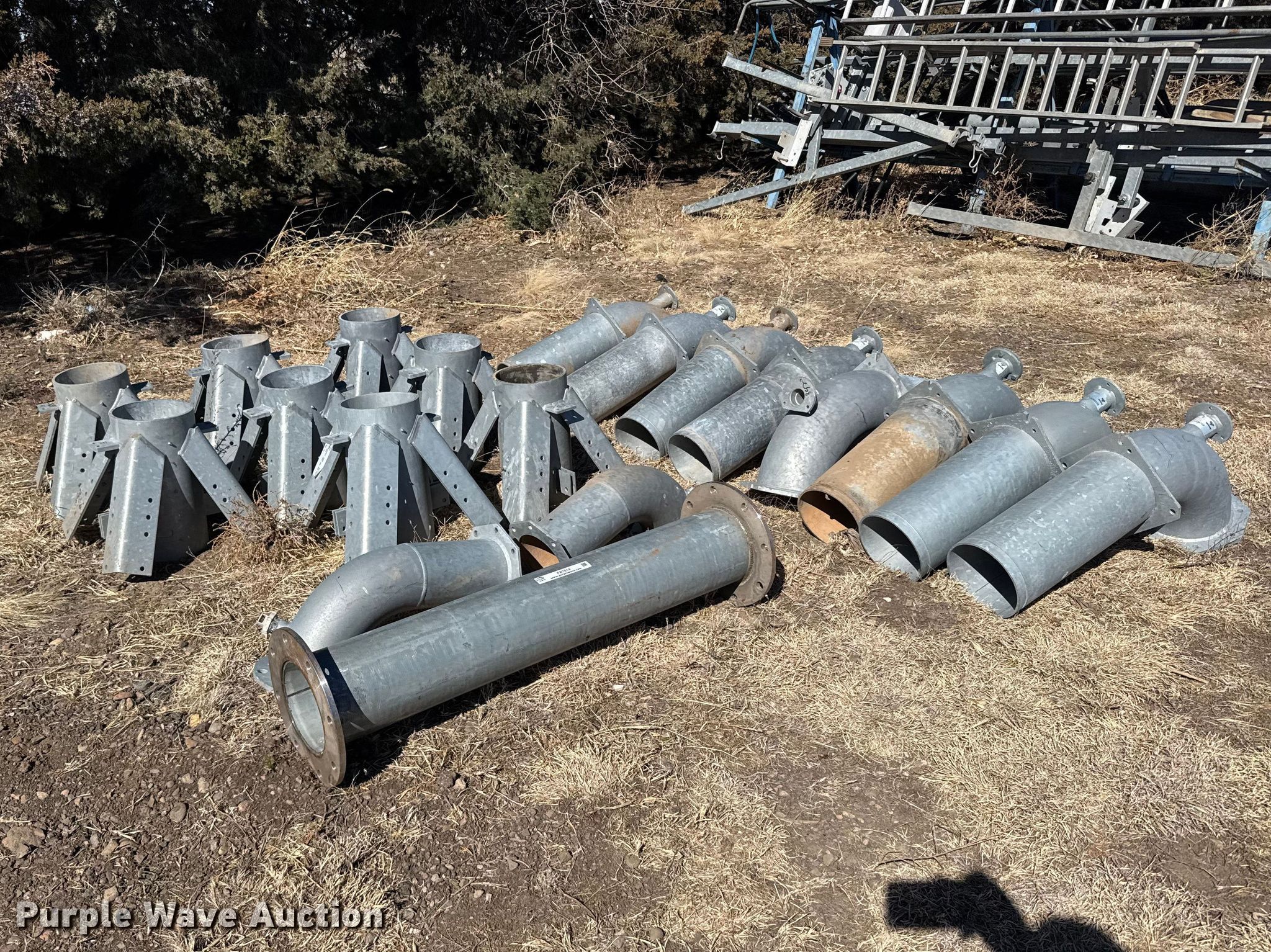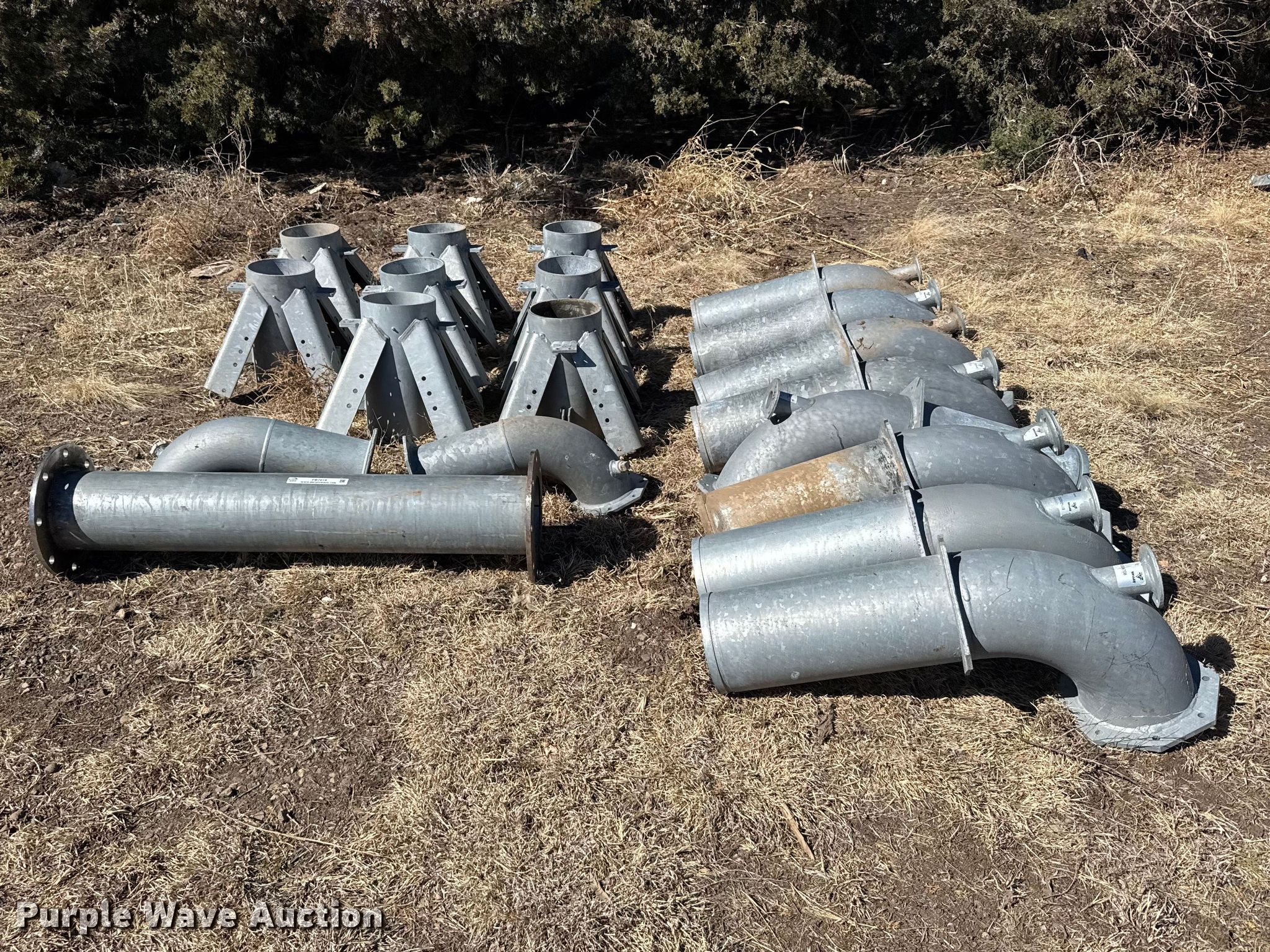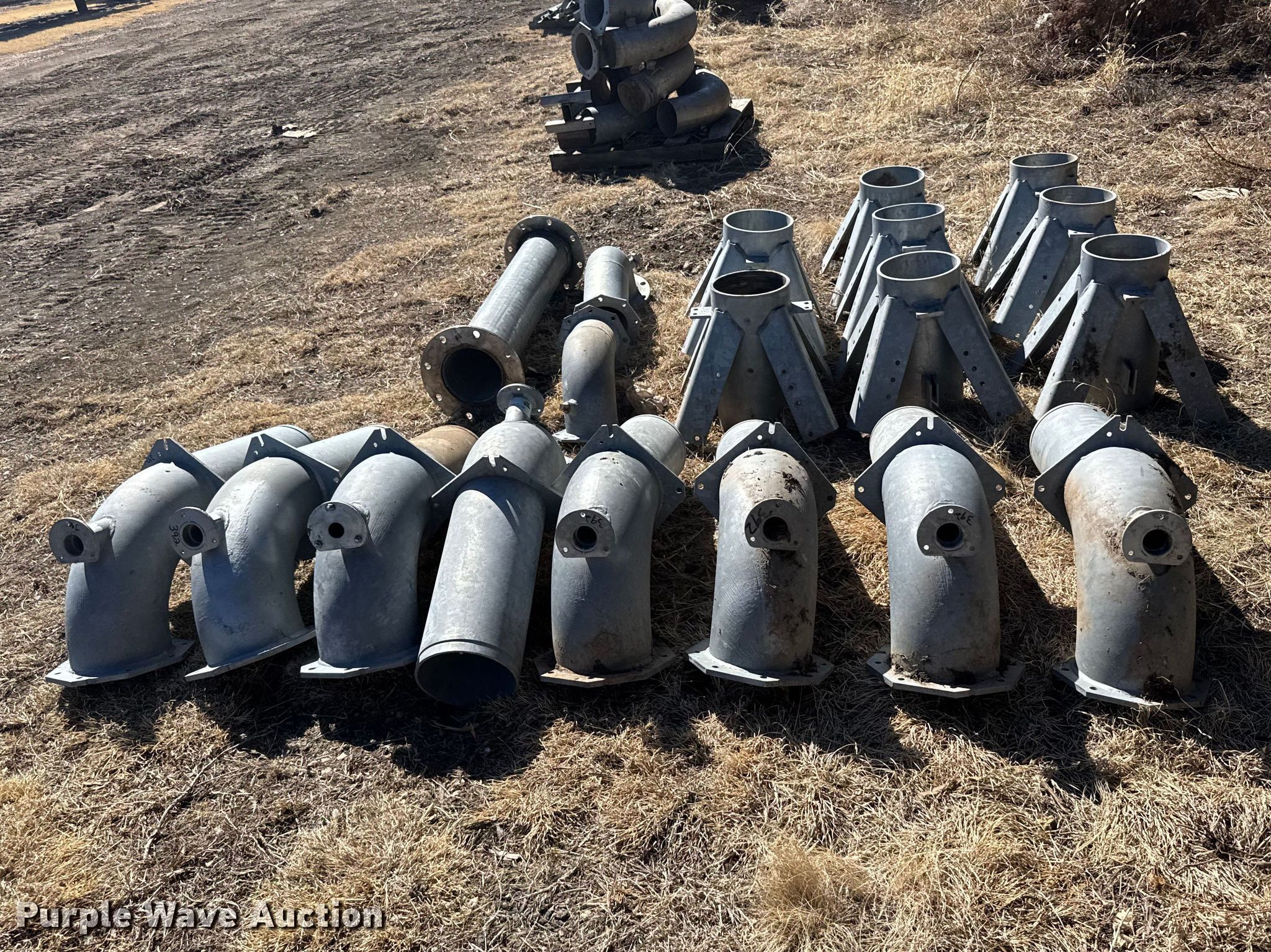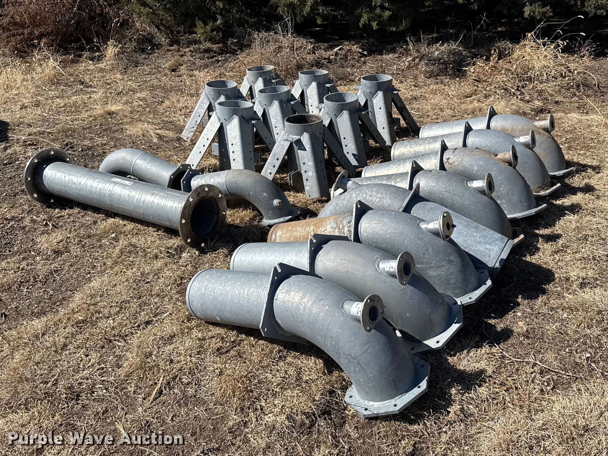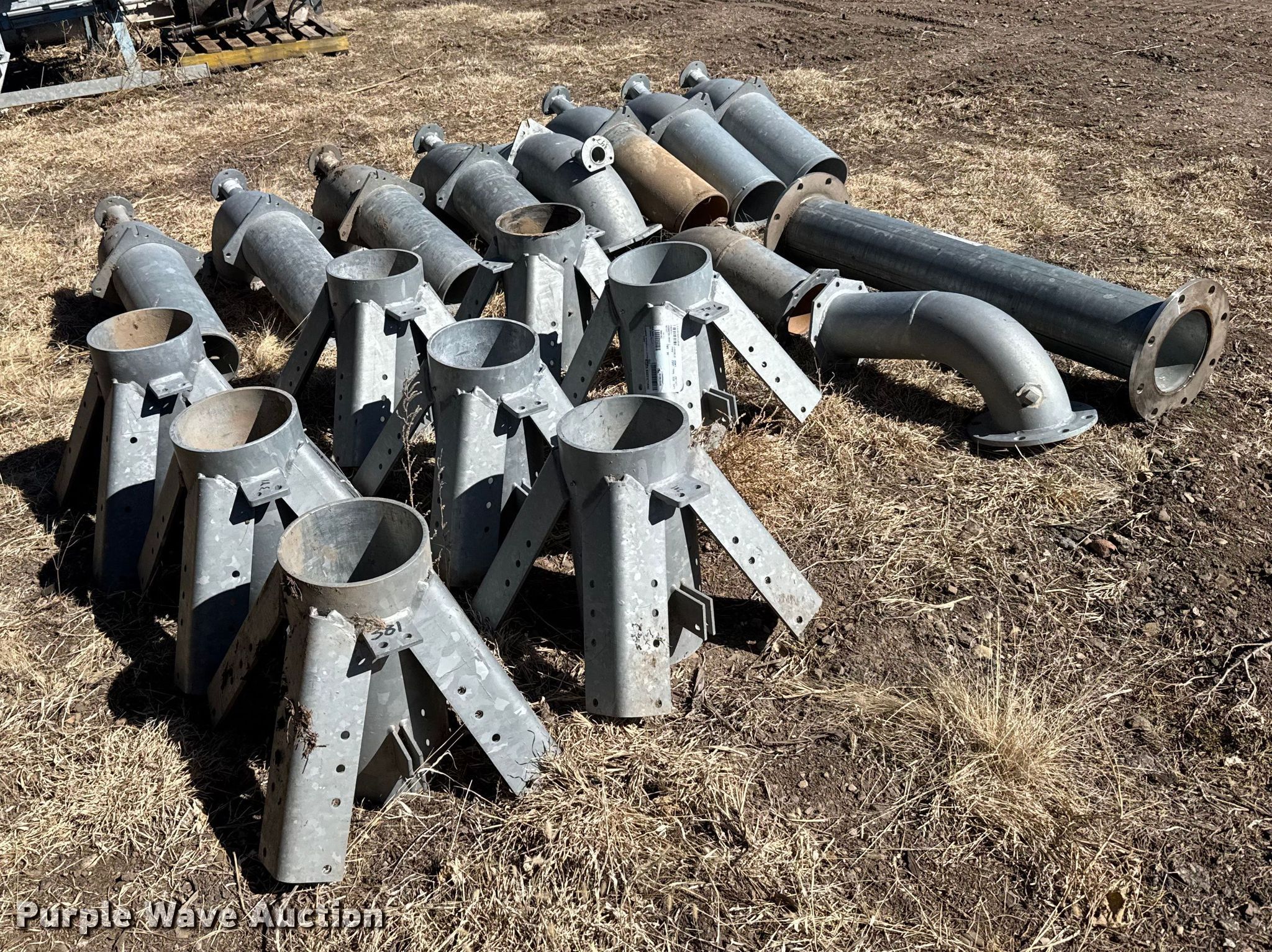 Purple Wave is selling a used Irrigation Equip. Attach. in Kansas. This item is a Pivot tower parts with the following: (10) 8" 90 degree pipes, (8) stands