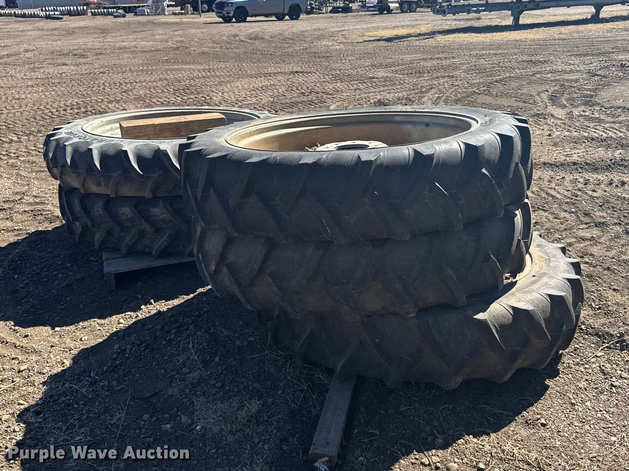 Purple Wave is selling a used Industrial Tires or Tracks in Kansas. This item is a (5) 11.2-38 tires with the following: (5) 11.2-38 tires. Western Kansas Ag. Sharon Springs, KS 67758