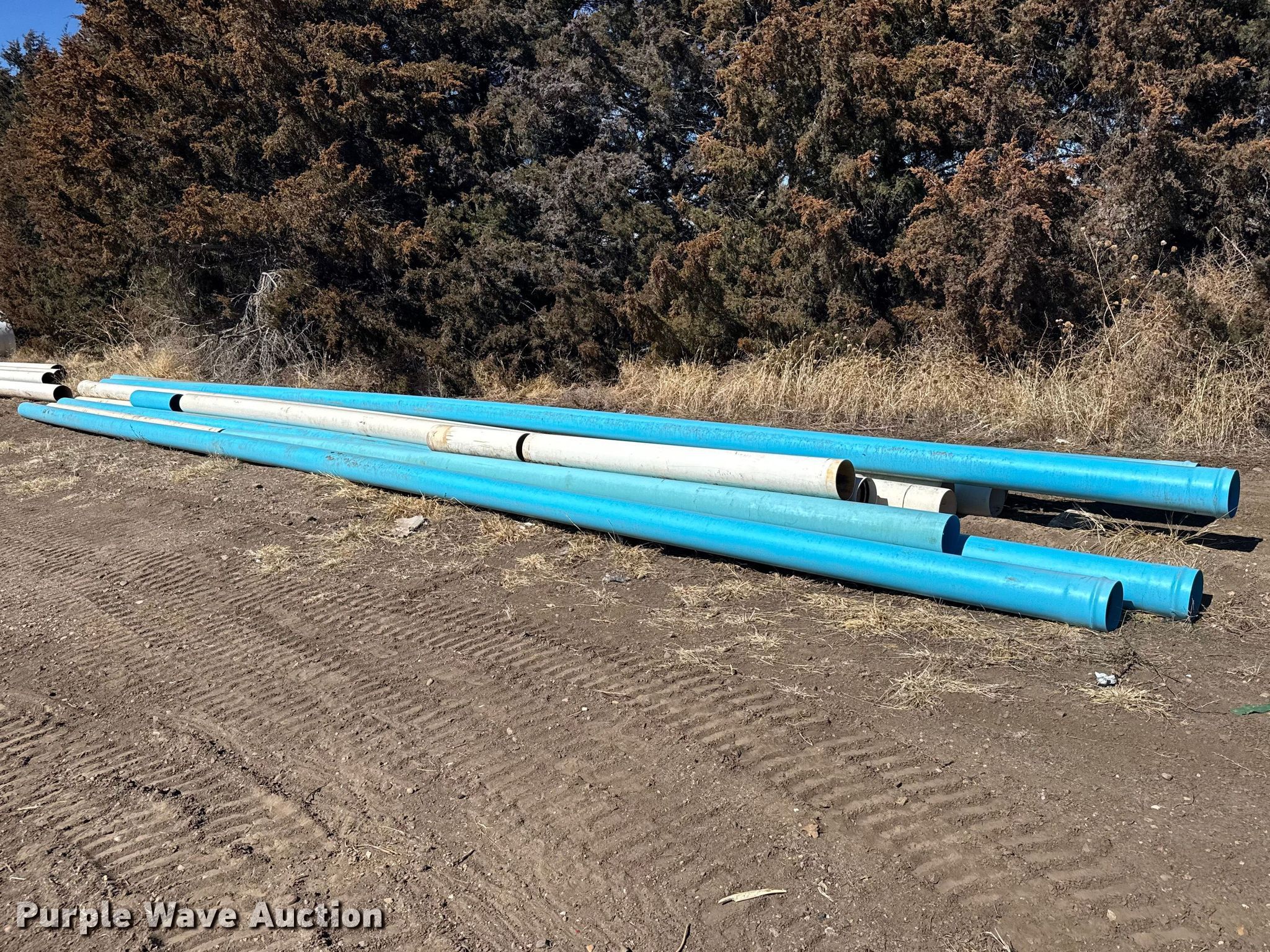 Purple Wave is selling a used Pipe in Kansas. This item is a PVC pipe with the following: Pipe, (12) joints of 8"