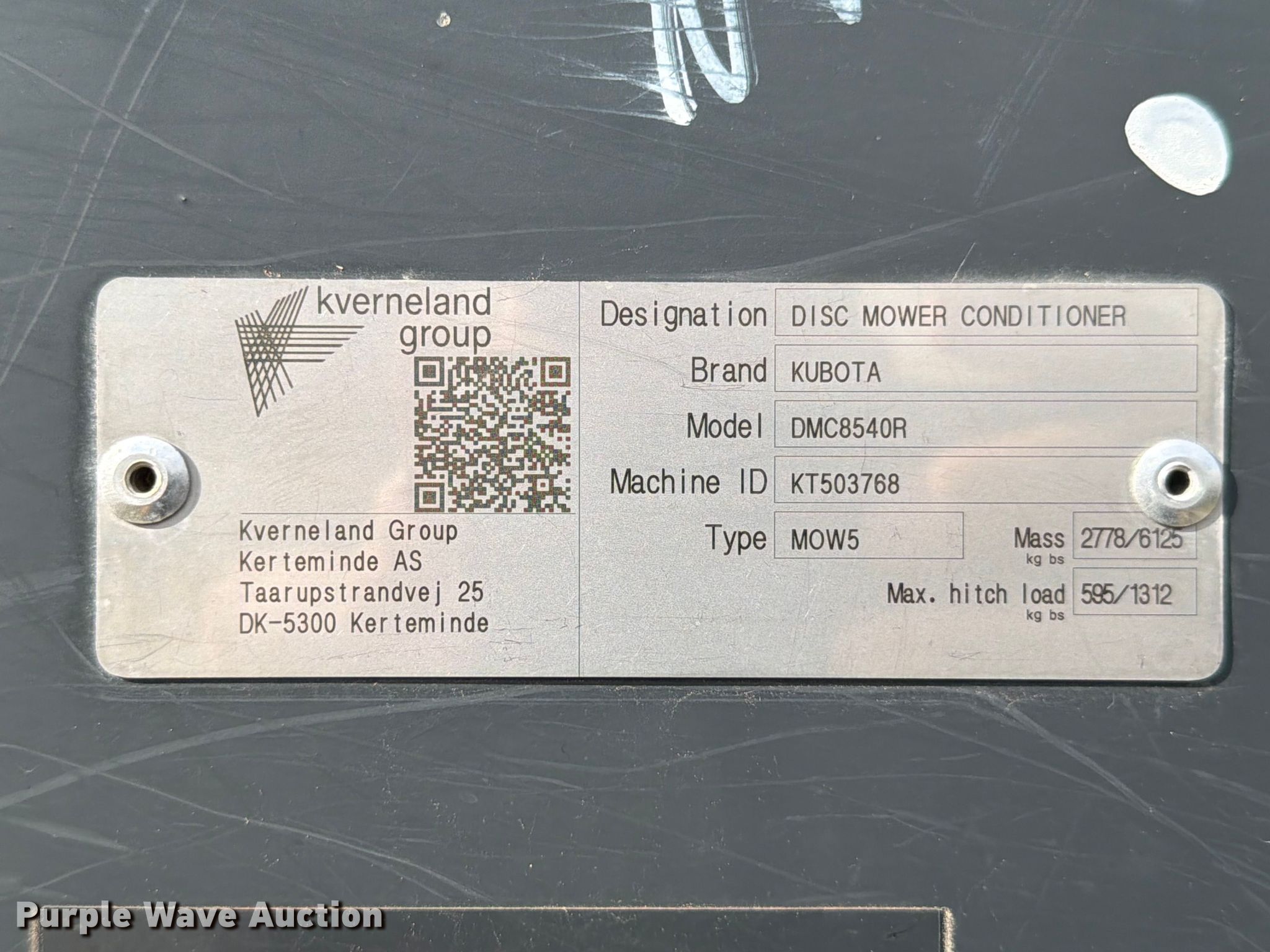 Purple Wave is selling a used Disc or Sickle Mower in Texas. This item is a Kubota DMC8540R disc mower with the following: Serial: KT503768