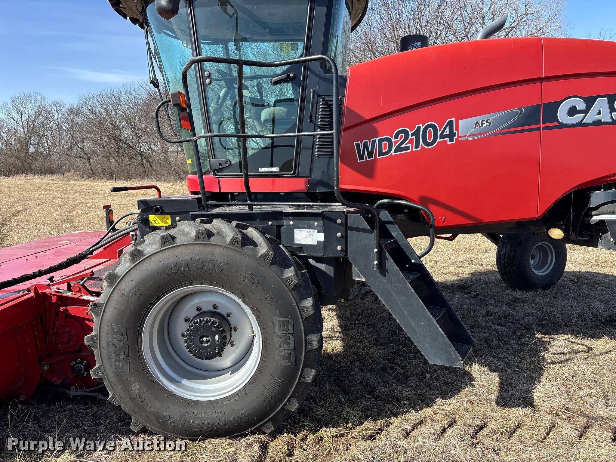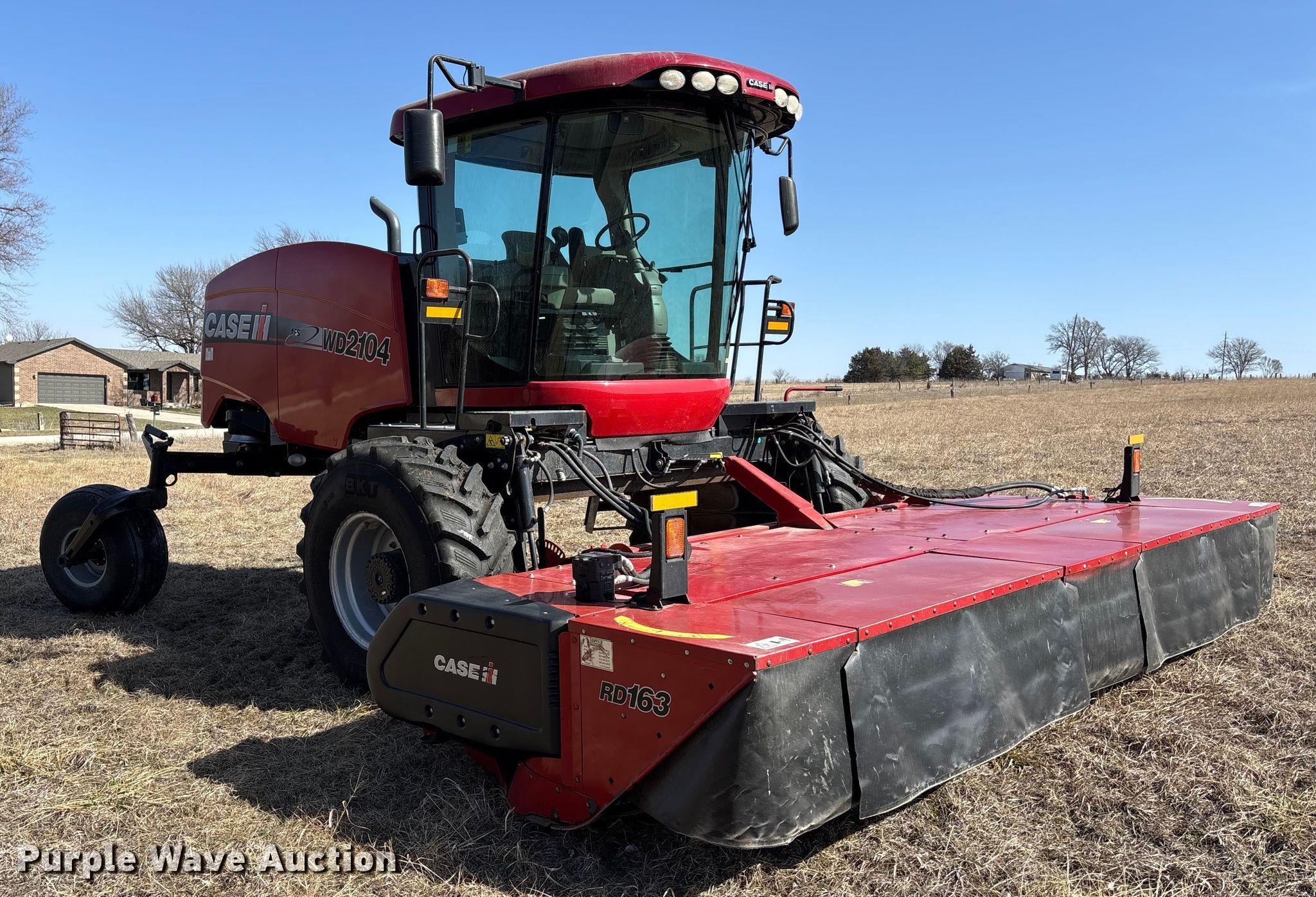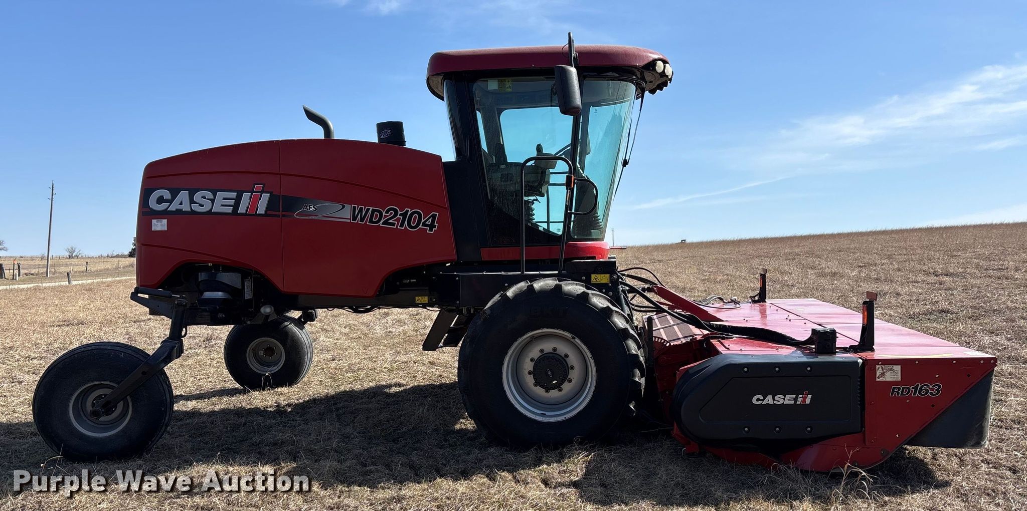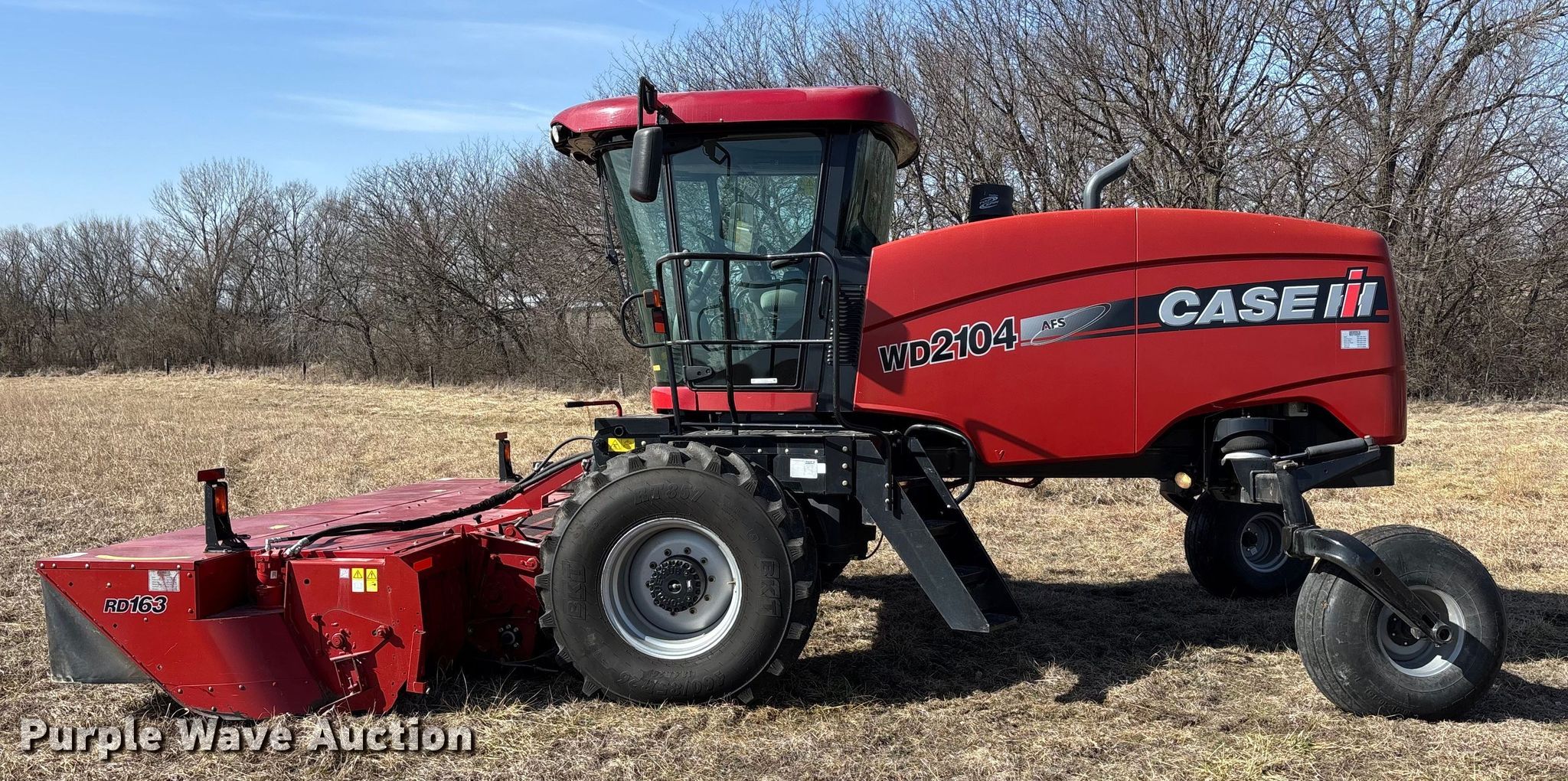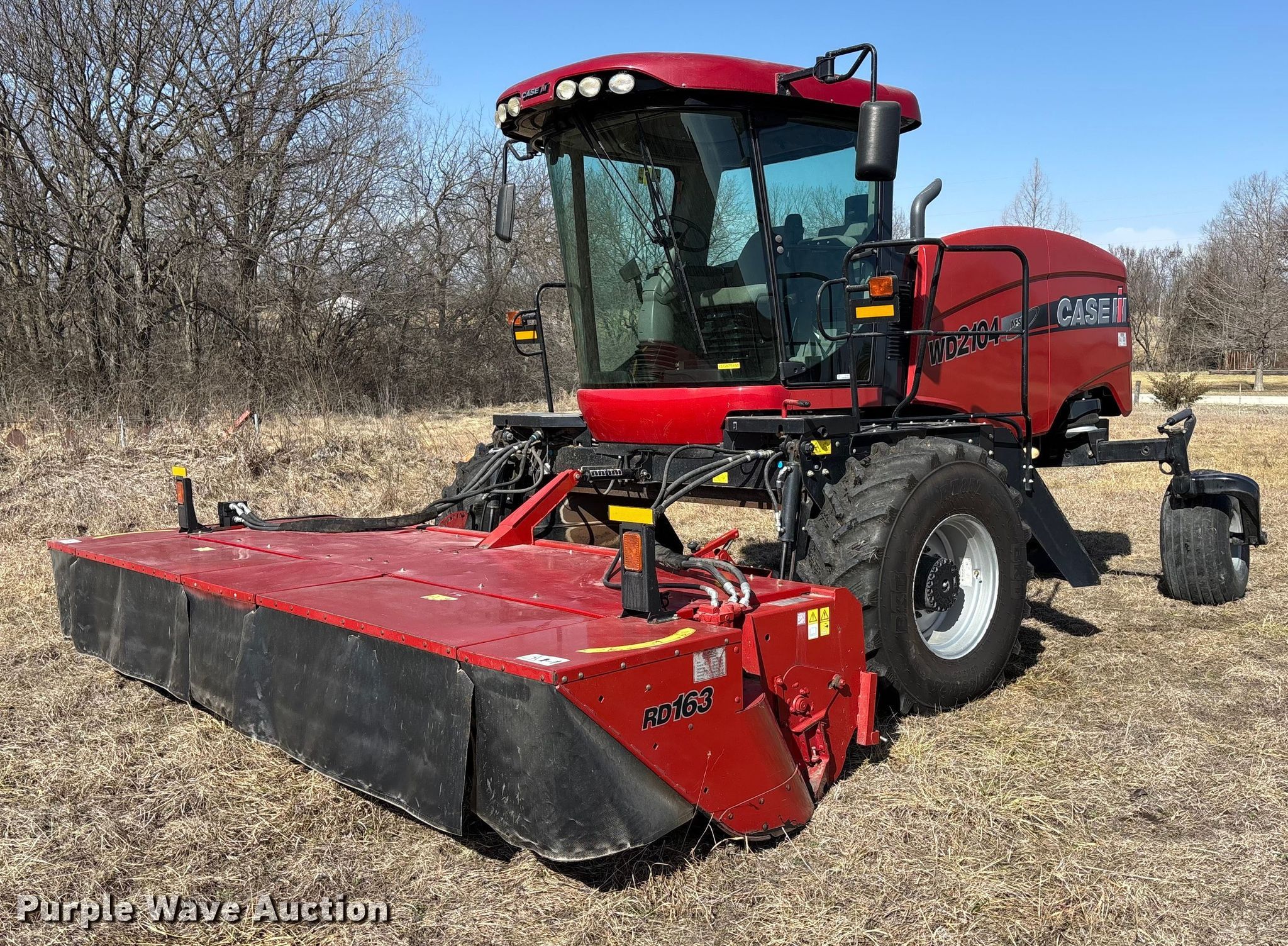 Purple Wave is selling a used Windrower Self Propelled in Kansas. This item is a 2015 Case IH WD2104 swather / windrower with the following: Engine hours: 1,301 on meter, Serial: YEG675168