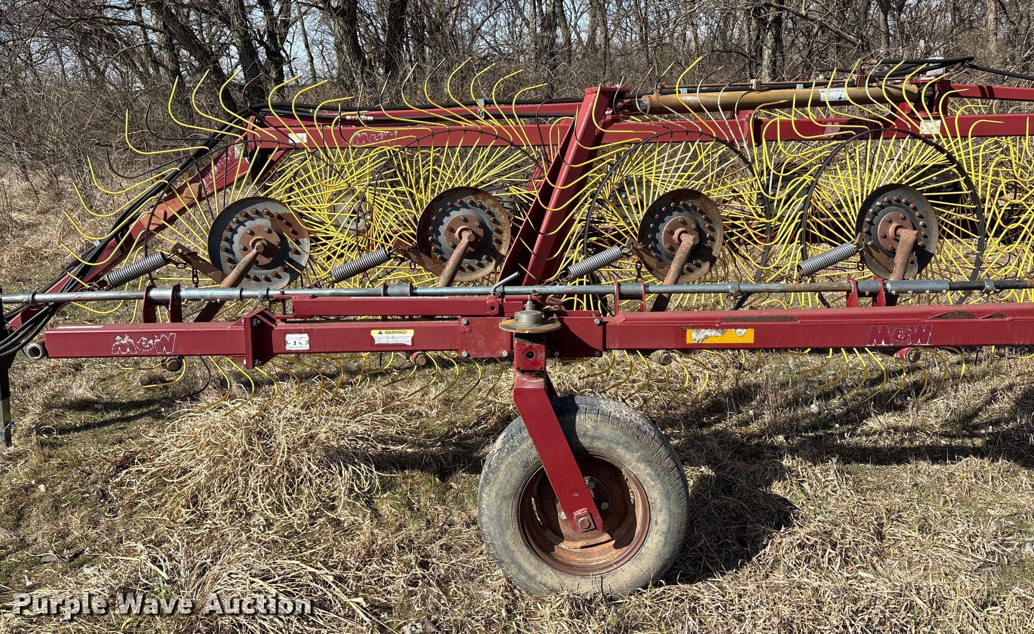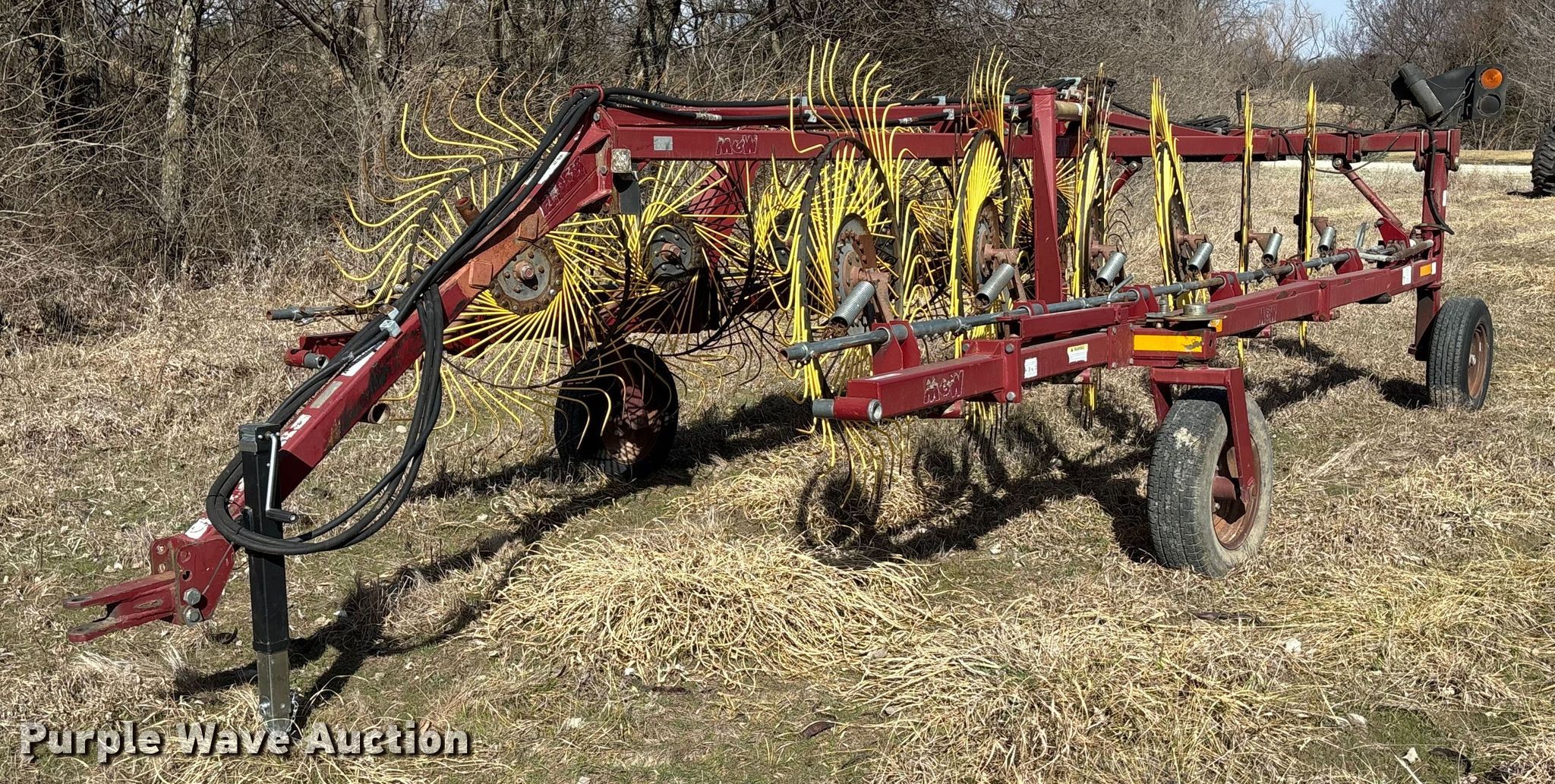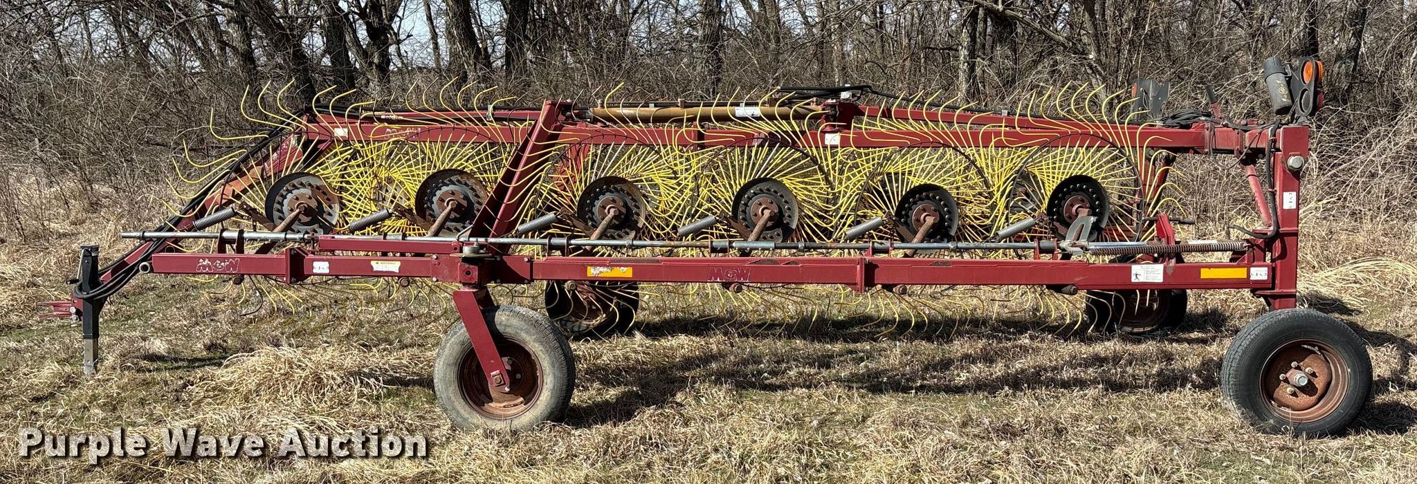 Purple Wave is selling a used Hay Rake in Kansas. This item is a M and W DF-12 hay rake with the following: Serial: 162989