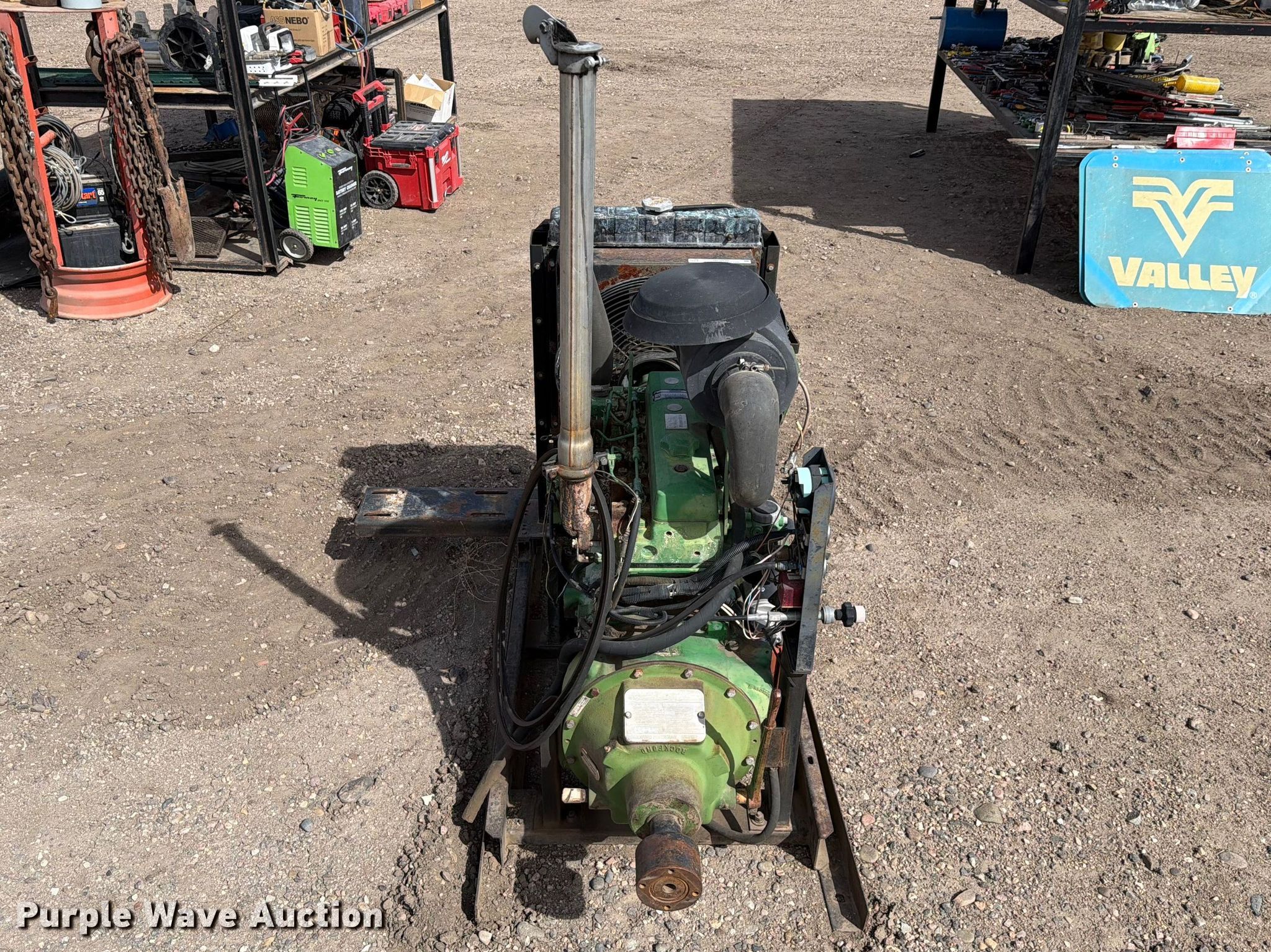 John Deere 4045DF150B engine. Hours: Unknown, Serial: 916829. Engine Displacement: 4.5L, Cylinders: 4, Fuel type: Diesel. Features Radiator, Skid mounted. Notes Unknown operating condition. Western Kansas Ag. Sharon Springs, KS 67758