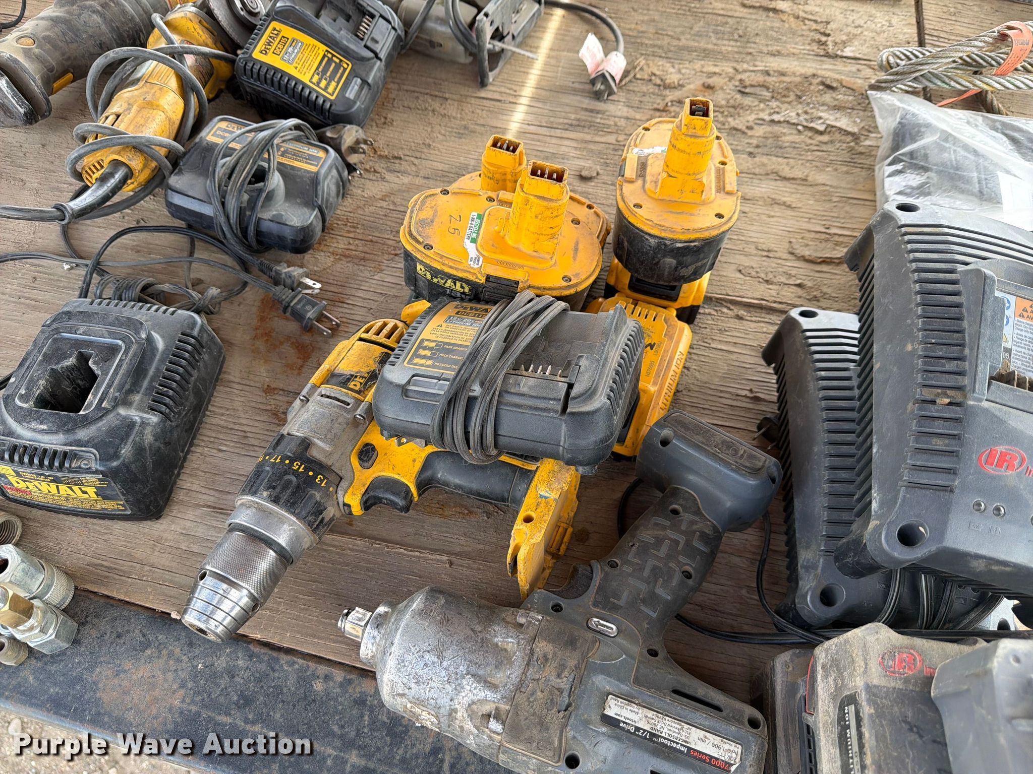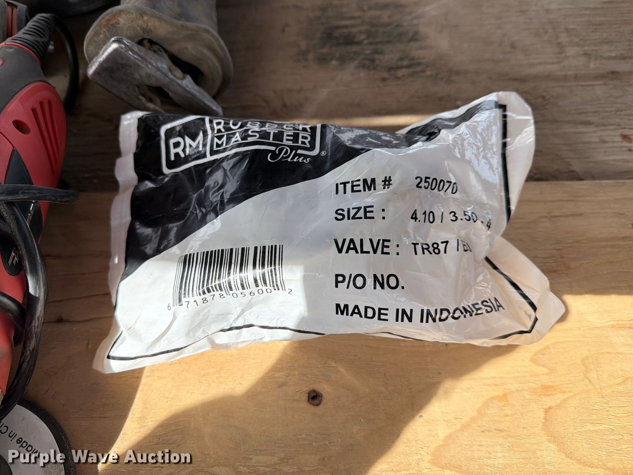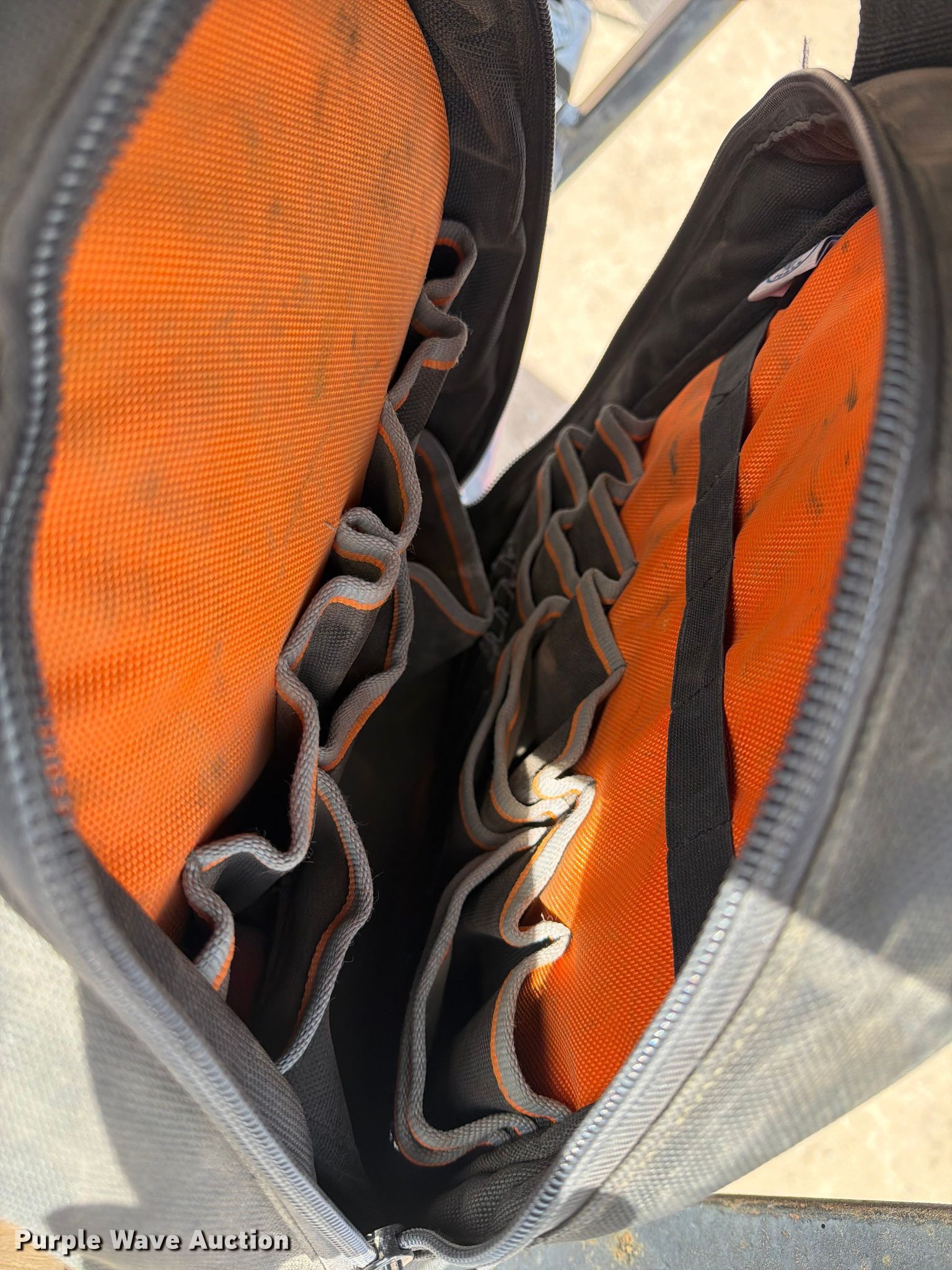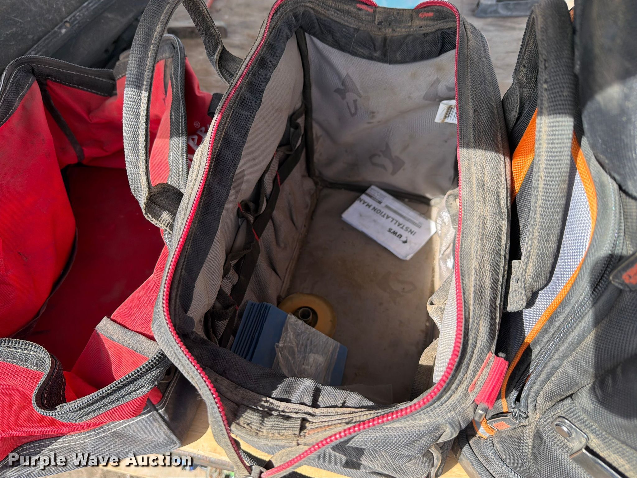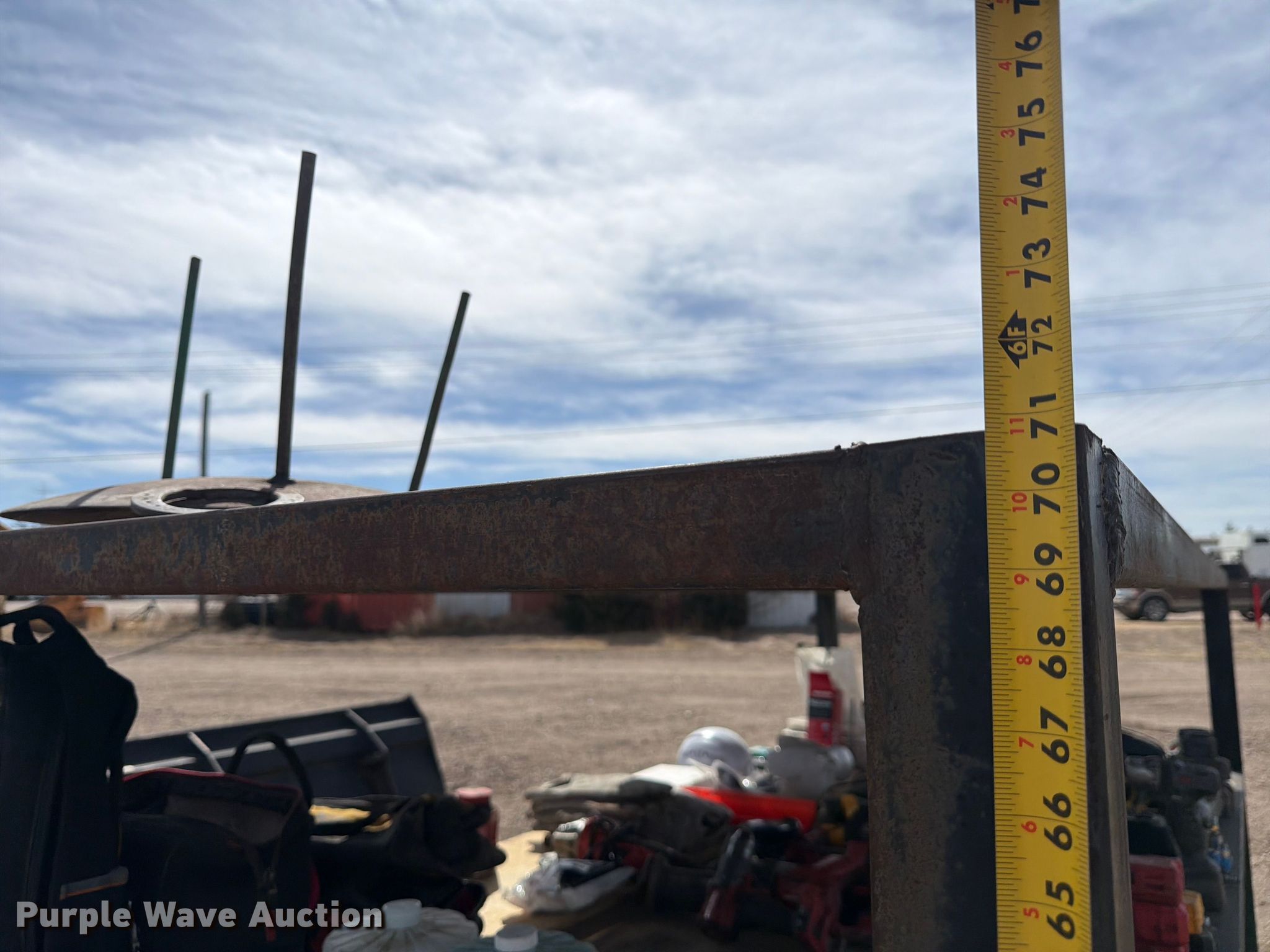 Tools. Power Tools, Drill bits, Hand saws, Battery chargers, Hand cleaner, Tool bags, Welding gloves, Wrenches, Bolt cutters, Ratchet straps, Air tank, Signs, Shelf size: 124" L x 54" W x 71" H. Notes Unknown operating condition. Western Kansas Ag. Sharon Springs, KS 67758