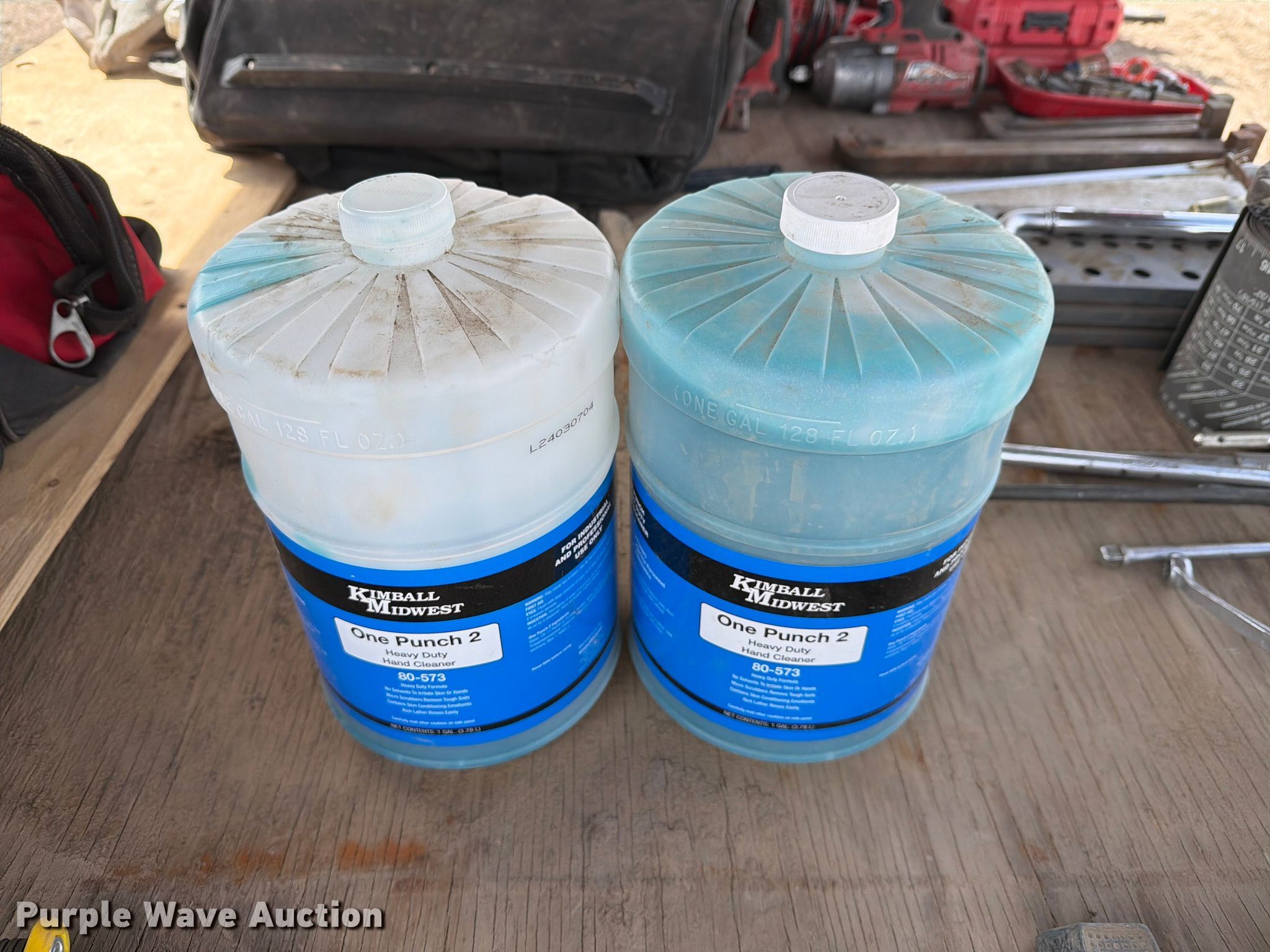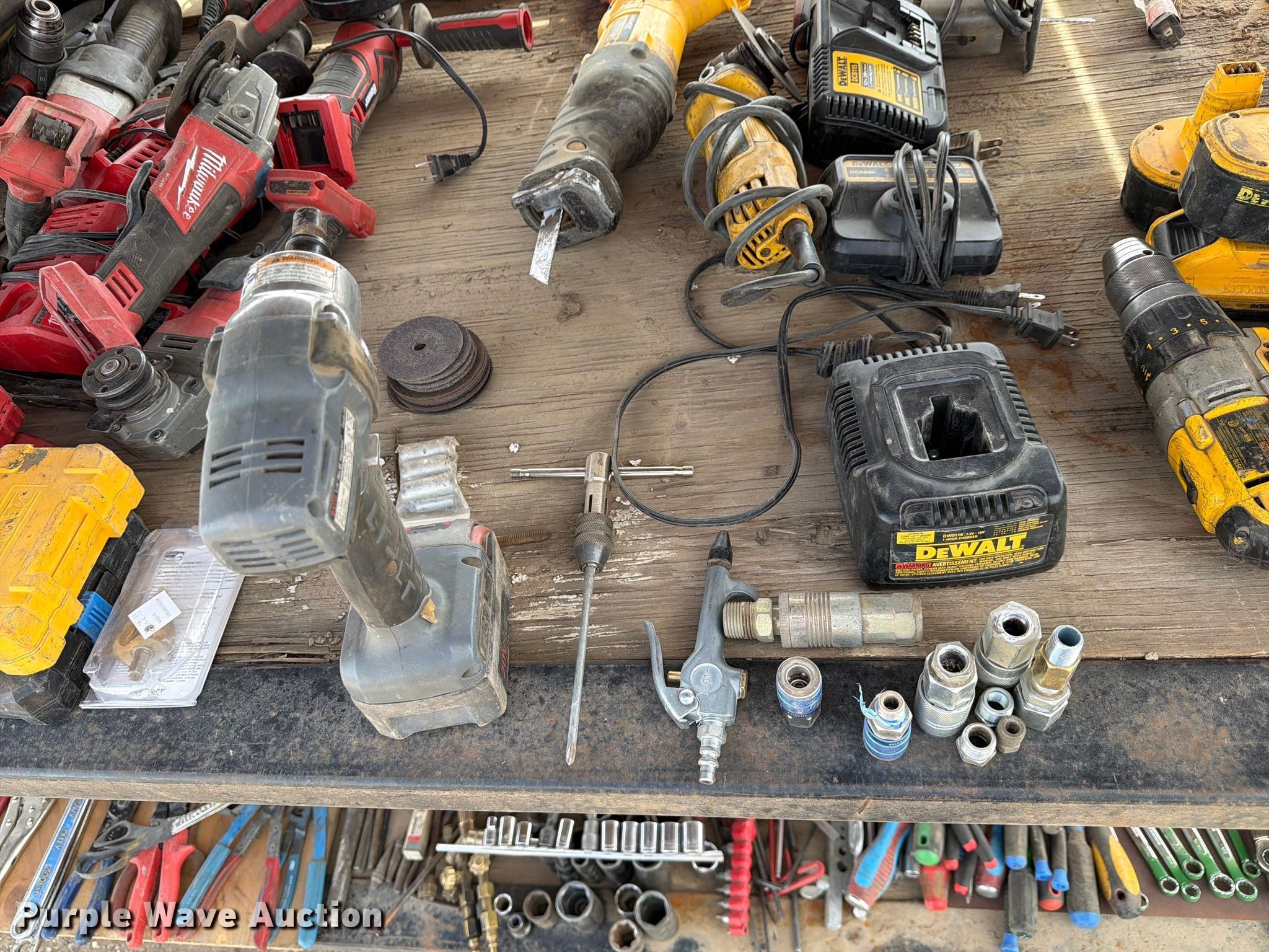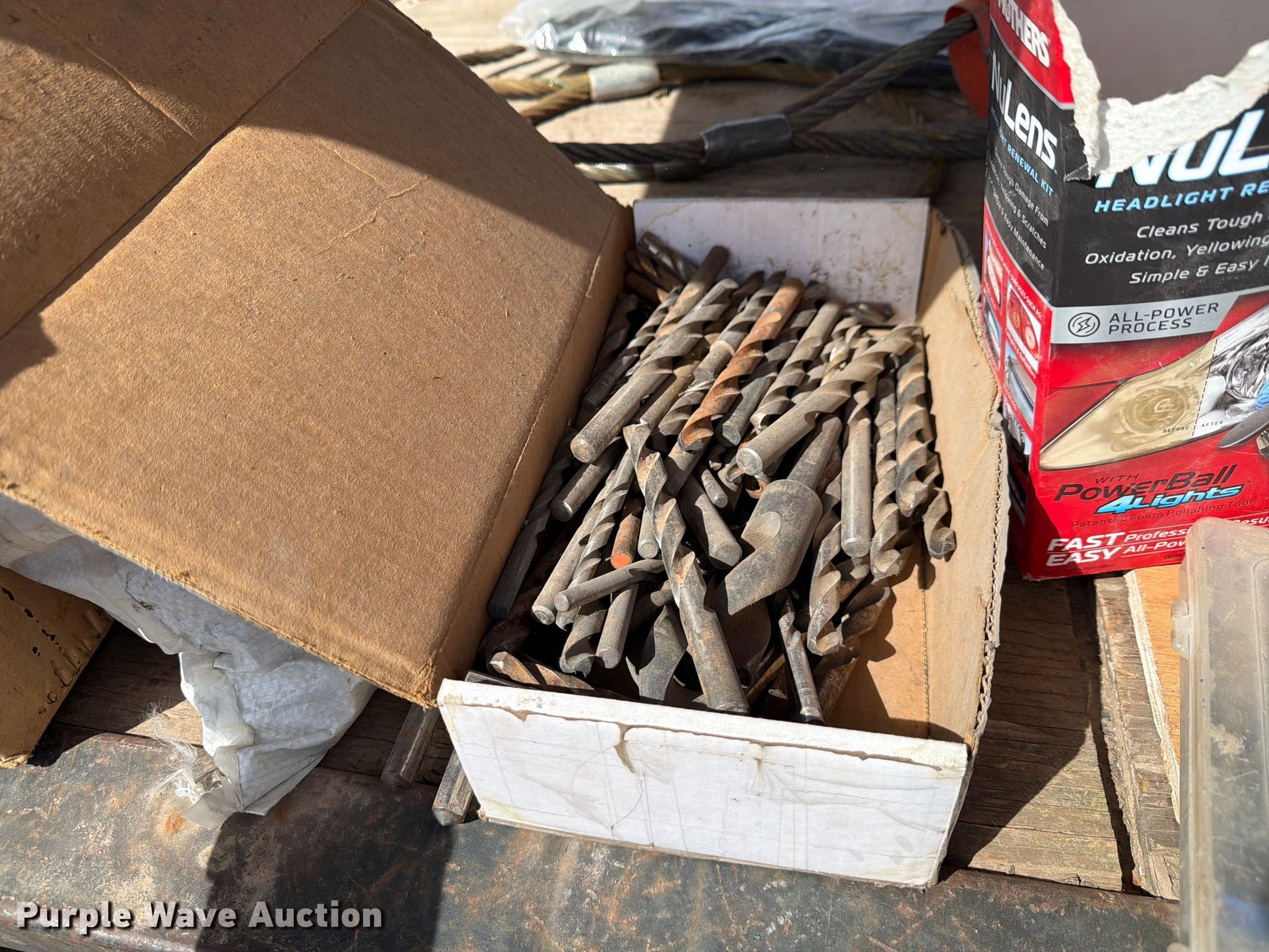 Purple Wave is selling a used Tools in Kansas. This item is a Tools with the following: Power Tools, Drill bits, Hand saws, Battery chargers, Hand cleaner, Tool bags, Welding gloves, Wrenches, Bolt cutters, Ratchet straps, Air tank, Signs, Shelf size: 124" L x 54" W x 71" H