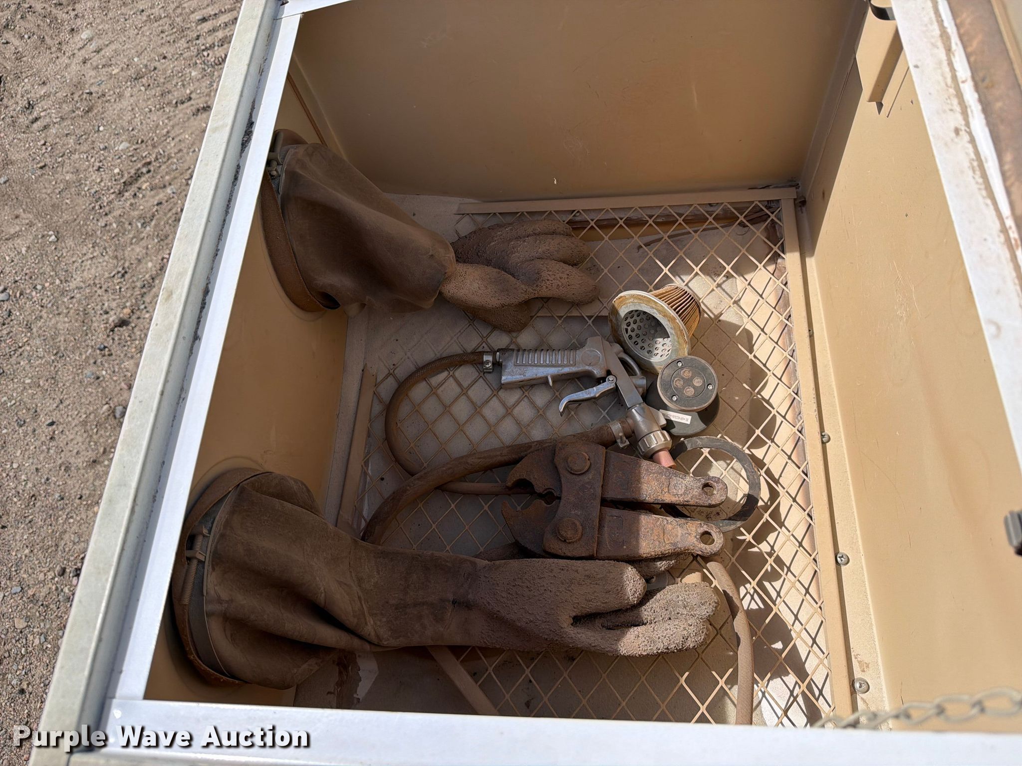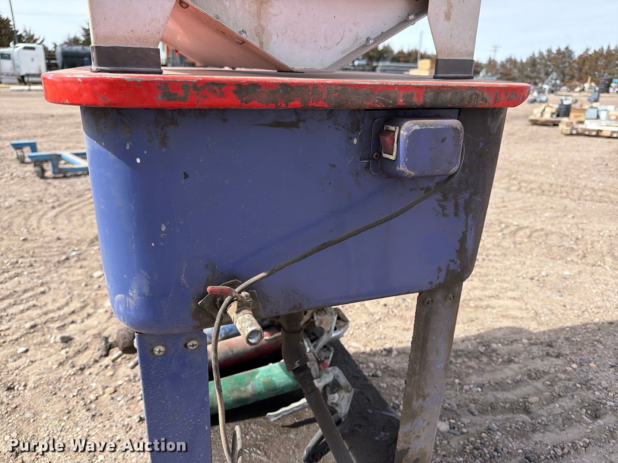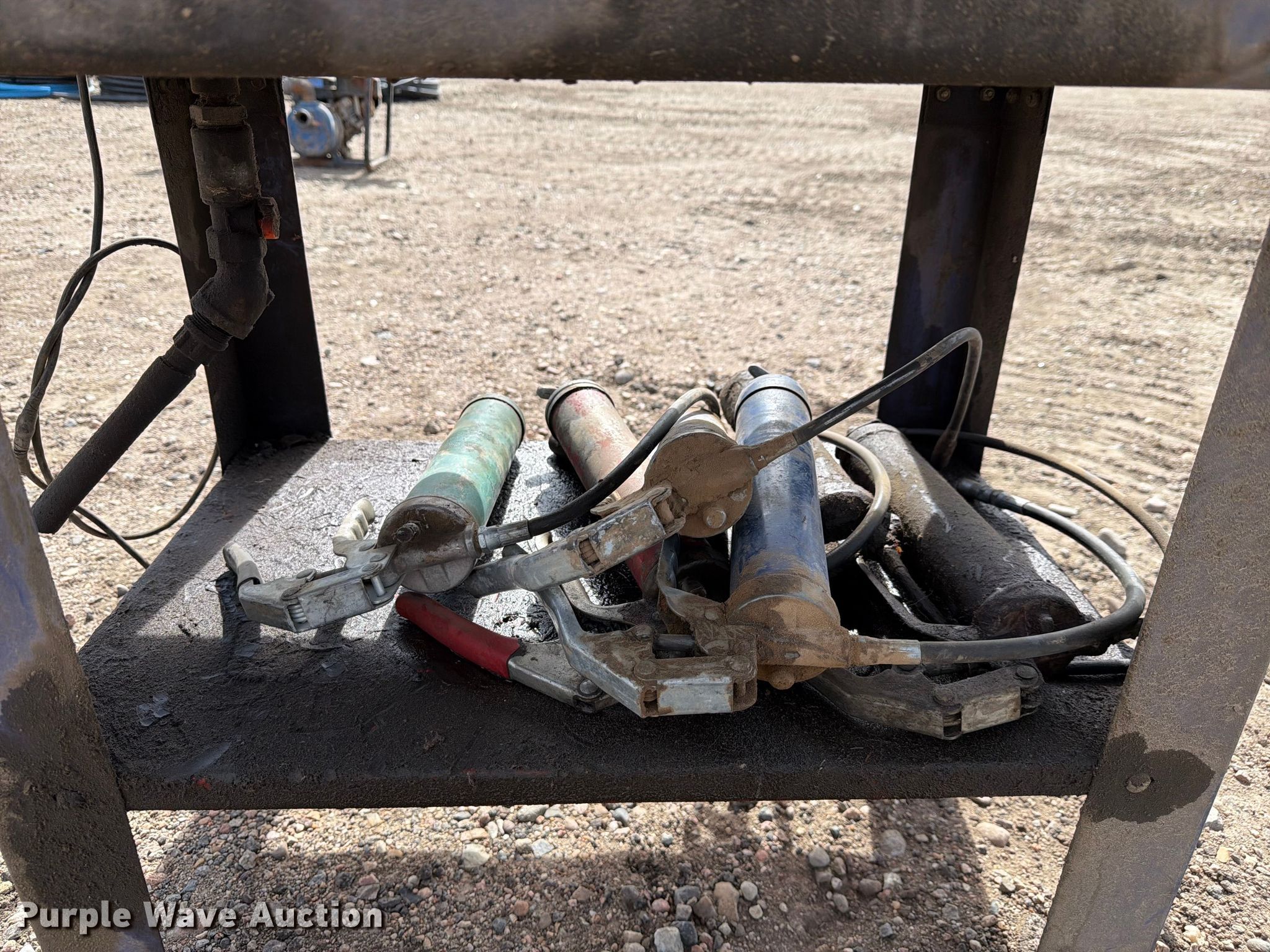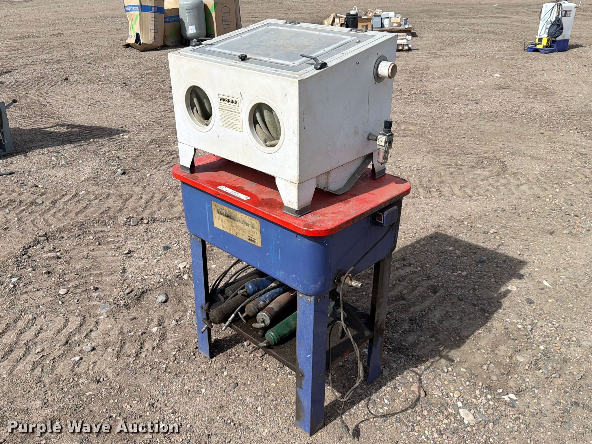 Purple Wave is selling a used Tools in Kansas. This item is a Truecraft parts washer with the following: Serial: 4885, Grease guns included, Unknown operating condition