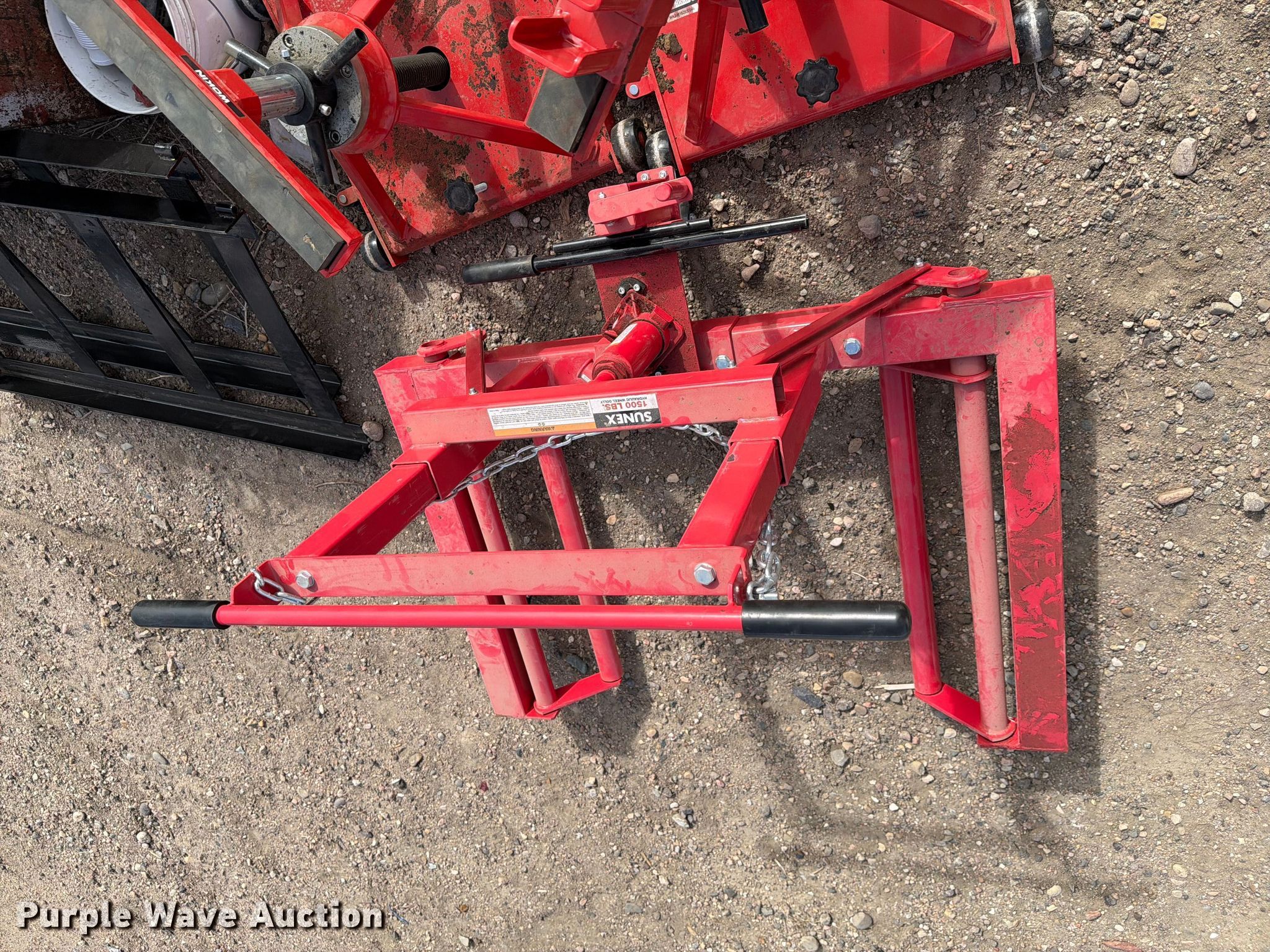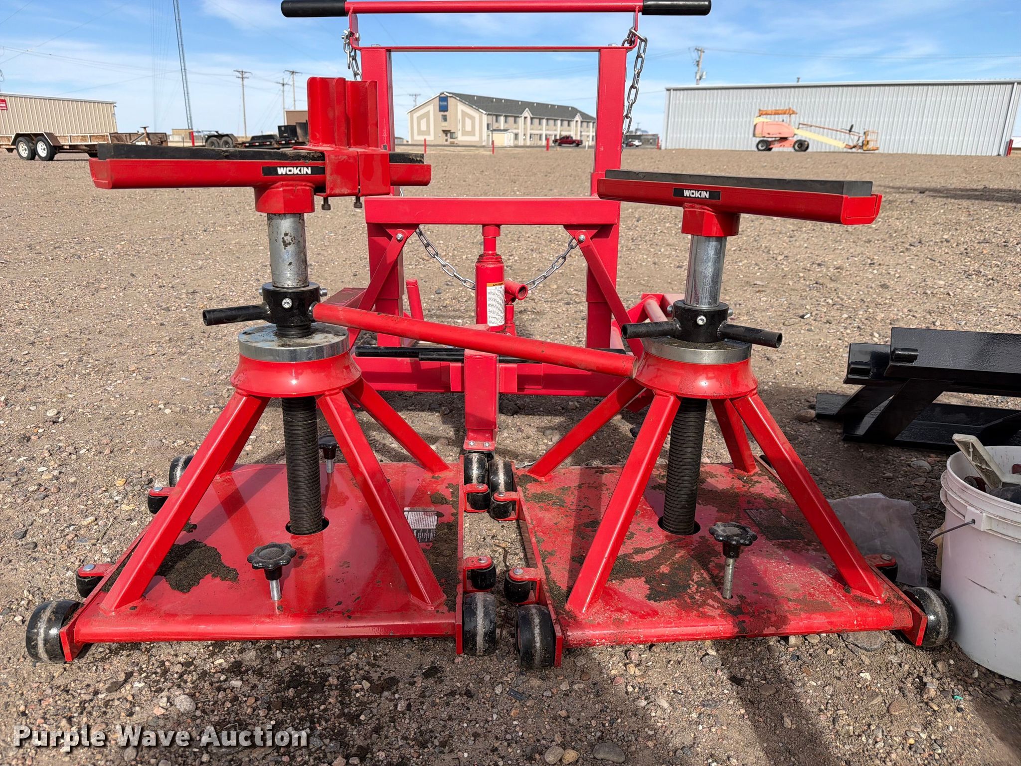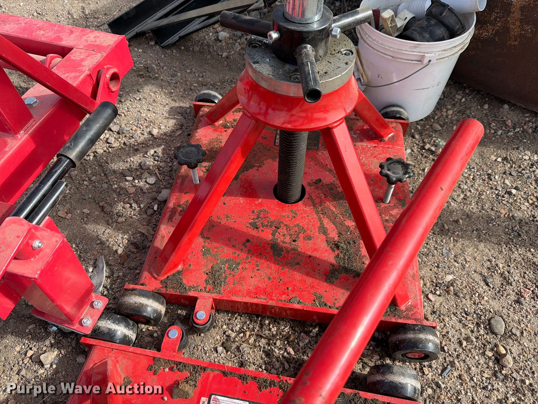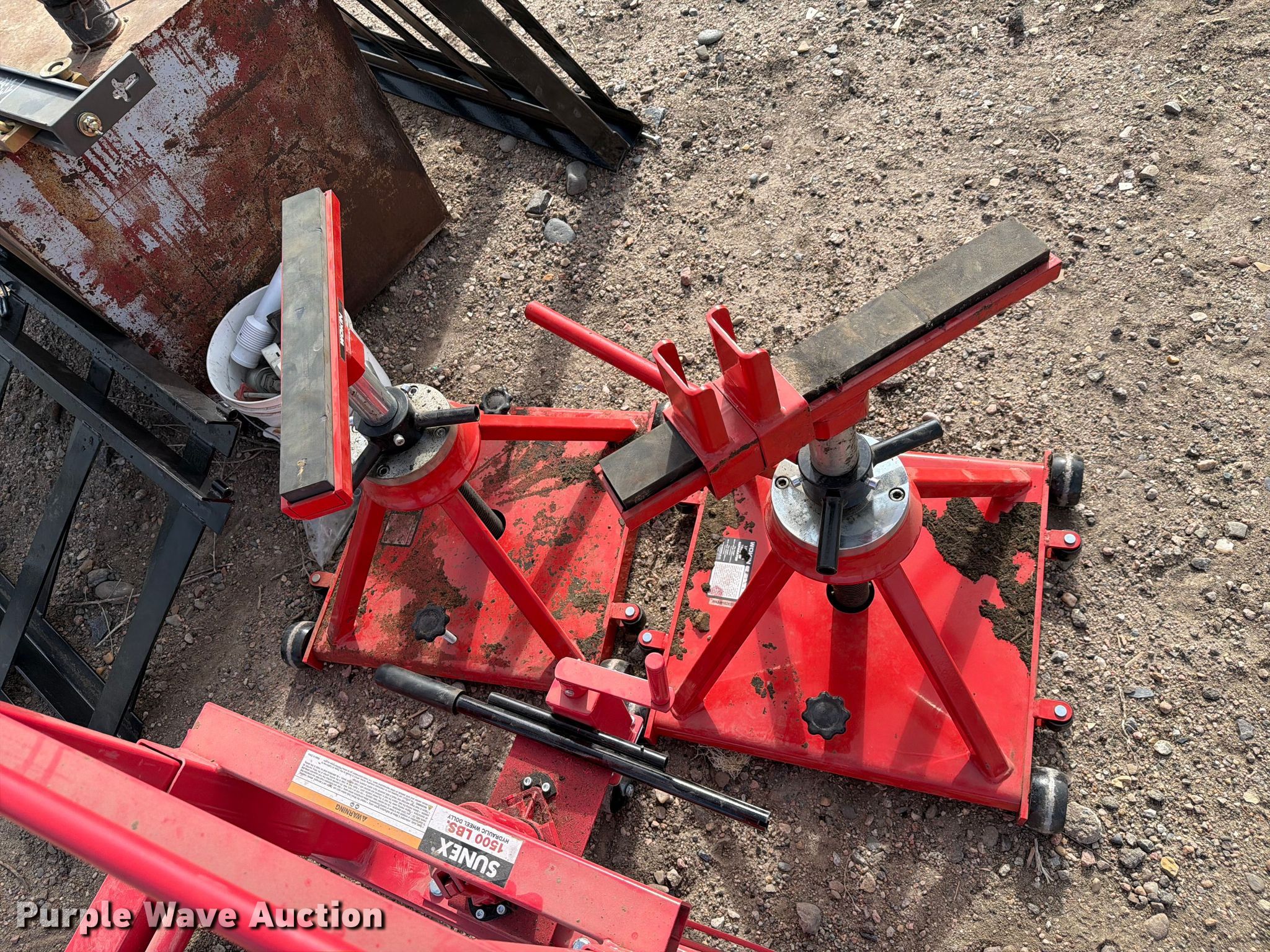 Purple Wave is selling a used Tools in Kansas. This item is a Tools with the following: Sunex hydraulic dolly, Capacity: 1,500 lbs, (2) Wokin tractor separators, Capacity: 10 tons, (4) brackets, 39" L x 23" W, Fuel tank, 36" L x 25" W x 24" H, Additional parts included