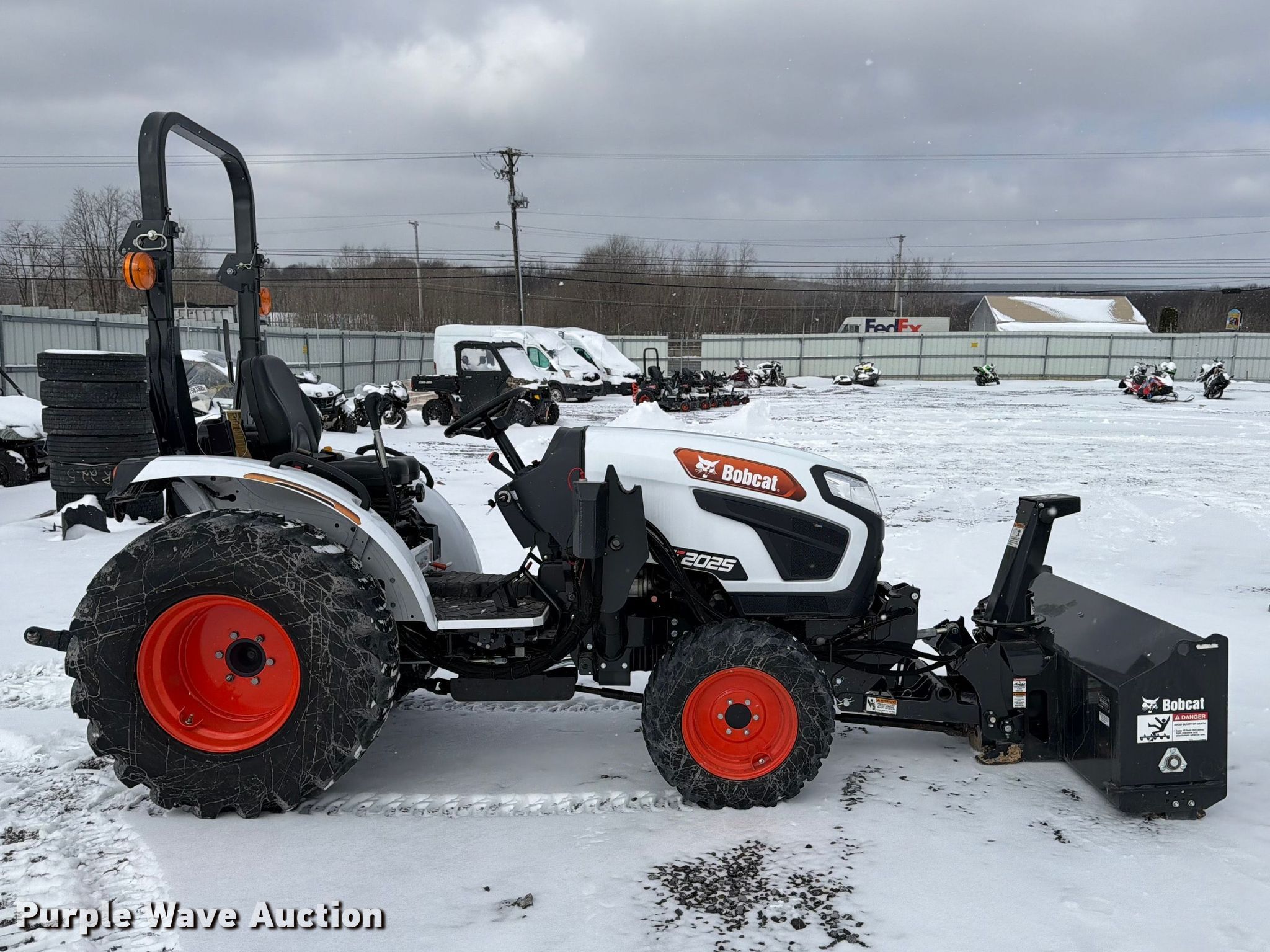 Bobcat CT2025 MFWD tractor. Hours: 41 on meter, Serial: B5AD11116, Unit #: 73051365. Engine Daedong 3A165-BC4A, Displacement: 1.647L, Cylinders: 3, Fuel type: Diesel. Transmission Hydrostatic, Differential lock. Features PTO: 540, Three point Top link, Hydraulic remote sets Front: 3, Loader ready, Snowblower Bobcat Serial: B59600463, Width: 62".. Tires Front: 8.50-14, Rear: 15-19.5. Repossessed item, stored at a secured facility. Please review REQUIRED REMOVAL INSTRUCTIONS. Lender Owned. 4007 Admiral Peary Highway. Ebensburg, PA 15931