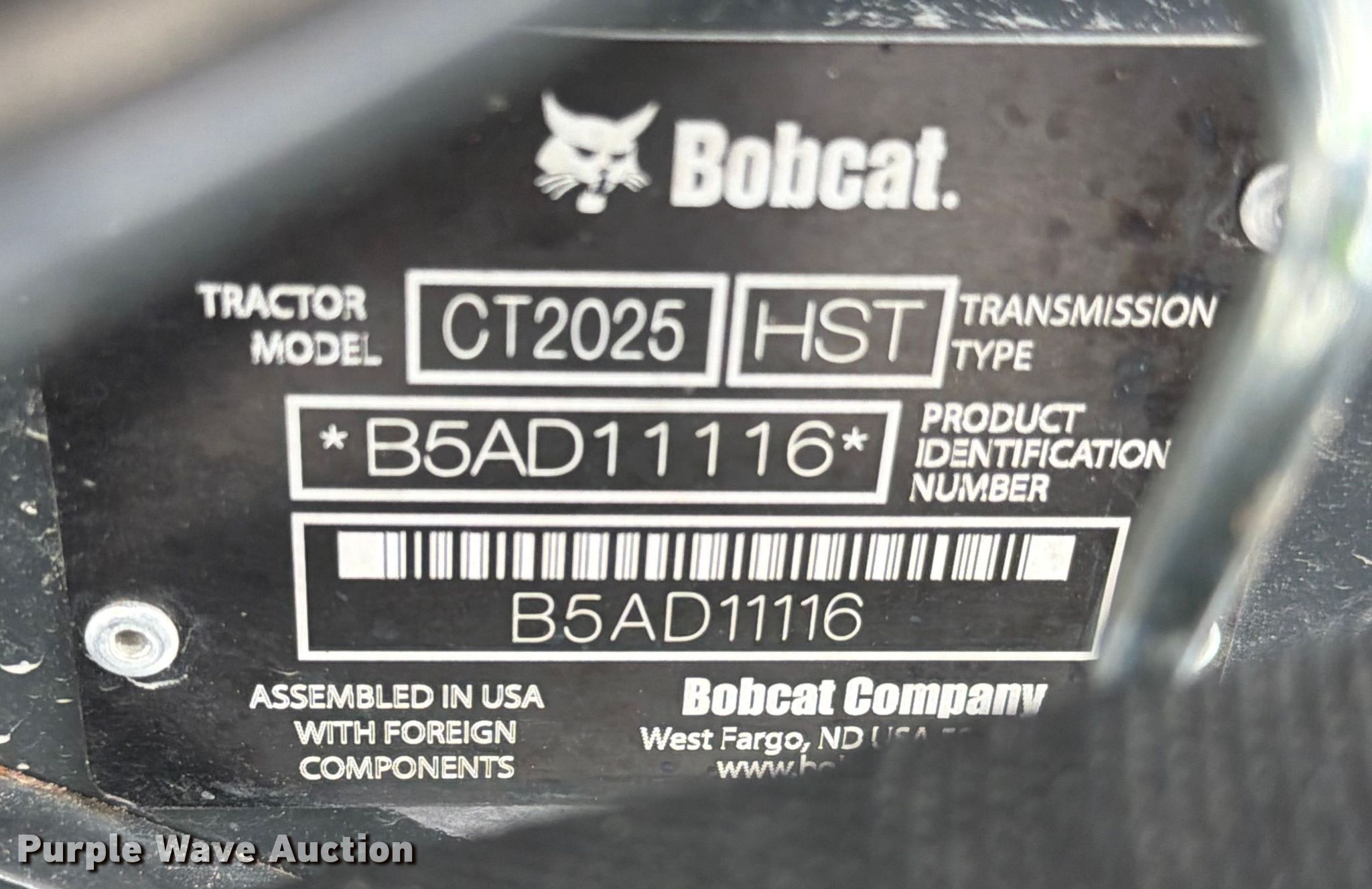 Purple Wave is selling a used Tractor in Pennsylvania. This item is a Bobcat CT2025 MFWD tractor with the following: Hours: 41 on meter, Serial: B5AD11116, Unit #: 73051365