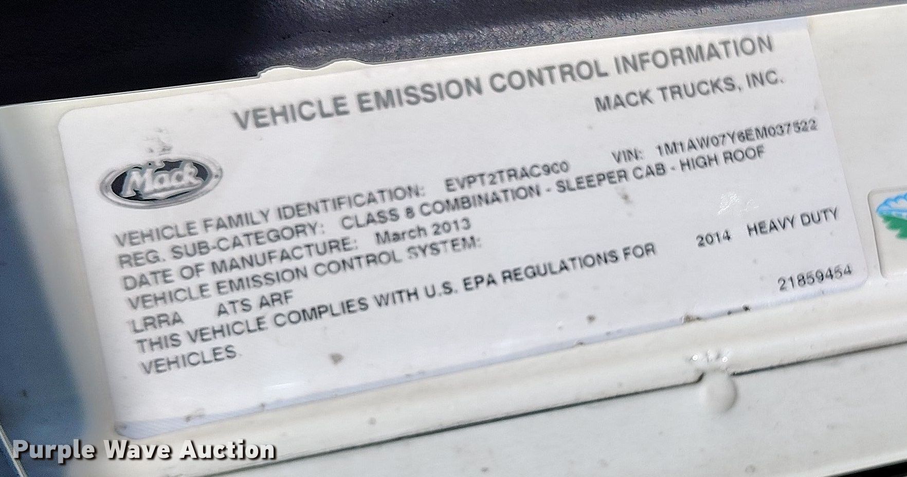 Take a look at this used 2014 Mack CXU semi truck being sold on April 2nd, 2026 in the Thursday April 02 Truck and Trailer Auction made by Mack. Take a look at all of the item information below or take a look at similar auctions for Trucks.