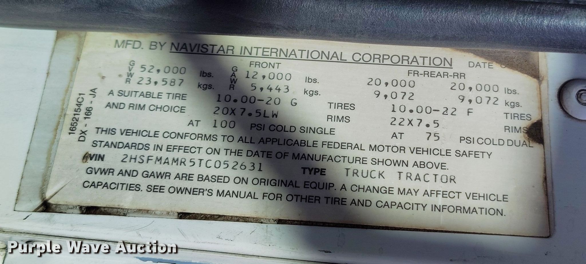 Purple Wave is selling a used Truck Tractor in Colorado. This item is a 1996 International 9200 semi truck with the following: Miles: 832,548 on odometer, Hours: 22,707 on meter, VIN: 2HSFMAMR5TC052631, Unit #: 22