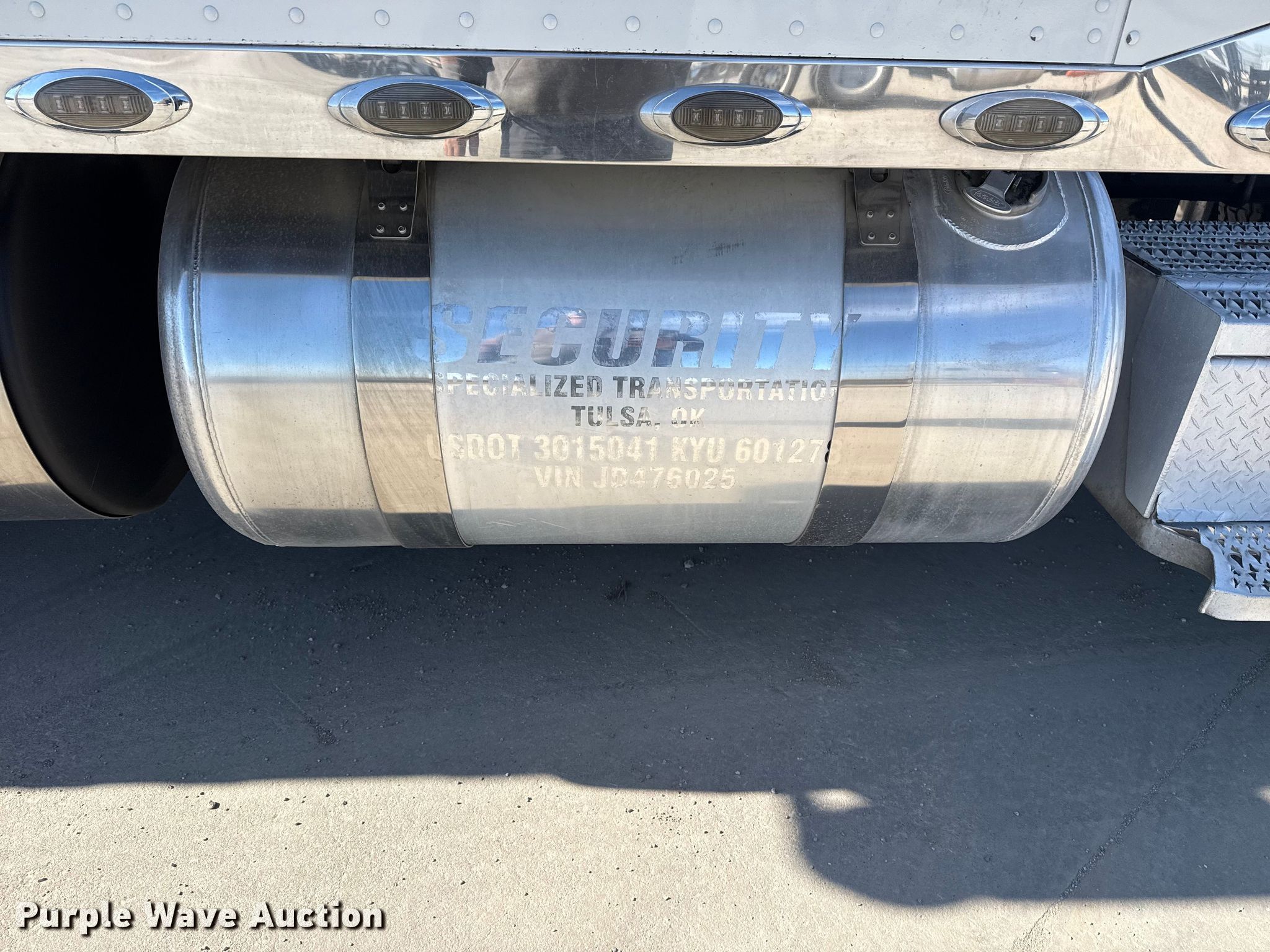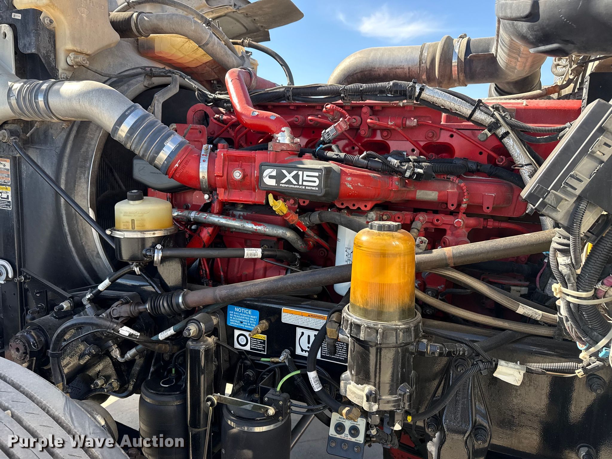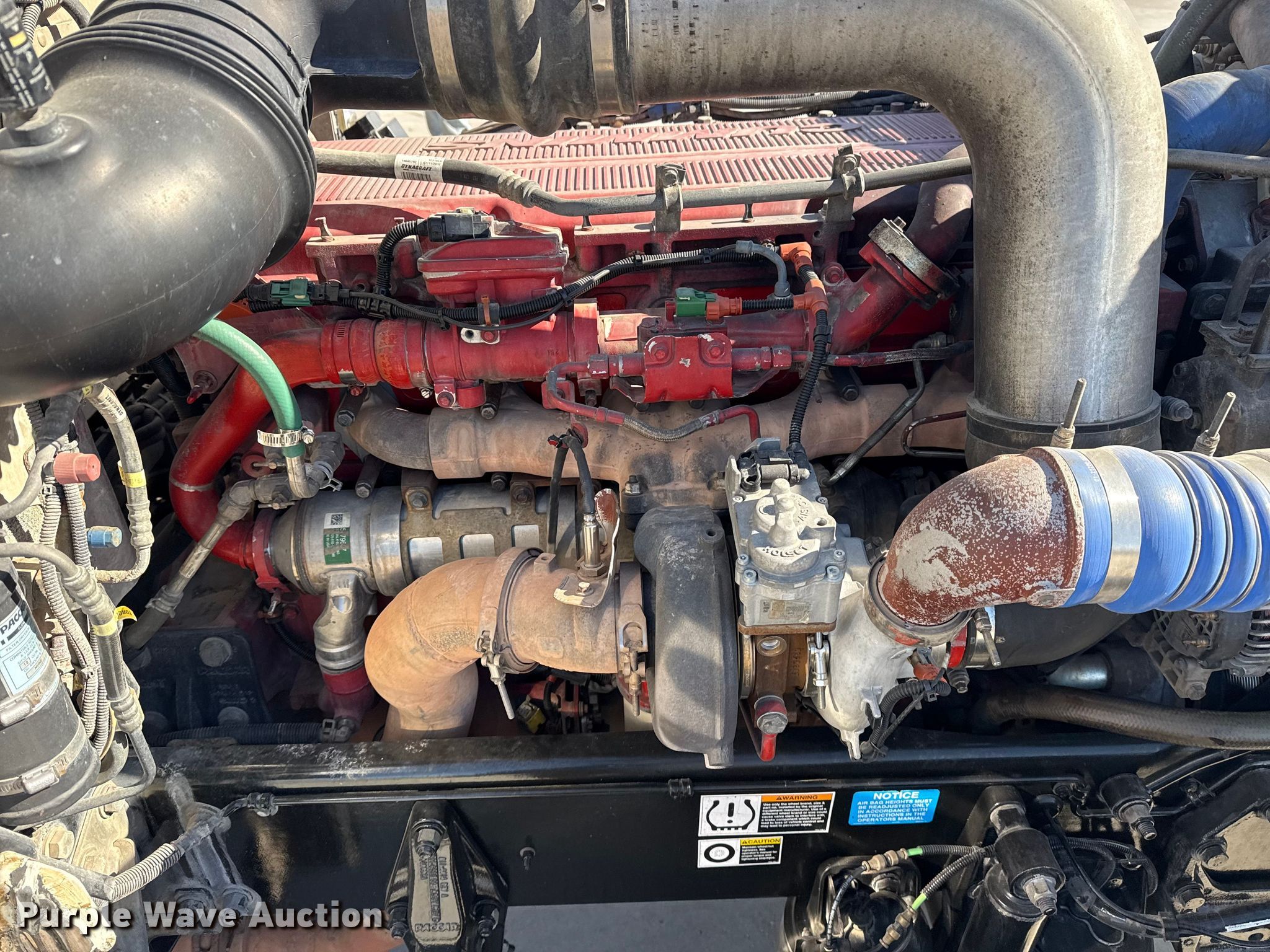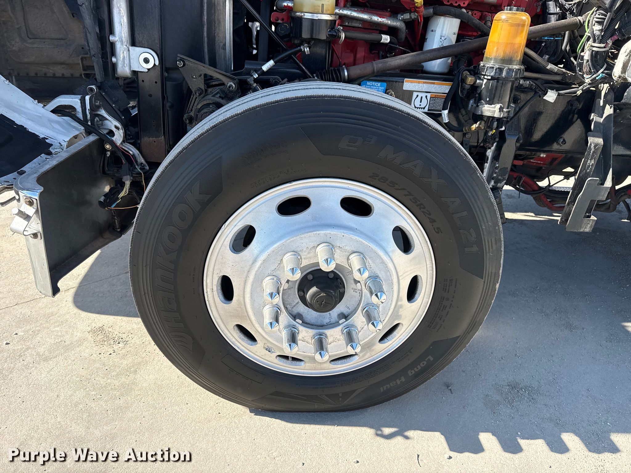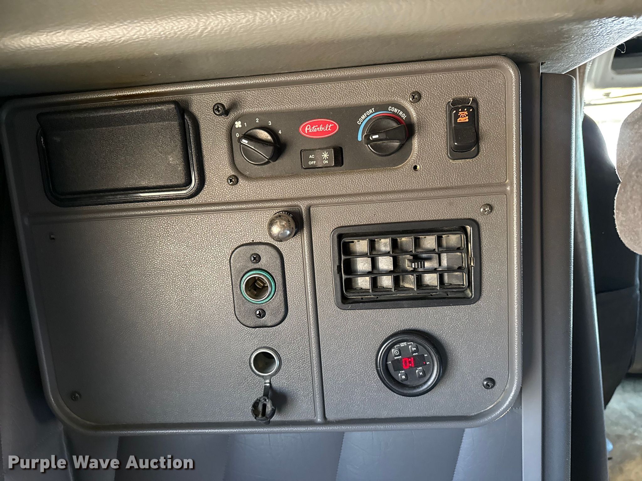 2018 Peterbilt 389 semi truck. Miles: 884,398 on odometer, Hours: 40,501 on meter, VIN: 1XPXD49XOJD476025, Unit #: 110. Engine Cummins X15, Serial: 799994533, Displacement: 15.0L, Cylinders: 6, Fuel type: Diesel. Transmission Eaton Fuller, Manual, Speed: 18. Chassis Axles: Tandem, Differential lock: Inter-axle, Suspension: Air Dump valves, Brakes: Air, GVWR: 53,200 lbs FAWR: 13,200 lbs, IAWR: 20,000 lbs, RAWR: 20,000 lbs. Interior AC, Heat, Heated mirrors, Power windows, Power locks, Cruise control, Air ride cab, Auxiliary controls, Sleeper Sleeper length: 60", Beds: Single, Refrigerator, Rear climate control. Features Fifth wheel type: Air operated, Sliding, Fuel tank: Dual. Tires Front: 285/75R24.5, Rear: 295/75R22.5. Notes Operator's manual, Dash warning indicator: Check engine, Windshield chipped or cracked, Emissions system modified, DPF deleted. Oklahoma title. Title distribution may be delayed up to 14 days from verification of funds. Security Specialized. 3529 West 151st Street South. Kiefer, OK 74041