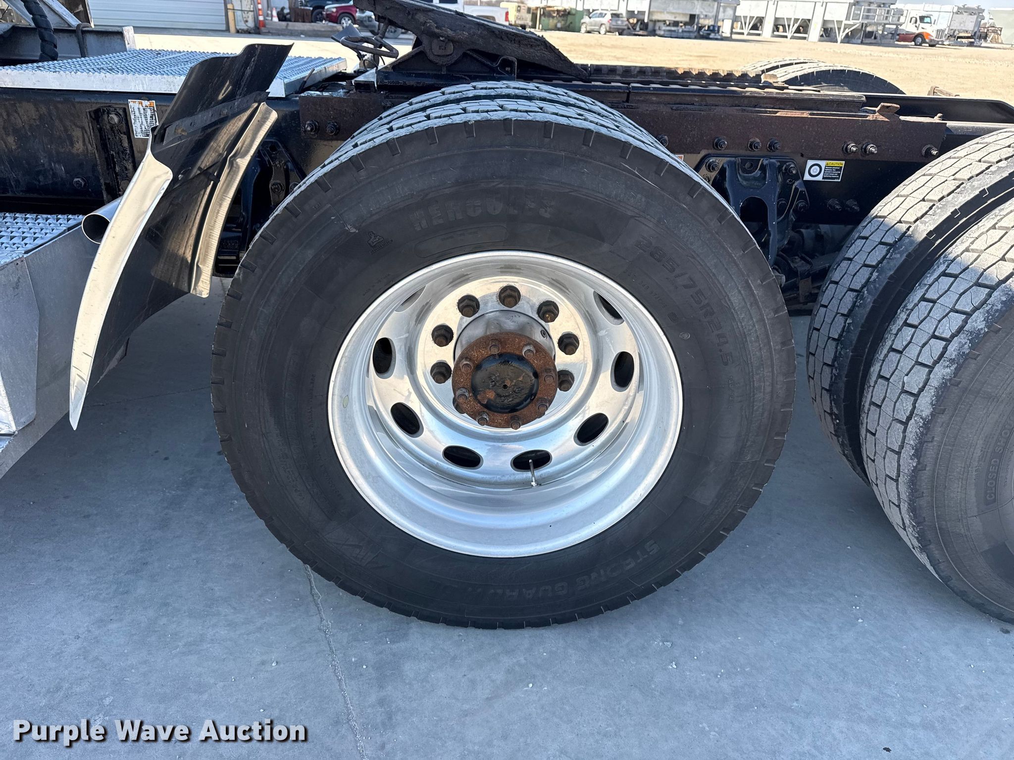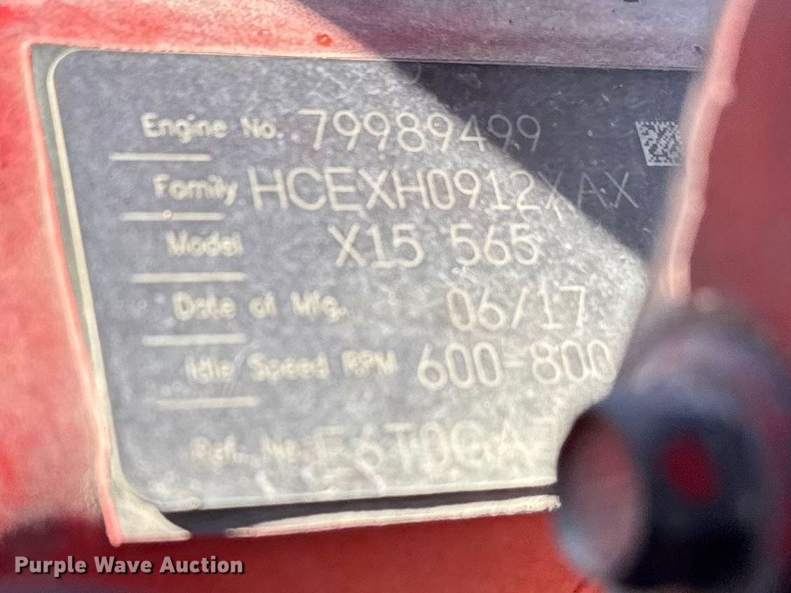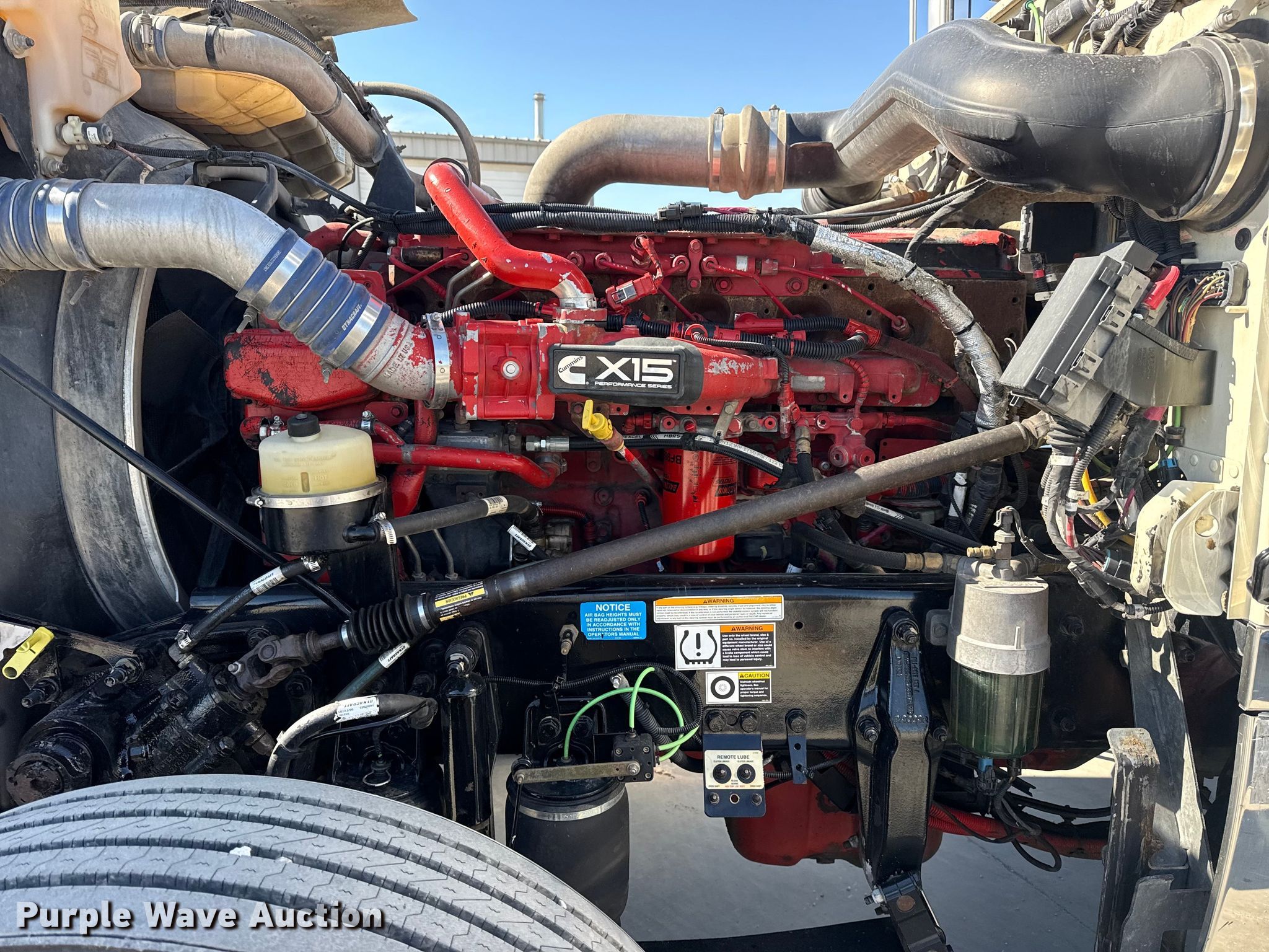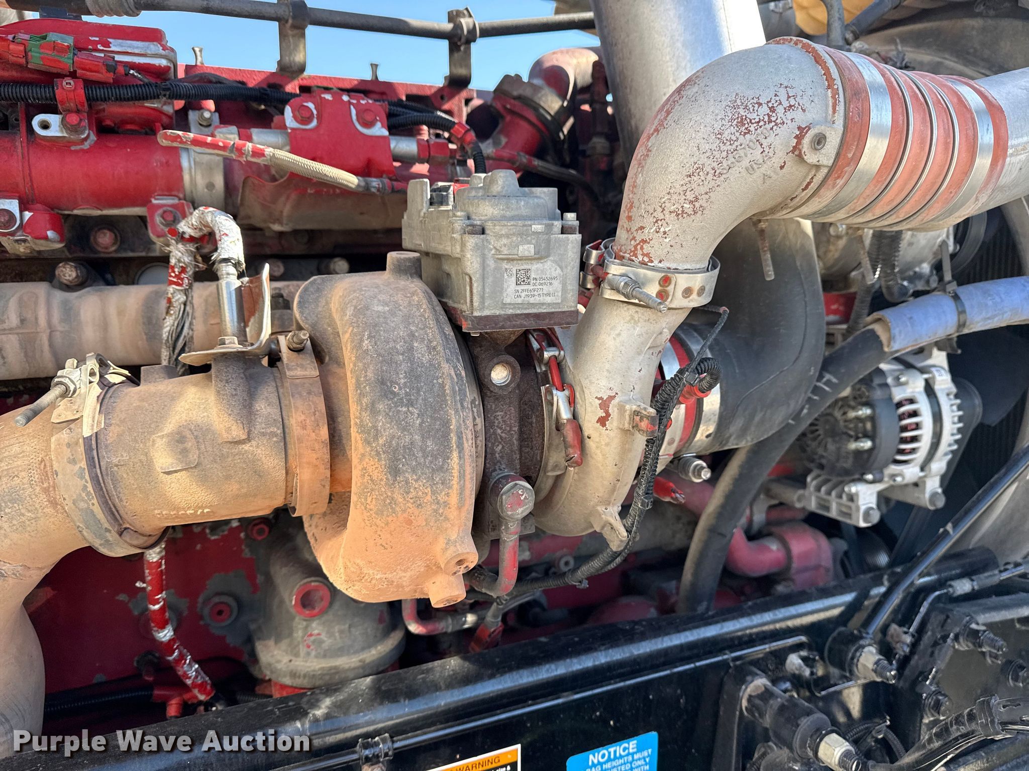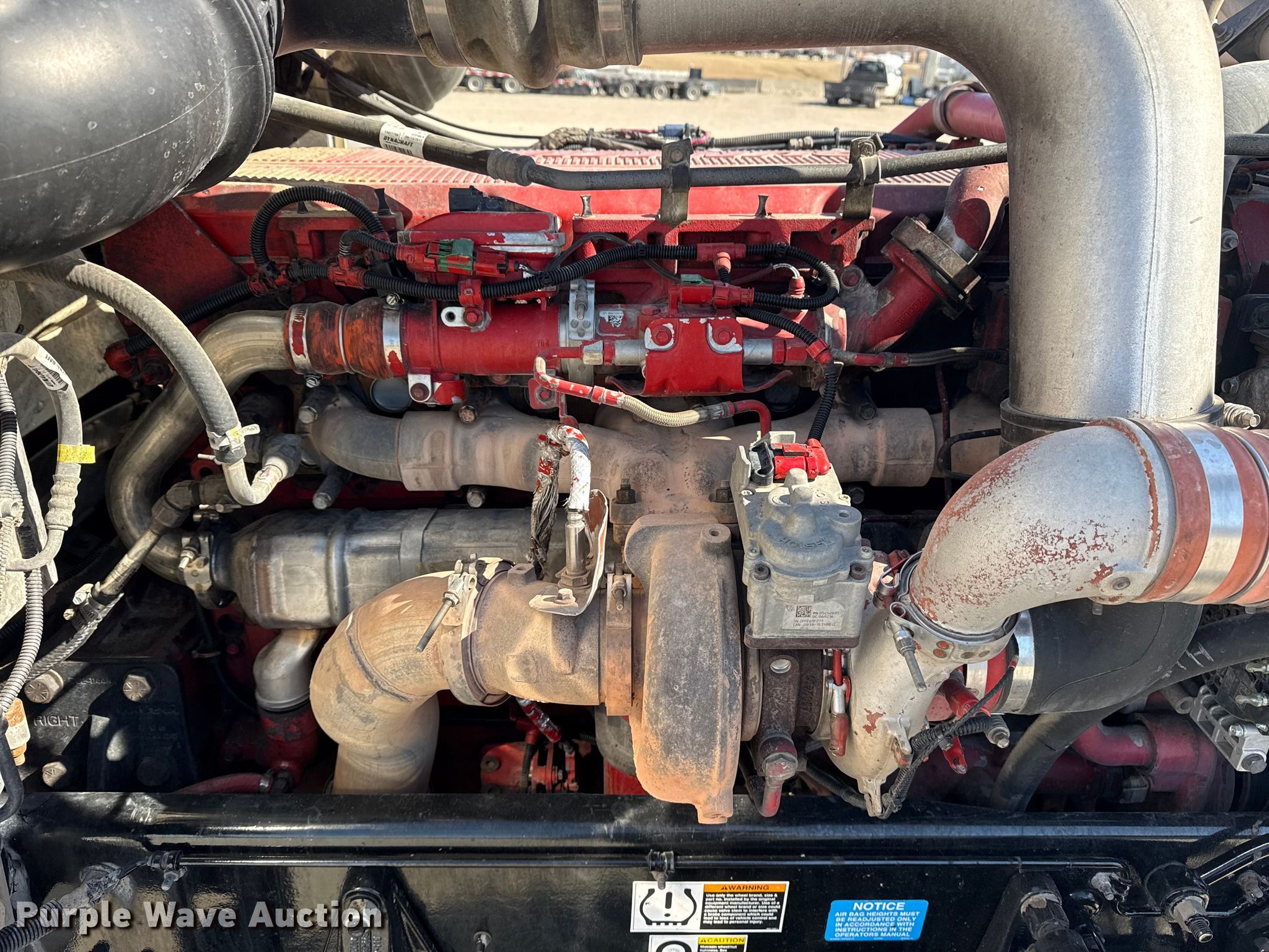 2018 Peterbilt 389 semi truck. Miles: 854,272 on odometer, Hours: 33,017 on meter, VIN: 1XPXD49X2JD472560, Unit #: 104. Engine Cummins X15, Serial: 79989499, Displacement: 15.0L, Cylinders: 6, Fuel type: Diesel. Transmission Eaton Fuller, Manual, Speed: 18. Chassis Axles: Tandem, Differential lock: Inter-axle, Suspension: Air Dump valves, Brakes: Air, GVWR: 53,200 lbs FAWR: 13,200 lbs, IAWR: 20,000 lbs, RAWR: 20,000 lbs. Interior AC, Heat, Heated mirrors, Power windows, Power locks, Cruise control, Air ride cab, Auxiliary controls, Brake controller Beds: Single, Refrigerator, Rear climate control. Features Fifth wheel type: Air operated, Sliding, Fuel tank: Dual. Tires Size: 285/75R24.5. Notes Owner's manual, Dash warning indicator: Check engine, Windshield chipped or cracked, Emissions system modified, DPF deleted. Oklahoma title. Title distribution may be delayed up to 14 days from verification of funds. Security Specialized. 3529 West 151st Street South. Kiefer, OK 74041