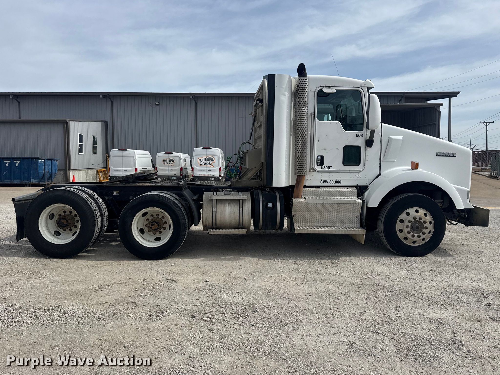 2012 Kenworth T800 semi truck. Miles: 353,780 on odometer, Hours: 18,877 on meter, VIN: 1XKDD49X1CJ306432. Engine Cummins ISX15, Serial: 79471292, Displacement: 15.0L, Cylinders: 6, Fuel type: Diesel, Engine brake. Transmission Eaton Fuller, Manual, Speed: 10. Chassis Axles: Tandem, Differential lock: Inter-axle, Suspension: Air Dump valves, Brakes: Air, PTO, GVWR: 48,000 lbs FAWR: 12,000 lbs, IAWR: 18,000 lbs, RAWR: 18,000 lbs. Interior AC, Heat, Heated mirrors, Power windows, Power locks, Cruise control, Air ride cab, Brake controller. Features Deck plate: Aluminum, Fifth wheel type: Air operated, Sliding, Fuel tank: Dual. Tires Size: 295/75R22.5. Oklahoma title. Title distribution may be delayed up to 14 days from verification of funds. Mill Creek lumber & Supply. Tulsa, OK 74145