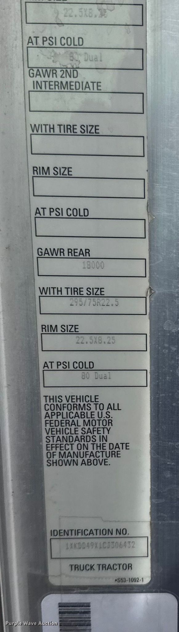 • VIN: 1XKDD49X1CJ306432