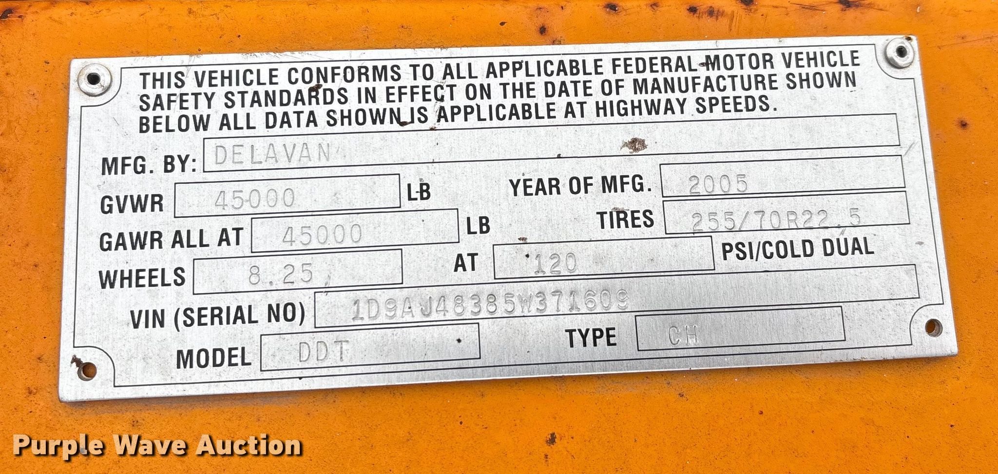 Purple Wave is selling a used Car Carrier in Illinois. This item is a 2005 Delavan Industries DDT car carrier with the following: VIN: 1D9AJ48385W371609, Unit #: 973930