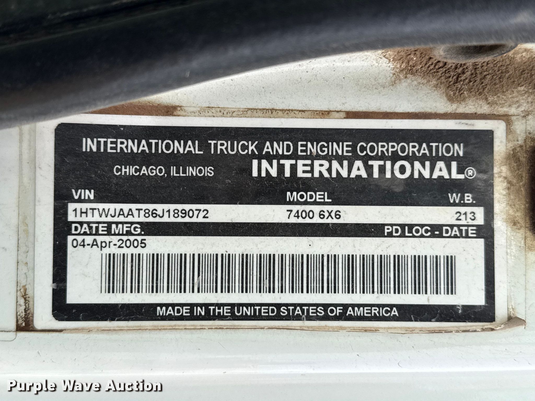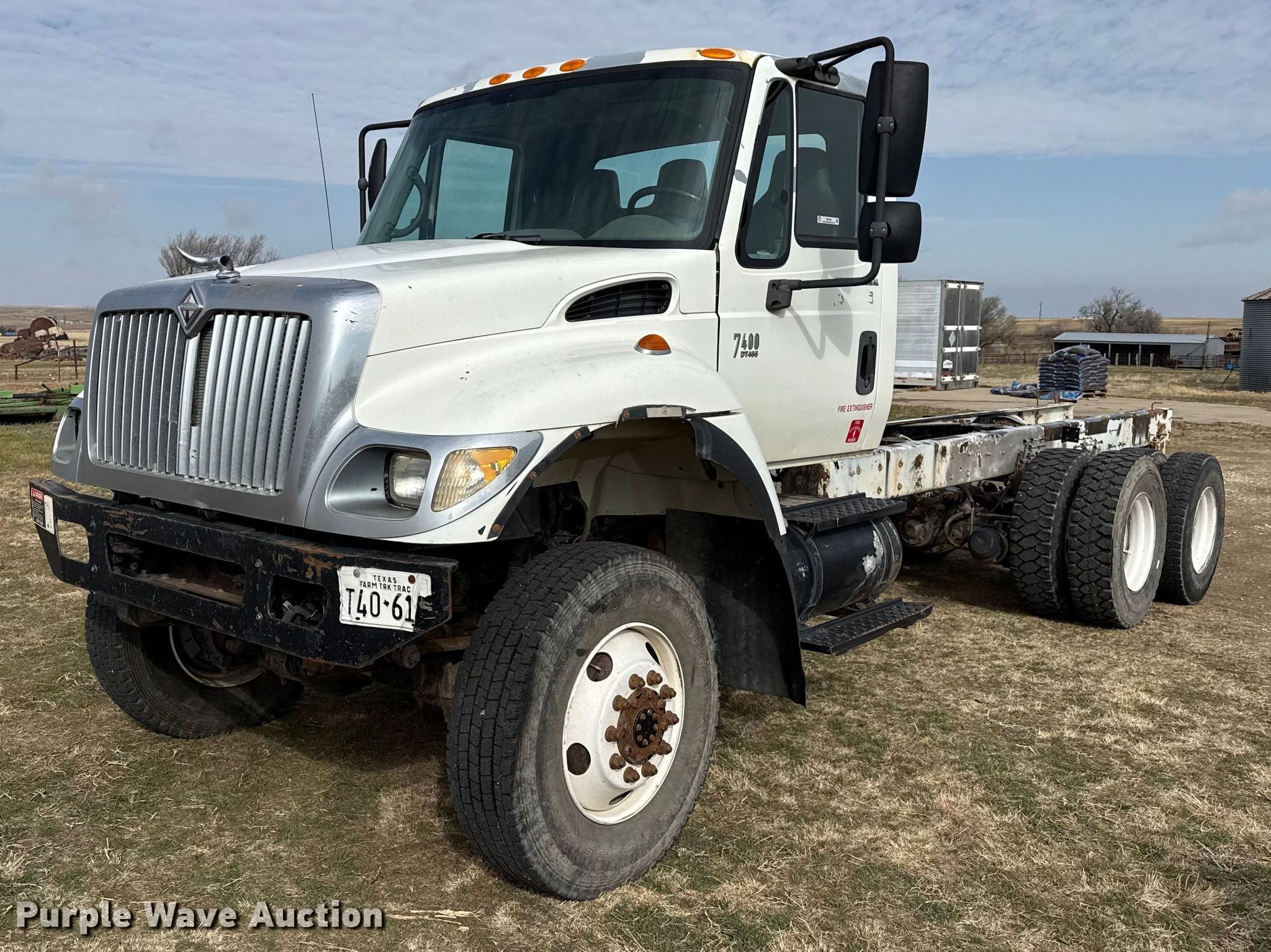 Purple Wave is selling a used Truck Chassis in Texas. This item is a 2006 International 7400 truck cab and chassis with the following: Miles: 82,860 on odometer, Hours: 9,543 on meter, VIN: 1HTWJAAT86J189072