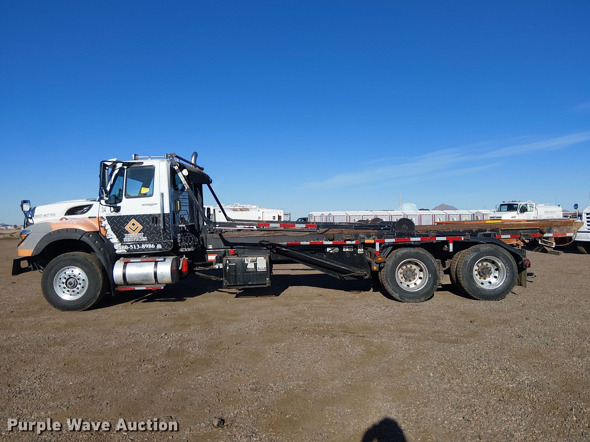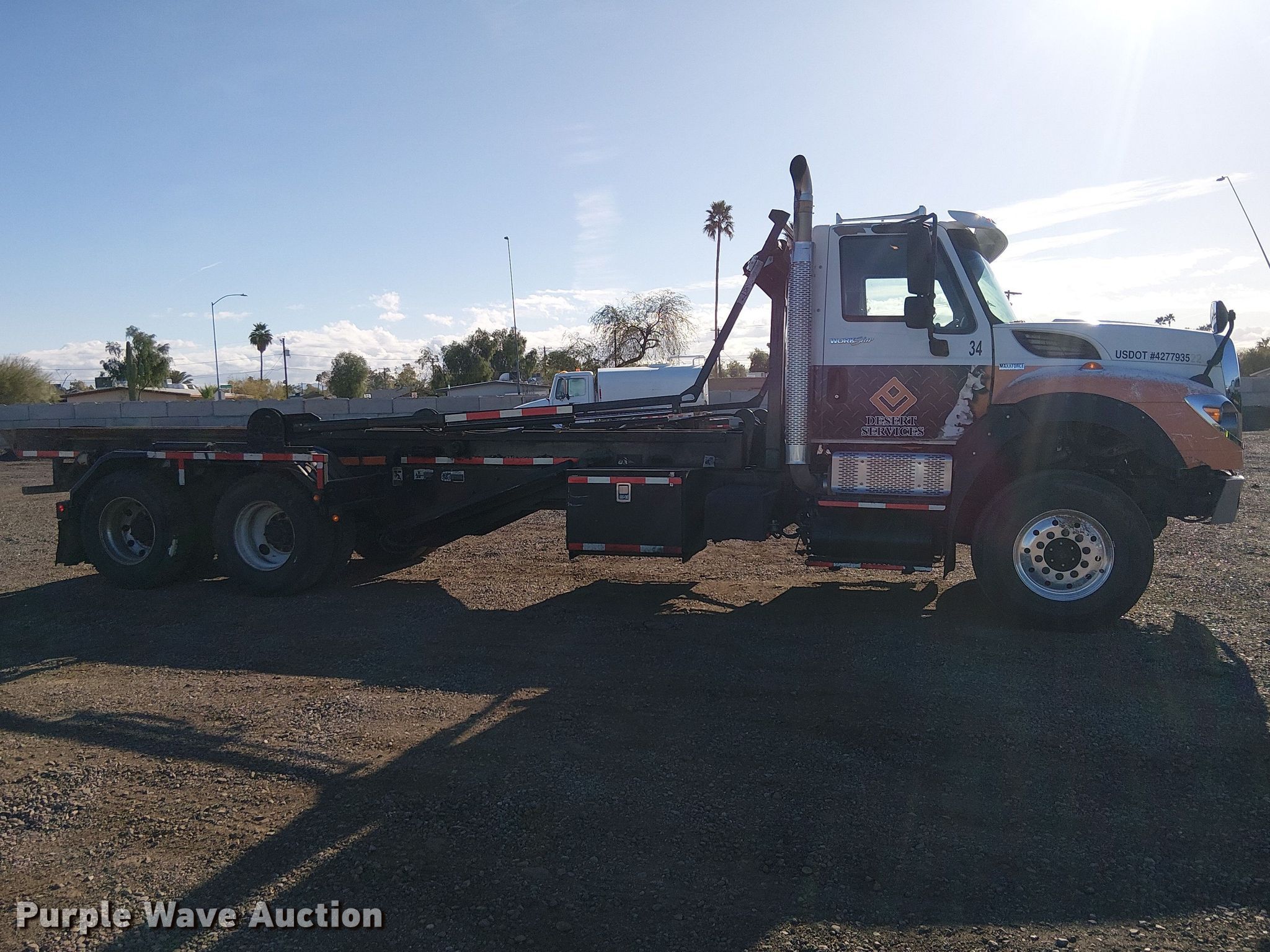 Purple Wave is selling a used Rollback or Tow Truck in Arizona. This item is a 2013 International 7600 roll-off container truck with the following: Miles: 382,820 on odometer, VIN: 1HTGSSHT8DJ361711, Unit #: 34
