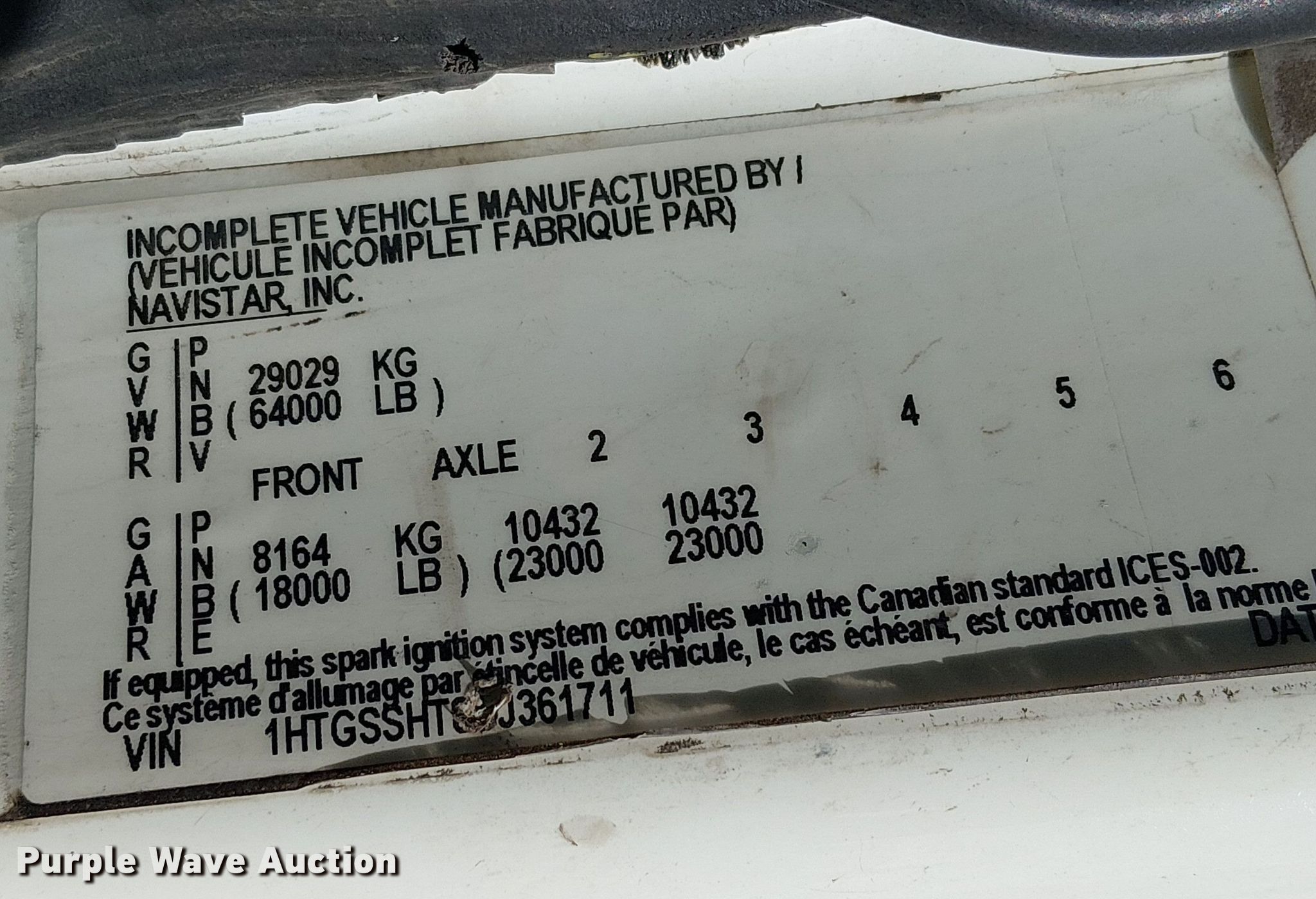 - VIN: 1HTGSSHT8DJ361711