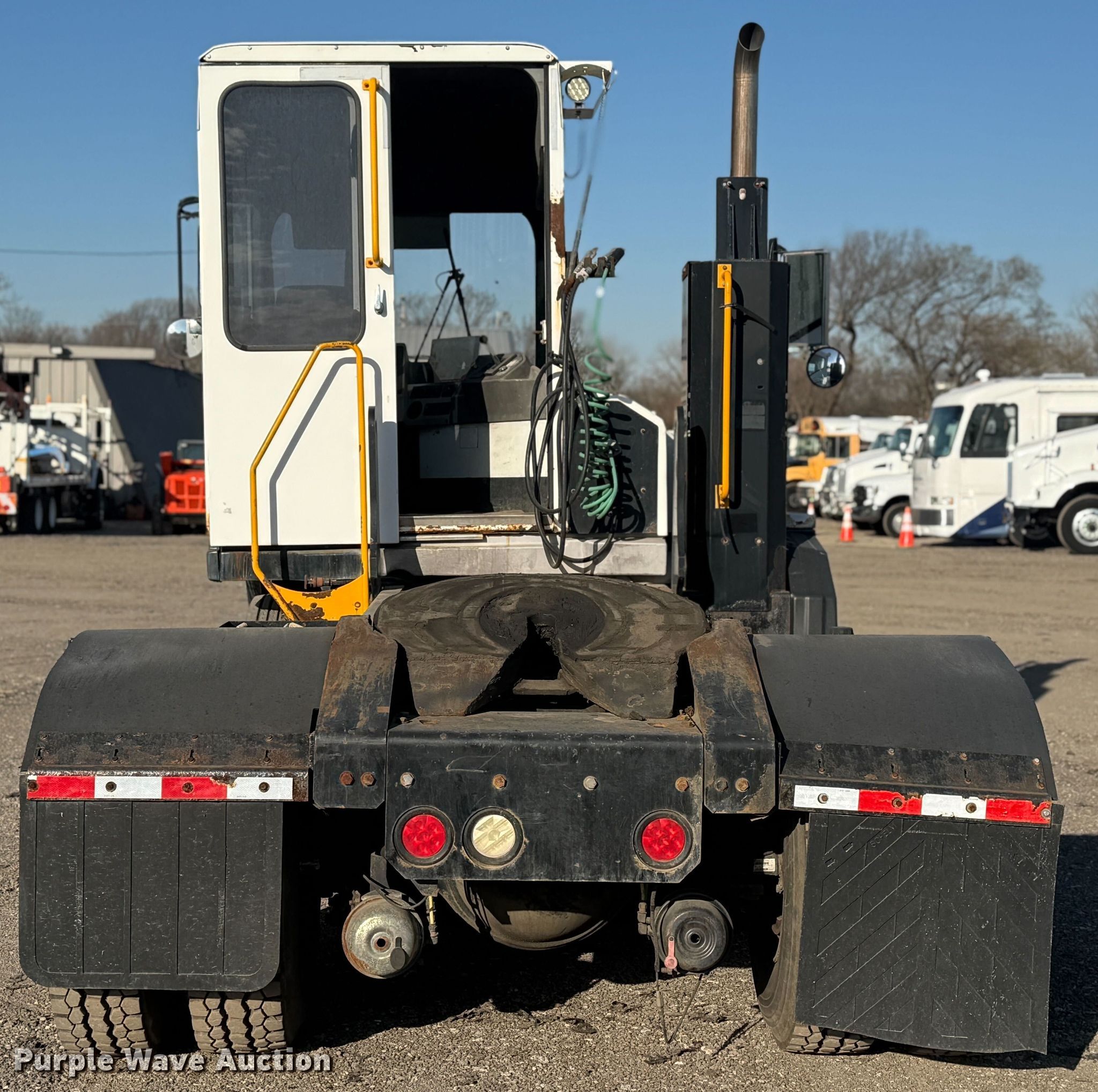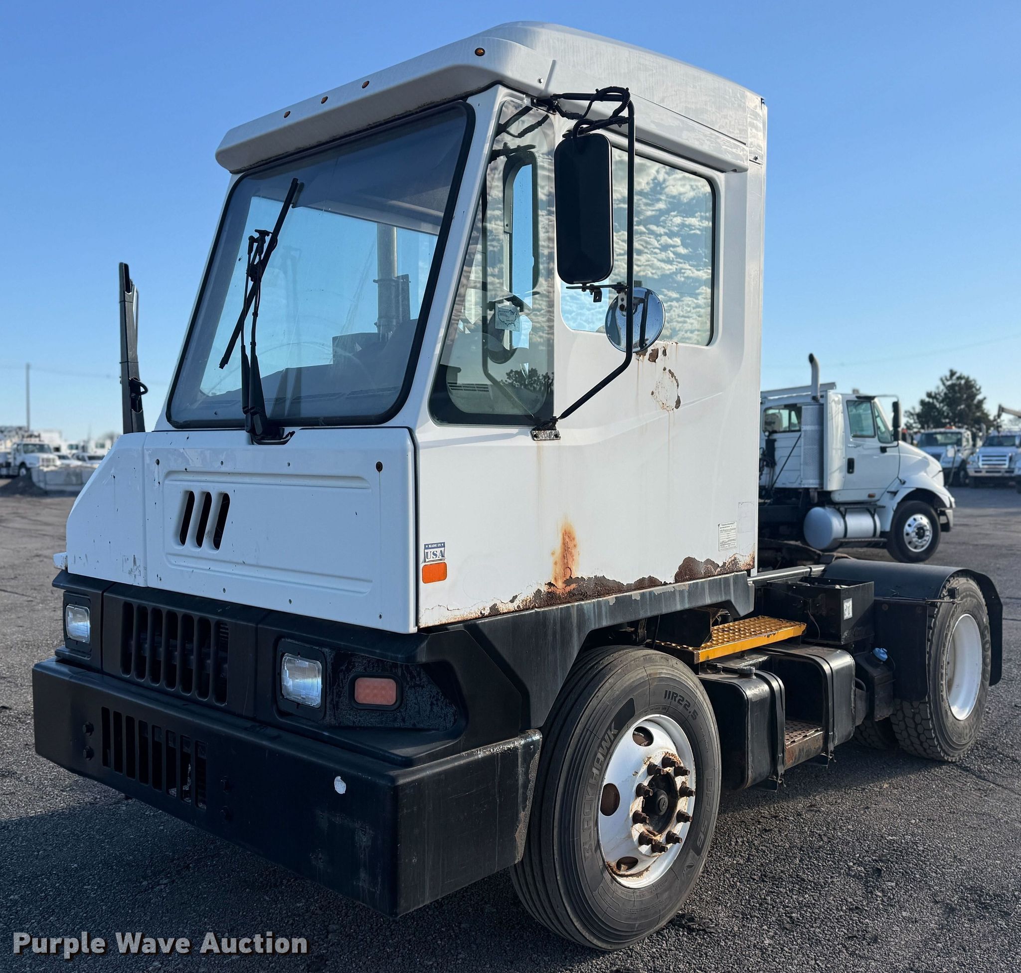 2016 Kalmar yard truck. Miles: 82,809 on odometer, Hours: 27,461 on meter, VIN: 11VJ813E5GA000757. Engine Cummins, Cylinders: 6, Fuel type: Diesel. Transmission Automatic. Chassis Axles: Single, Suspension: Spring, Brakes: Air, GVWR: 36,000 lbs FAWR: 12,000 lbs, RAWR: 24,000 lbs. Interior AC, Heat, Heated mirrors. Features Deck plate: Steel, Fifth wheel type: Fixed, Hydraulic lift, Fuel tank: Single. Tires Size: 11R22.5. Notes Dash warning indicator: Check engine. Oklahoma title. Title distribution may be delayed up to 14 days from verification of funds. Collinsville, OK 74021