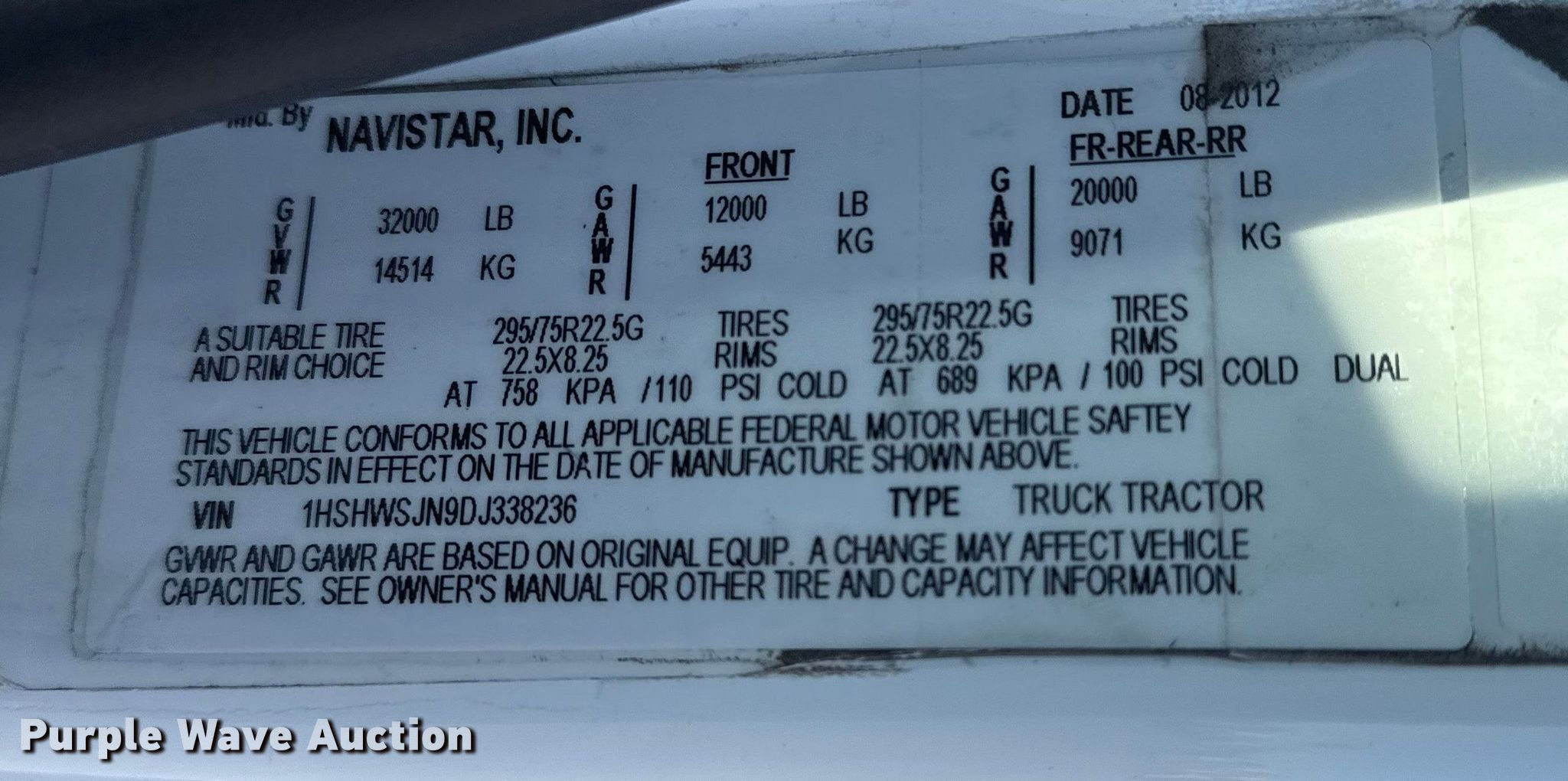Purple Wave is selling a used Truck Tractor in Oklahoma. This item is a 2013 International 8600 semi truck with the following: Miles: 655,622 on odometer, Hours: 16,279 on meter, VIN: 1HSHWSJN9DJ338236