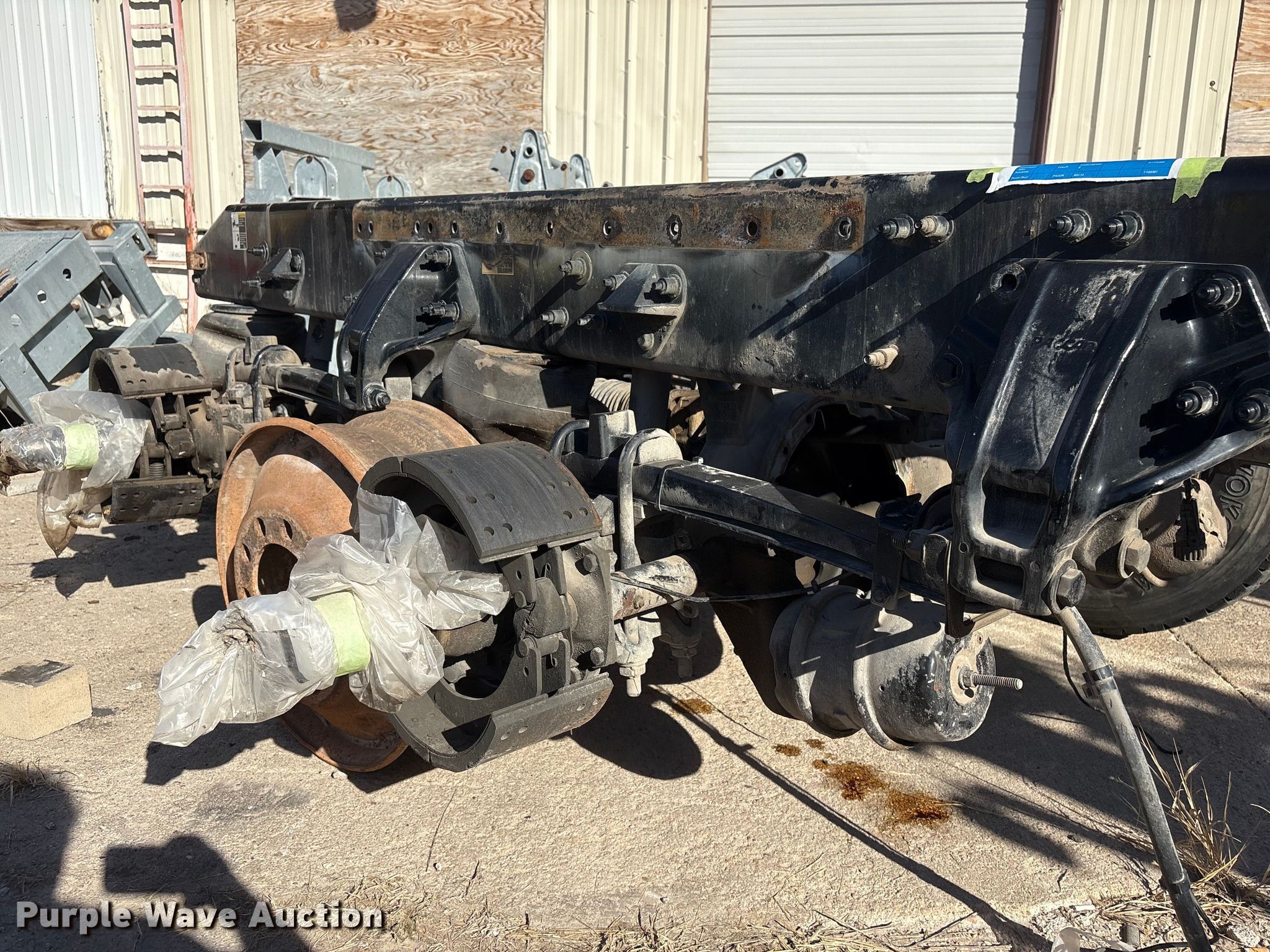 Purple Wave is selling a used Truck Part and Attach. in Nebraska. This item is a Meritor MT40-14X rear axle assembly with the following: Serial: FORO3873688, FORO3873689, Suspension: Air, Dimensions: 10' L x 92" W, Tire size: 275/80R22.5, Removed from a Peterbilt 579 semi truck, Parts missing, Non-operational unit
