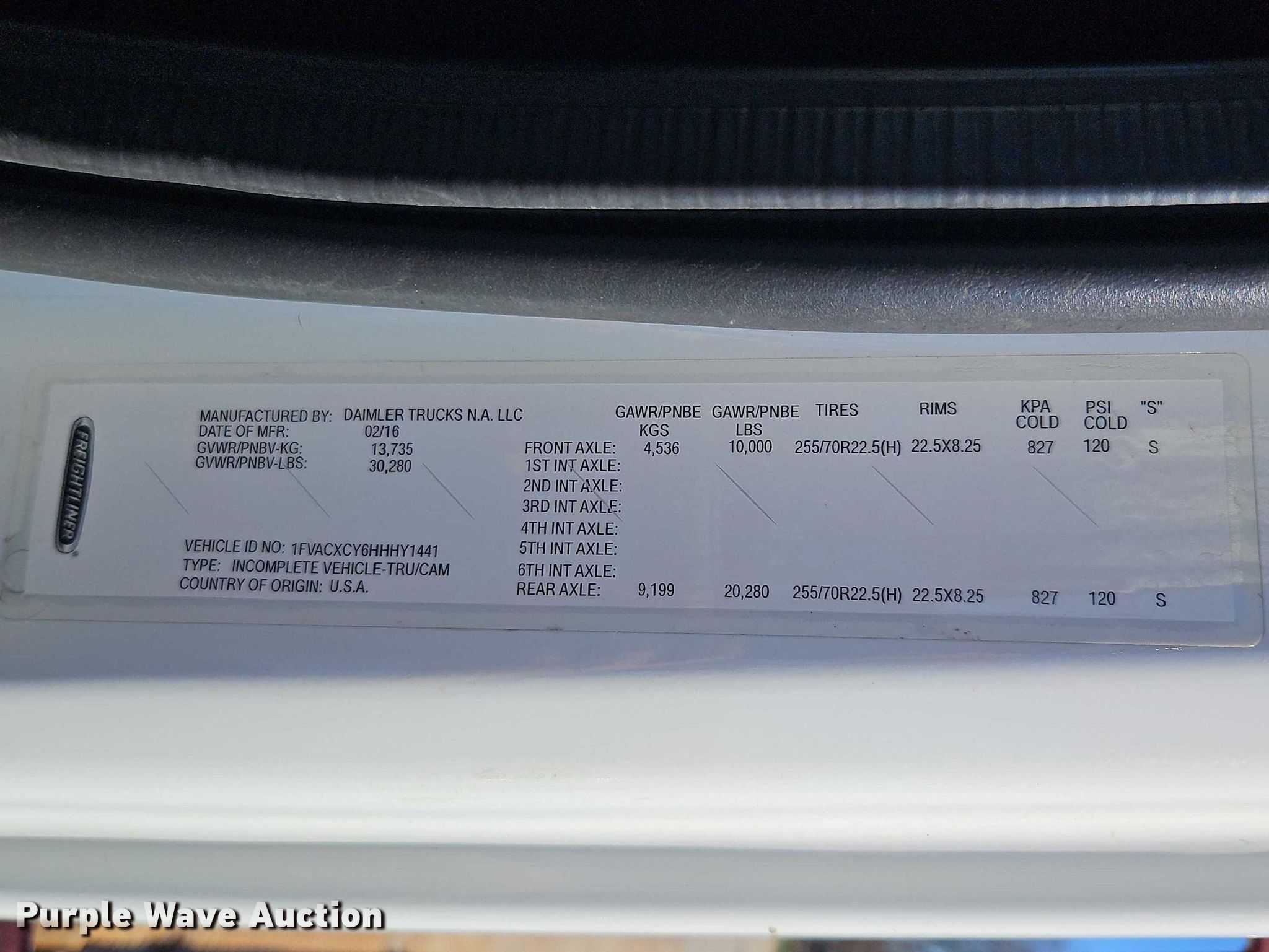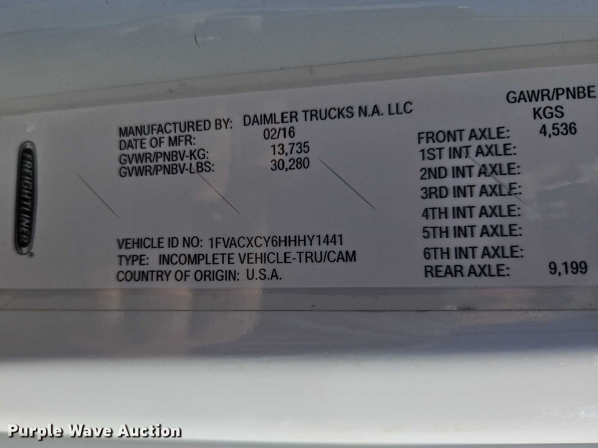 - VIN: 1FVACXCY6HHHY1441