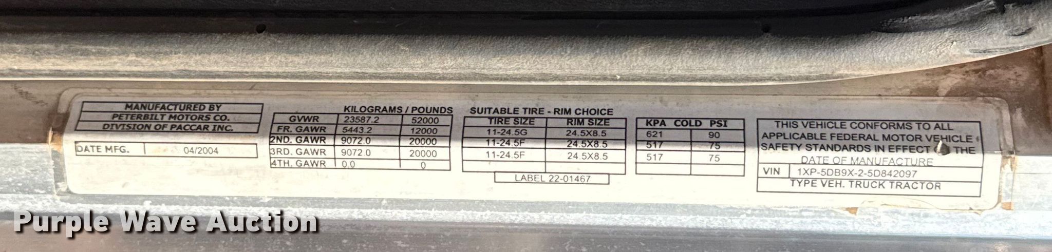 Purple Wave is selling a used Truck Tractor in Oklahoma. This item is a 2005 Peterbilt 379 semi truck with the following: Miles: 914,987 on odometer, VIN: 1XP5DB9X25D842097