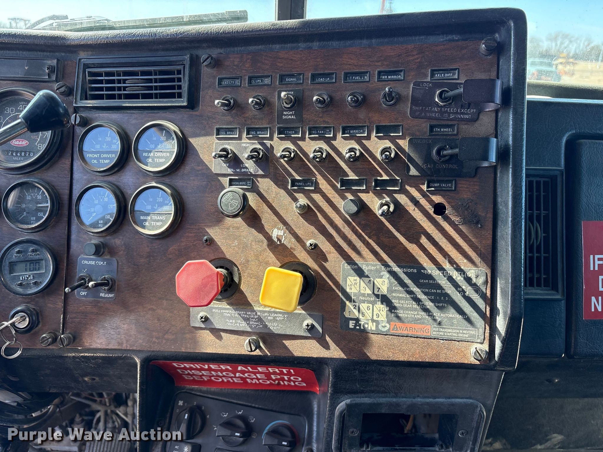 1996 Peterbilt 377 semi truck. Miles: 744,870 on odometer, VIN: 1XPCDB9X3TN398856. Engine Caterpillar 3406, Displacement: 14.6L, Cylinders: 6, Fuel type: Diesel, HP: 355, Engine brake. Transmission Eaton Fuller, Manual, Speed: 10. Chassis Axles: Tandem, Differential lock: Full, Suspension: Air Dump valves, Brakes: Air, PTO, Wet kit, GVWR: 50,000 lbs FAWR: 12,000 lbs, IAWR: 19,000 lbs, RAWR: 19,000 lbs. Interior AC, Heat, Heated mirrors, Cruise control, Air ride cab, Sleeper Peterbilt, Sleeper length: 36", Beds: Single. Features Fifth wheel type: Air operated, Sliding, Fuel tank: Dual. Tires Size: 11R22.5. Notes Windshield chipped or cracked. Minnesota title. Title distribution may be delayed up to 14 days from verification of funds. Winding Road Construction. Bonham, TX 75418
