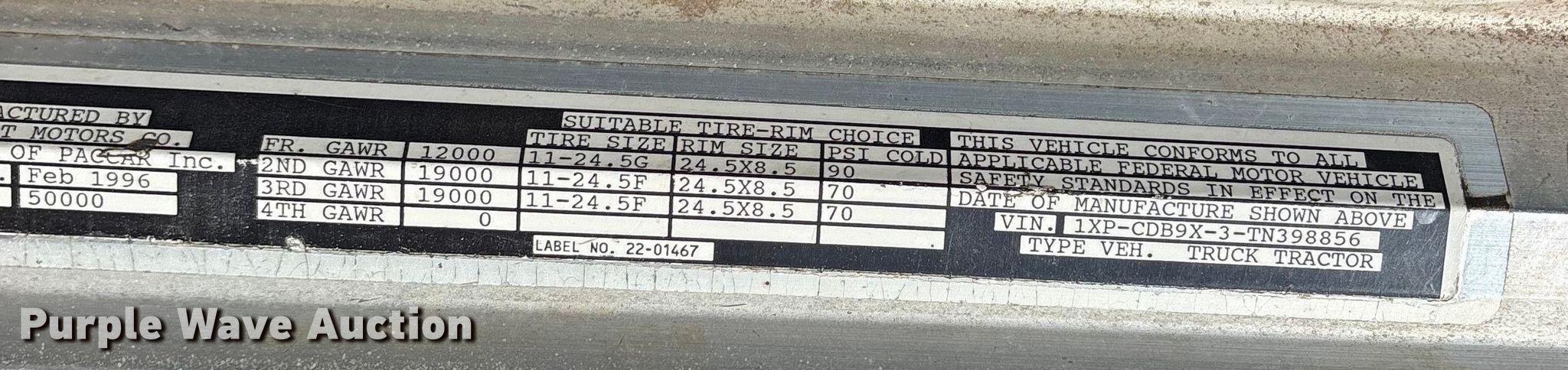 Purple Wave is selling a used Truck Tractor in Texas. This item is a 1996 Peterbilt 377 semi truck with the following: Miles: 744,870 on odometer, VIN: 1XPCDB9X3TN398856