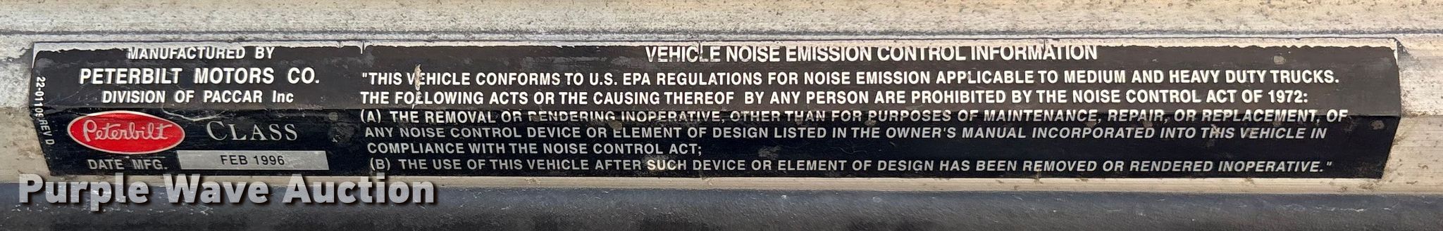 Take a look at this used 1996 Peterbilt 377 semi truck being sold on April 2nd, 2026 in the Thursday April 02 Truck and Trailer Auction made by Peterbilt. Take a look at all of the item information below or take a look at similar auctions for Trucks.