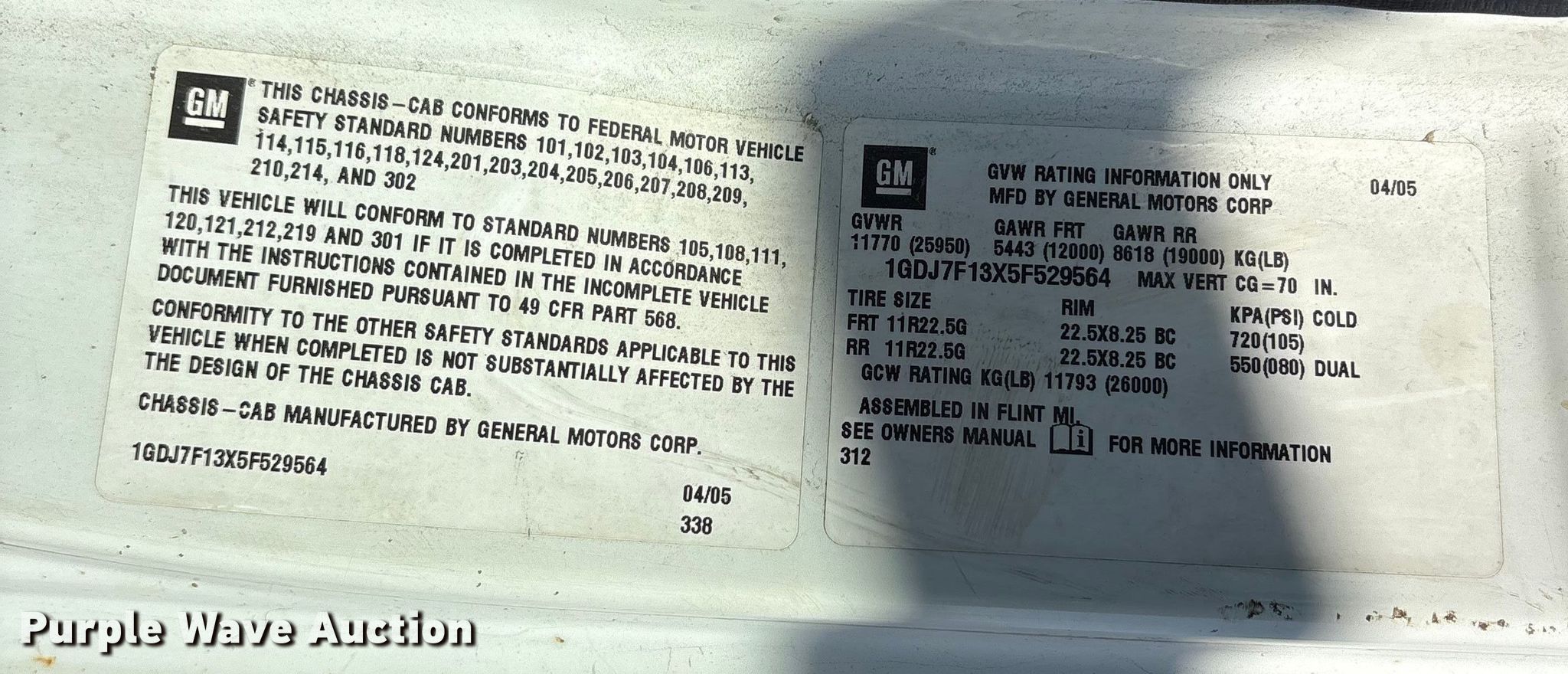 • VIN: 1GDJ7F13X5F529564