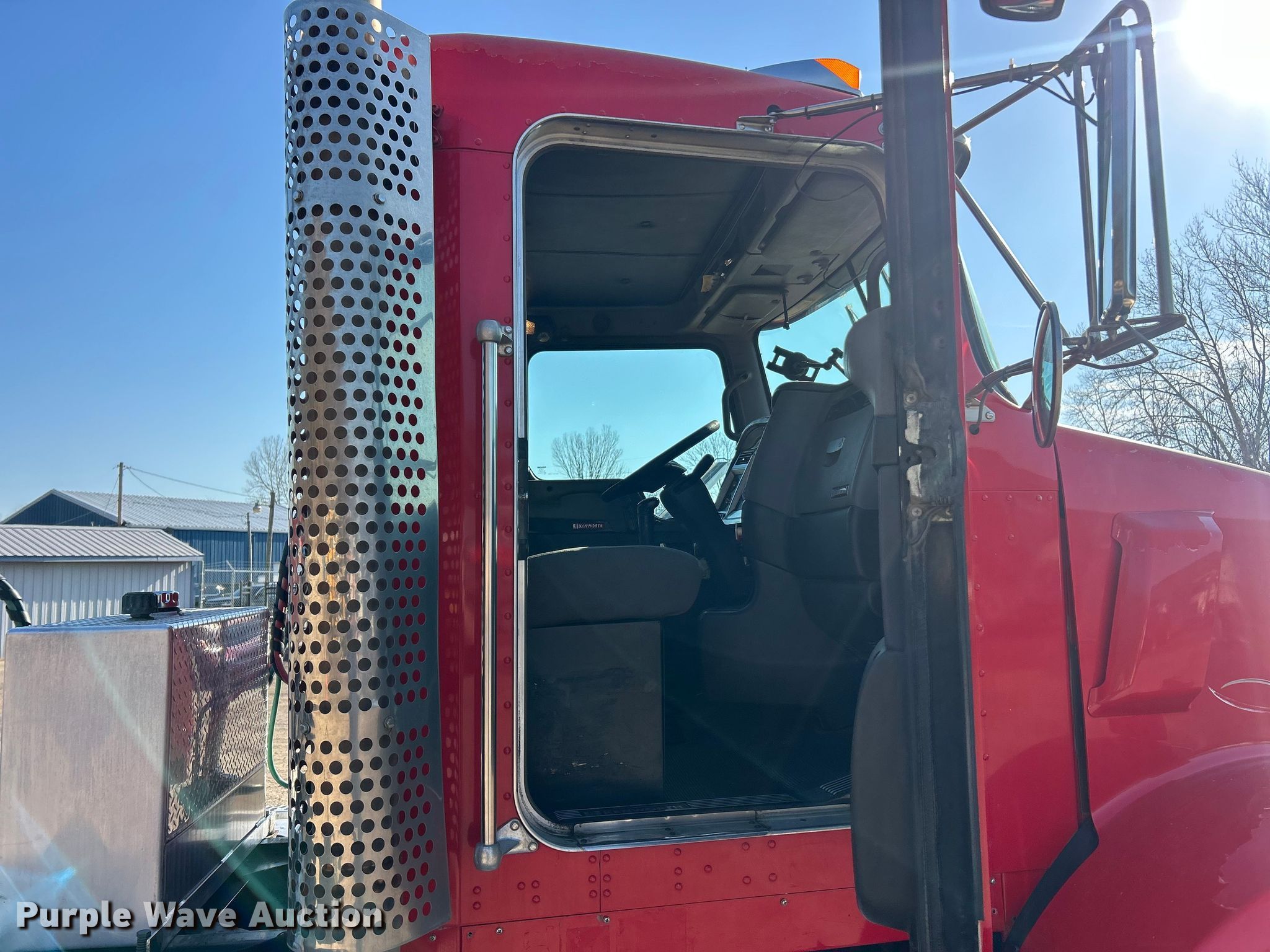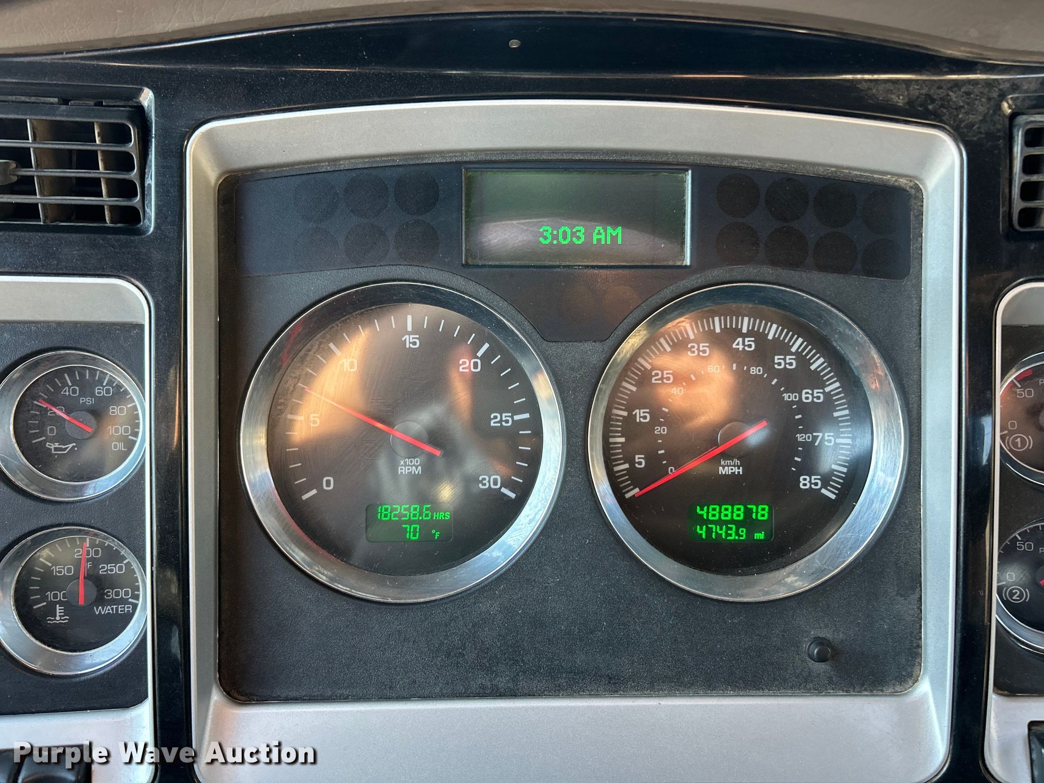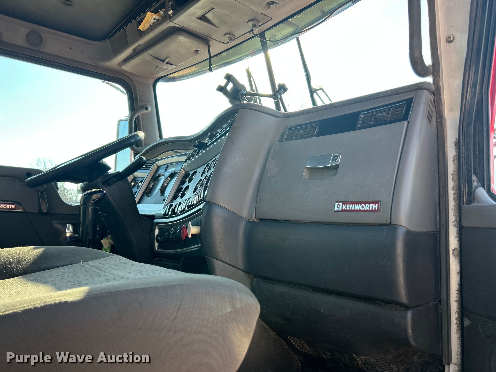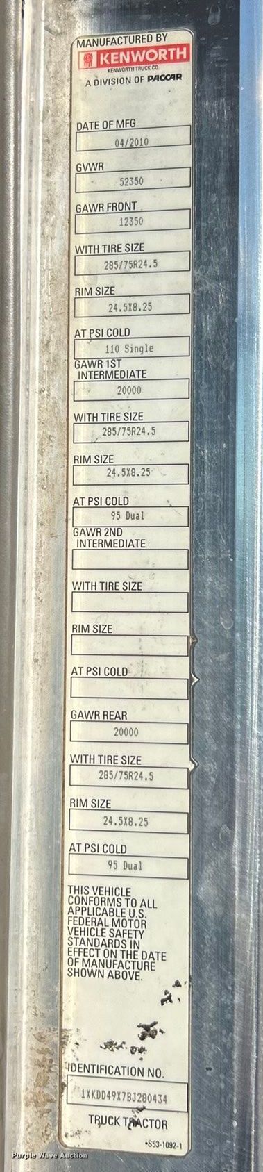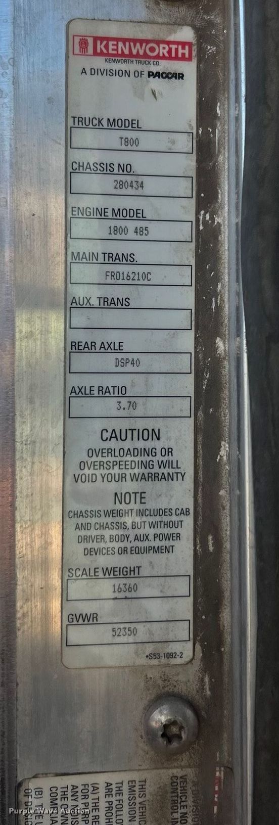 2011 Kenworth T8 Series semi truck. Miles: 488,878 on odometer, Hours: 18,259 on meter, VIN: 1XKDD49X7BJ280434. Engine Cummins ISX, Displacement: 15.0L, Cylinders: 6, Fuel type: Diesel, Engine brake. Transmission Eaton Fuller, Manual, Speed: 10. Chassis Axles: Tandem, Differential lock: Inter-axle, Suspension: Air, Brakes: Air, PTO, Wet kit, GVWR: 52,350 lbs FAWR: 12,350 lbs, IAWR: 20,000 lbs, RAWR: 20,000 lbs. Interior AC, Heat, Heated mirrors, Power windows, Power locks, Cruise control. Features Deck plate: Aluminum, Fifth wheel type: Air operated, Sliding, Fuel tank: Dual. Tires Size: 285/75R24.5. Missouri title. Title distribution may be delayed up to 14 days from verification of funds. St. Louis Composting. Eureka, MO 63069