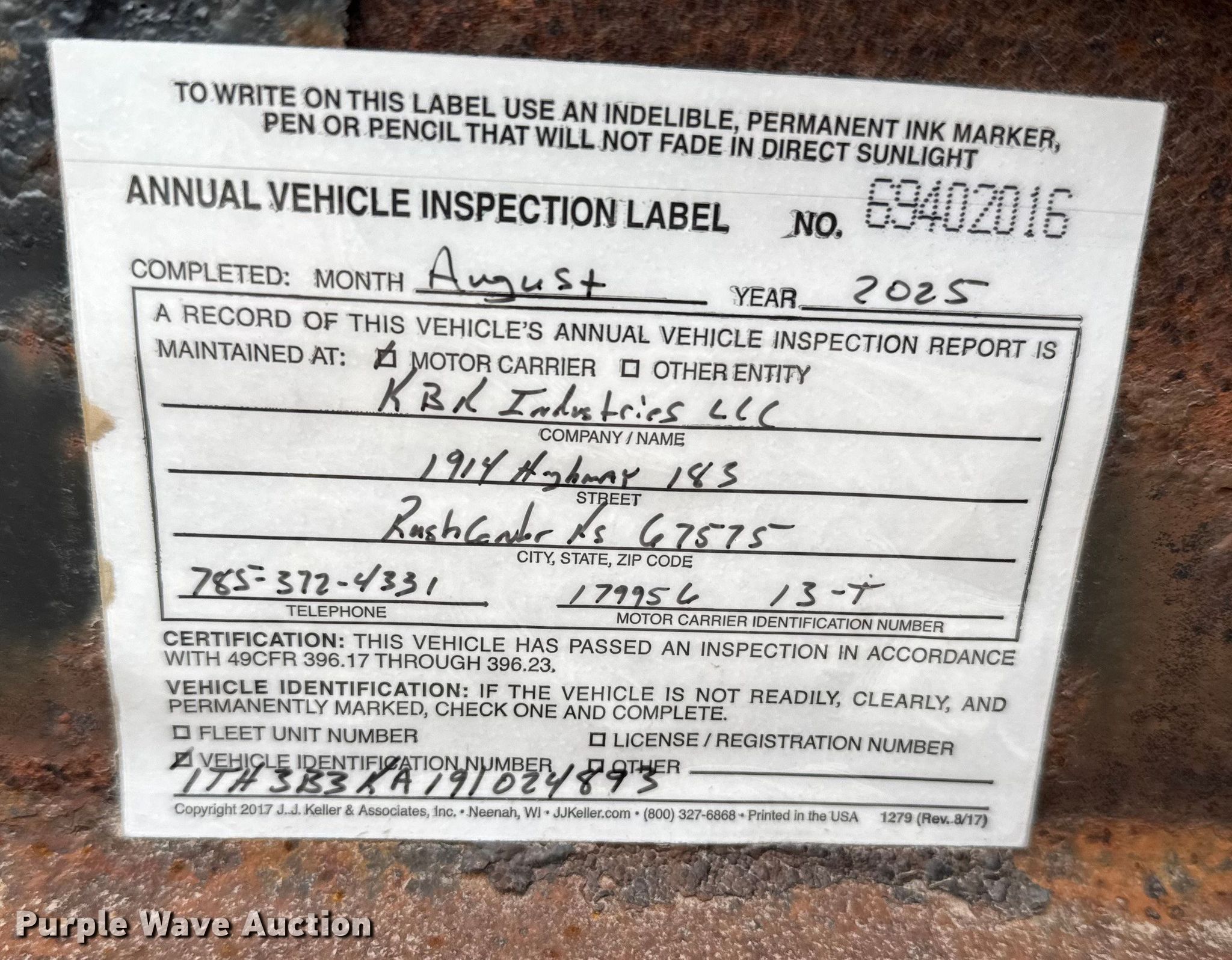 - VIN: 1TH3B3KA191024893