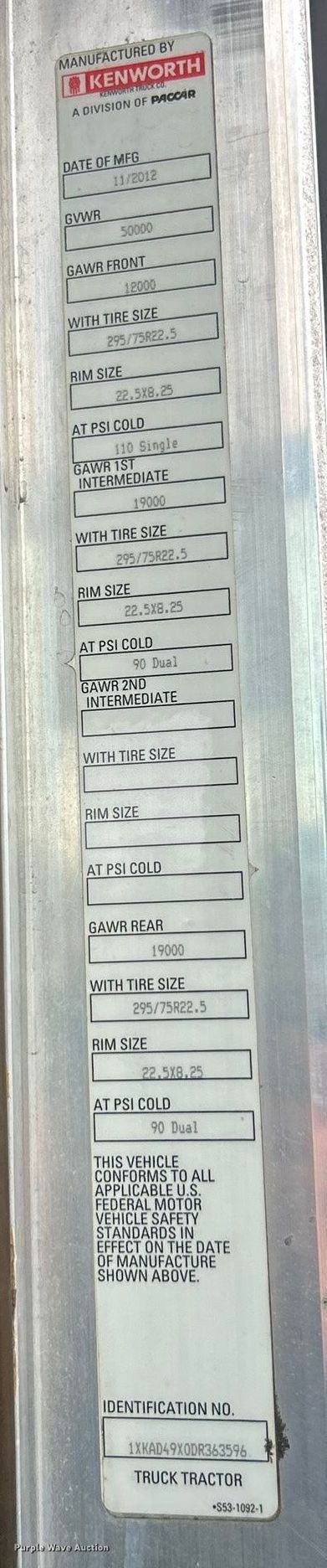 - VIN: 1XKAD49X0DR363596