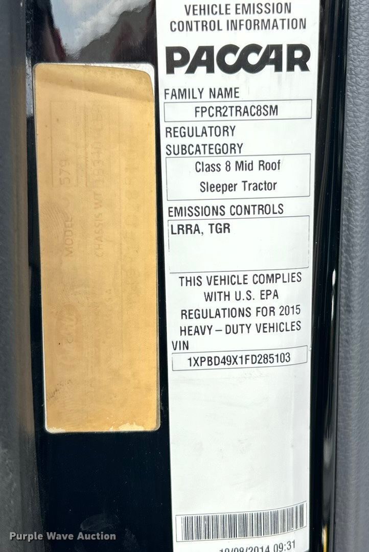 Purple Wave is selling a used Truck Tractor in Missouri. This item is a 2015 Peterbilt 579 semi truck with the following: Miles: 429,148 on odometer, Hours: 17,930 on meter, VIN: 1XPBD49X1FD285103