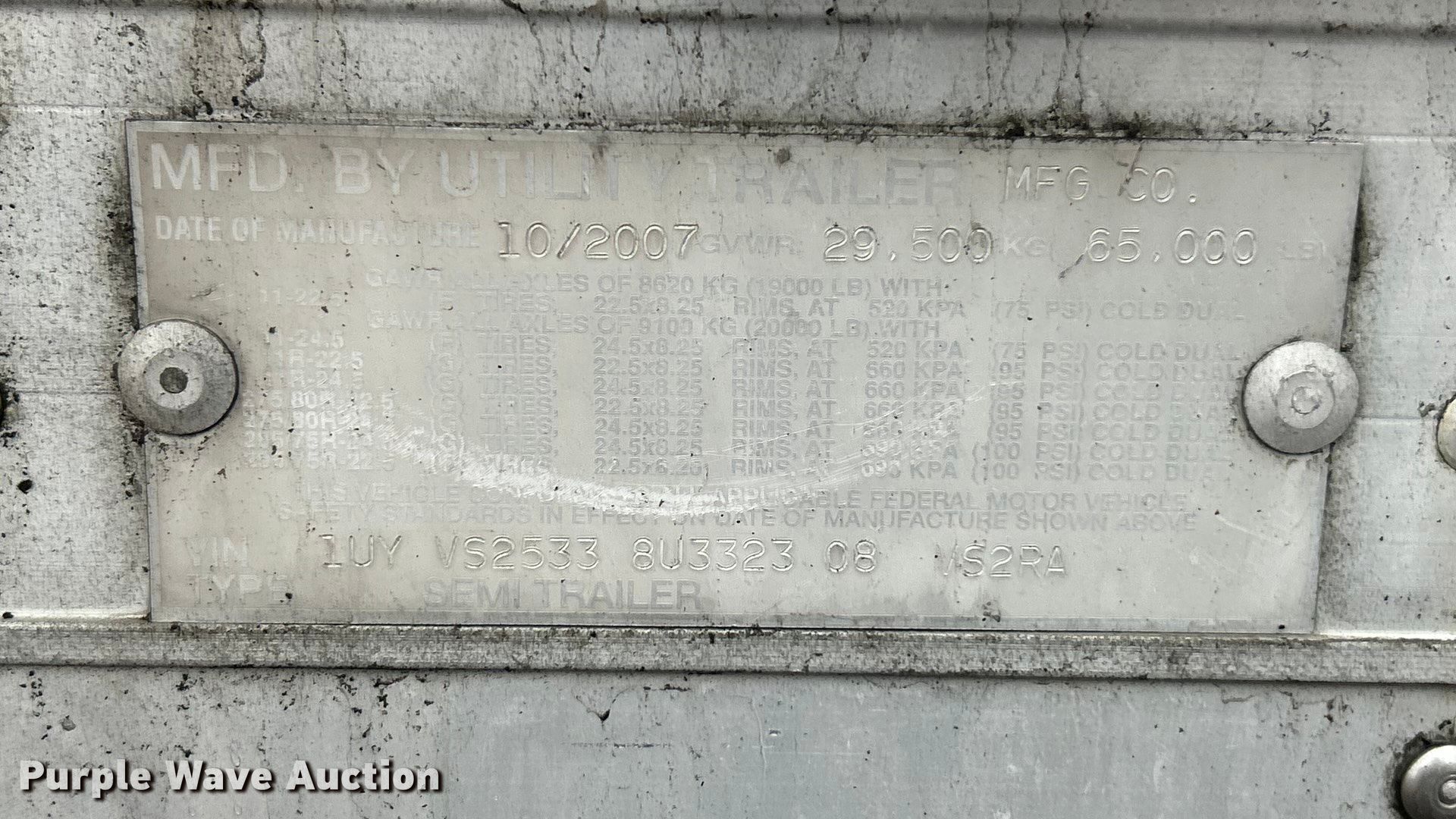 Purple Wave is selling a used Refrigerated Van Trailer in Missouri. This item is a 2008 Utility refrigerated van trailer with the following: VIN: 1UYVS25338U332308