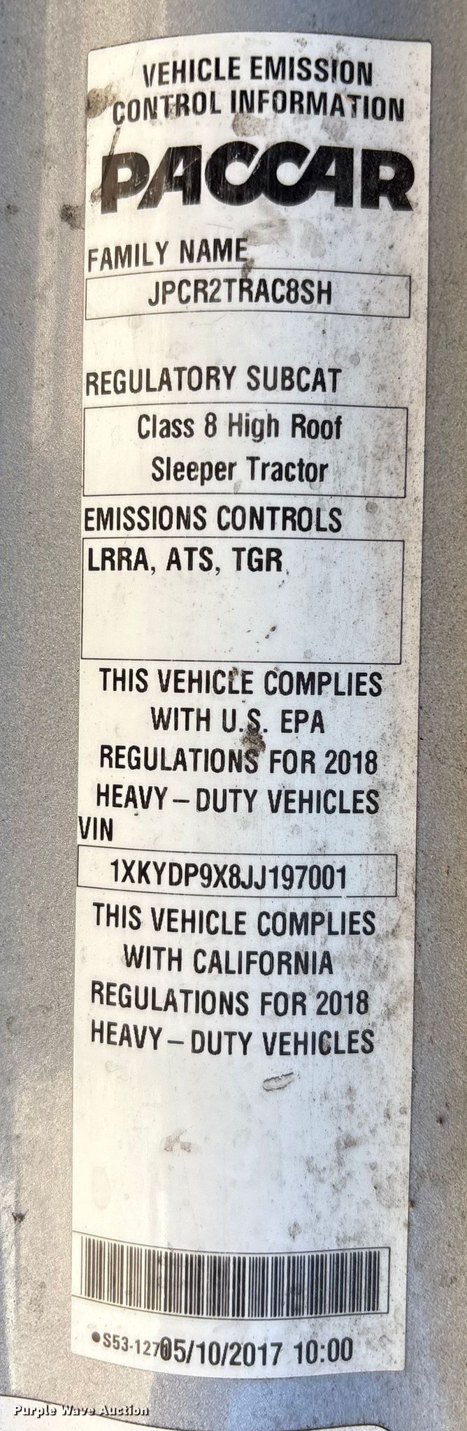 • VIN: 1XKYDP9X8JJ197001