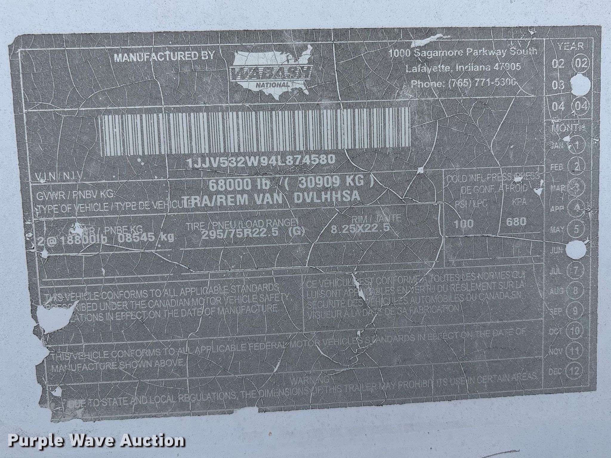 Purple Wave is selling a used Dry Van Trailer in Oklahoma. This item is a 2003 Wabash dry van trailer with the following: VIN: 1JJV532W94L874580