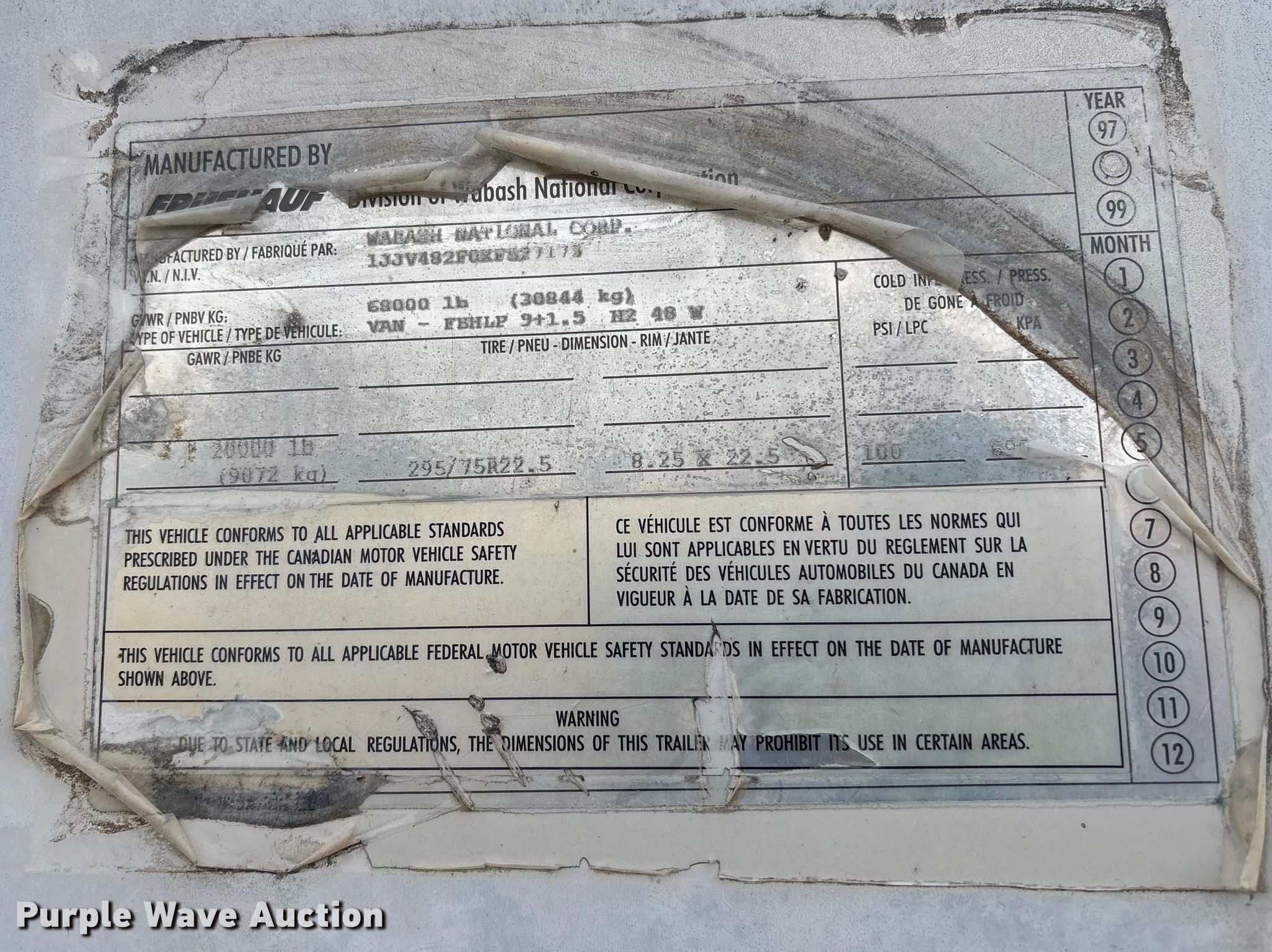 Purple Wave is selling a used Dry Van Trailer in Oklahoma. This item is a 1998 Fruehauf dry van trailer with the following: VIN: 1JJV482F0XF527173