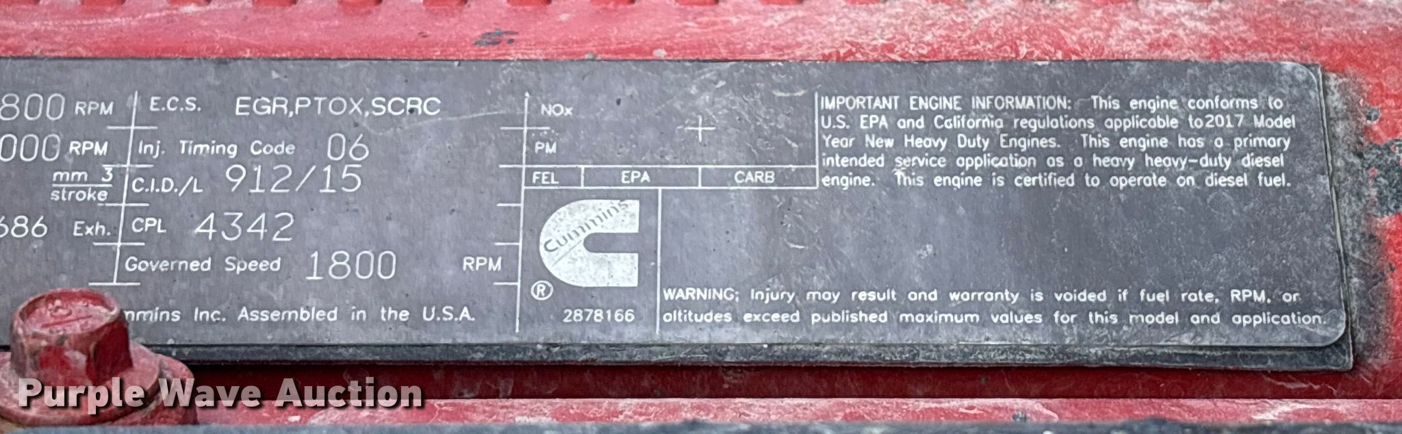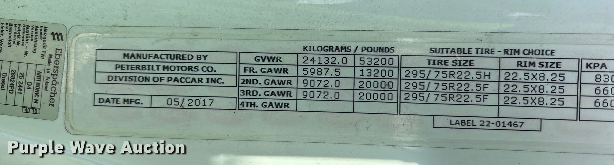 2018 Peterbilt 579 semi truck. Miles: 825,212 on odometer, VIN: 1XPBD49X9JD459878, Unit #: 95532005. Engine Cummins X15 400ST, Displacement: 15.0L, Cylinders: 6, Fuel type: Diesel, Engine brake. Transmission Eaton Fuller, Manual, Speed: 10. Chassis Axles: Tandem, Differential lock: Inter-axle, Suspension: Air Dump valves, Brakes: Air, GVWR: 53,200 lbs FAWR: 13,200 lbs, RAWR: 40,000 lbs. Interior AC, Heat, Heated mirrors, Power windows, Power locks, Cruise control, Air ride cab, Sleeper Sleeper length: 75", Beds: Double bunk, Refrigerator, Rear climate control, Auxiliary power unit Thermo King TriPac Evolution. Features Deck plate: Aluminum, Fifth wheel type: Air operated, Sliding, Fuel tank: Dual. Tires Size: 295/75R22.5. Notes Dash warning indicator: Low voltage disconnect, Windshield chipped or cracked, Dead battery, Non-operational auxiliary power unit, Possible fuel issues , Unknown operating condition. Repossessed item, stored at a secured facility. Please review REQUIRED REMOVAL INSTRUCTIONS. Titles will be distributed after confirmation of payment and removal. Indiana title. Title distribution may be delayed up to 30 days from verification of funds. Lender Owned. 1680 Williams Road. Columbus, OH 43207