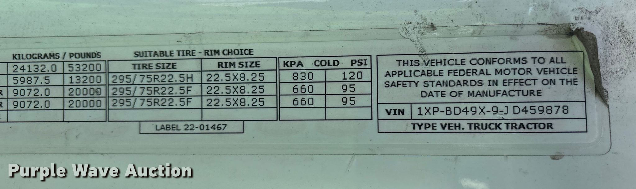 - VIN: 1XPBD49X9JD459878
