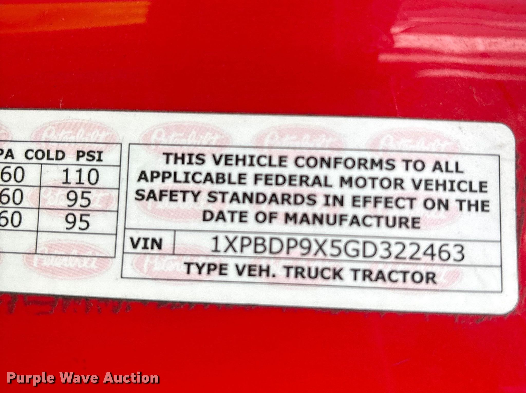 - VIN: 1XPBDP9X5GD322463
