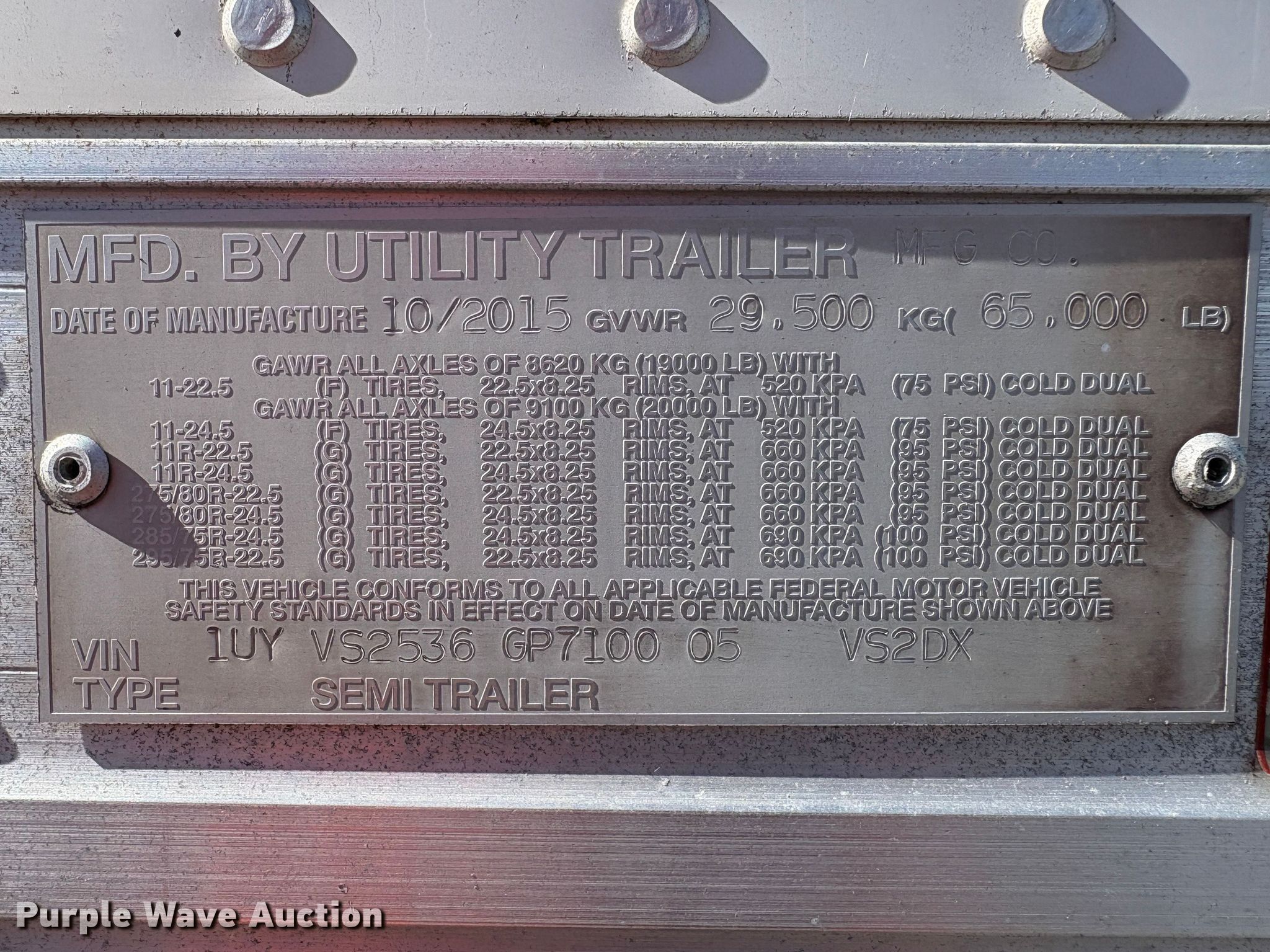 2016 Utility VS2DX dry van trailer. VIN: 1UYVS2536GP710005, Unit #: 74061615. Dimensions Overall Length: 53', Width: 102'. Features Deck type: Wood, E-track rail system. Chassis Landing gear: Dual, Suspension: Air, Brakes: Air, Axles: Tandem Sliding, GVWR: 65,000 lbs. Tires Aluminum wheels, Size: 295/75R22.5. Repossessed item, stored at a secured facility. Please review REQUIRED REMOVAL INSTRUCTIONS. Titles will be distributed after confirmation of payment and removal. West Virginia title. Title distribution may be delayed up to 30 days from verification of funds. Lender Owned. 1255 East Central Avenue. Fresno, CA 93725