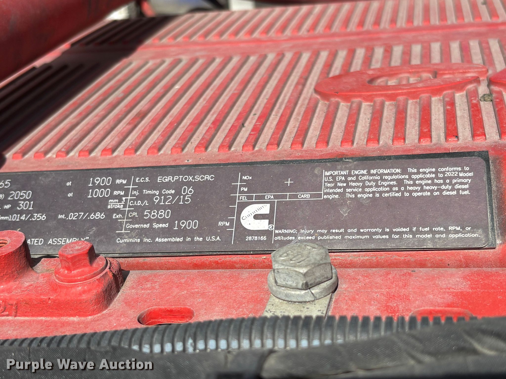 2023 Peterbilt 389 semi truck. Miles: 551,941 on odometer, Hours: 15,718 on meter, VIN: 1XPXD49X0PD871279, Unit #: 99417135. Engine Cummins X15 565, Displacement: 15.0L, Cylinders: 6, Fuel type: Diesel, HP: 565, Engine brake. Transmission Eaton Fuller, Manual, Speed: 18. Chassis Axles: Tandem, Differential lock: Inter-axle, Suspension: Air Dump valves, Brakes: Air, PTO, GVWR: 53,200 lbs FAWR: 13,200 lbs, IAWR: 20,000 lbs, RAWR: 20,000 lbs. Interior AC, Heat, Heated mirrors, Power windows, Power locks, Cruise control, Air ride cab, Auxiliary controls, Brake controller, Sleeper Sleeper length: 72", Beds: Single, Rear climate control. Features Deck plate: Aluminum, Fifth wheel type: Air operated, Sliding, Fuel tank: Dual. Tires Size: 295/75R22.5. Notes Collision damage, Battery charging system issues, Dash warning indicator: Check engine, ABS, Traction control, Alternator, Dead battery, Jump start required during on-site data collection. Buyer responsible for all aspects of loadout and removal. Insurance salvage, stored at a secured facility. Please review REQUIRED REMOVAL INSTRUCTIONS. Buyer responsible for all aspects of state emissions compliance. Titles will be distributed after confirmation of payment and removal. California salvage title. Title distribution may be delayed up to 30 days from verification of funds. Insurance Salvage. 8780 Fruitridge Road. Sacramento, CA 95826