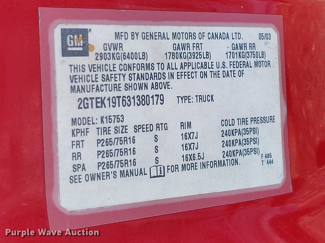 - VIN: 2GTEK19T631380179