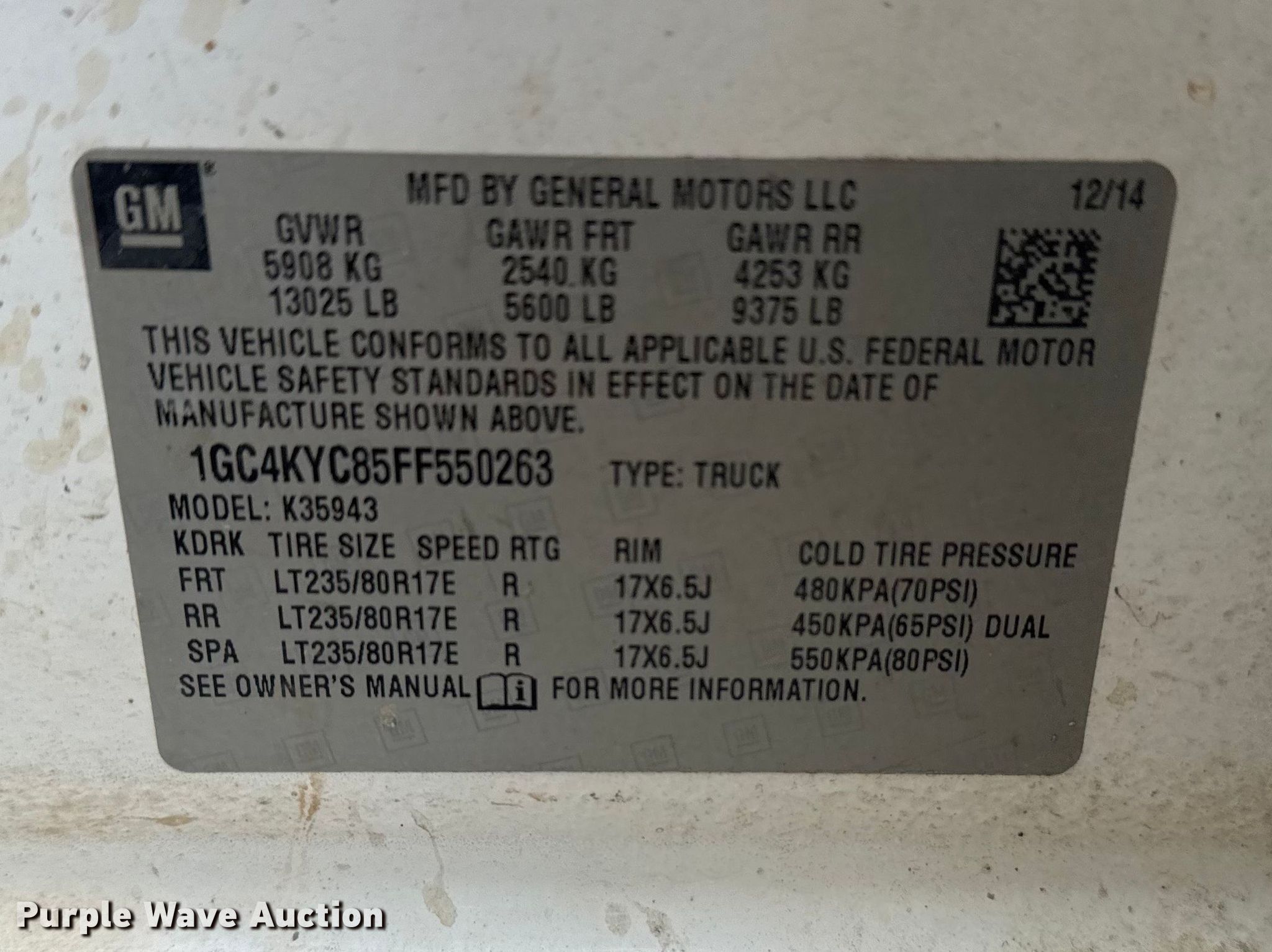 - VIN: 1GC4KYC85FF550263